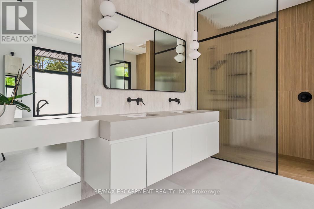Designed by David Small & Mello Design Group, this custom masterpiece blends timeless elegance and innovation in the prestigious Whiteoaks of Jalna. Offering 7,300+ sq. ft. across three levels, this 4+1 bed, 5-bath home features soaring ceilings, bespoke lighting, a dramatic 3-storey staircase, wide-plank hardwood, and Indiana Limestone throughout. A dedicated elevator shaft allows future installation. In-floor radiant heat, a three-car garage, digital automation system, and integrated in-ceiling sound system provide exceptional comfort and control.The chef inspired Scavolini kitchen showcases a striking Neolith porcelain island, generous prep space, two dishwashers, and two bar fridges. Living and dining areas open to a private backyard with a covered Muskoka room. All bedrooms offer ensuites; the primary and second include private balconies. The walk-up lower level with full bath and large recreation room adds flexibility. Fenced dog run. A rare offering in coveted Lorne Parks. Luxury Certified. (id:4555)