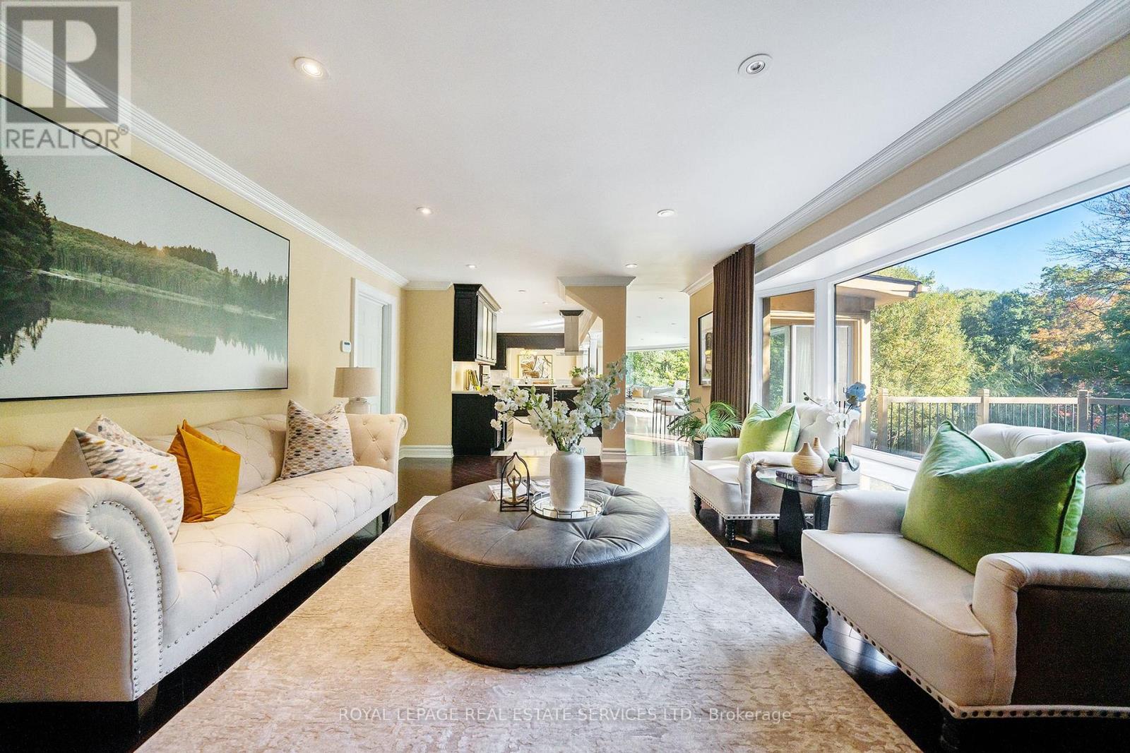 Grandly renovated 4-bedroom detached home with walkout basement on a rare 75' x 229' ravine lot in Mississauga's prestigious Credit Woodlands, featuring a saltwater pool, pond, and gazebo backing directly onto the Credit River. This luxury family home is within walking distance to 222-acre Erindale Park and the scenic Culham Trail, minutes from Mississauga Golf and Country Club, and offers quick access to major highways and GO Transit for easy commuting to Toronto and Hamilton. A mature, tree-lined street leads to a deep double driveway accommodating 8 cars plus a 2-car garage. An interlocking stone walkway and covered front veranda overlook perennial gardens with sprinkler system. The backyard is a private oasis with a massive deck, covered terrace, terraced gardens, custom saltwater pool with waterfall, serene pond with sheer descent waterfall, private gazebo, and expansive green space framed by ravine views. Recent upgrades include freshly painted interior, deck and gazebo, new furnace, air conditioner, pool heater and cover, some updated main floor windows and new backyard fencing (2025), plus a newer roof. Inside, hardwood flooring, crown mouldings, pot lighting, upgraded trims, two fireplaces, and three walkouts enhance sophistication. The skylit oak staircase opens to elegant living and dining rooms, a family room with fireplace, and a chef's kitchen with custom cabinetry, stone counters, stainless steel appliances, large island, and oversized breakfast room with walkout to deck. Upstairs, a sitting room, 2 bathrooms, and 4 spacious bedrooms are available, including a refined primary suite with a spa-like 5-piece ensuite featuring a claw-foot tub and a glass shower. The finished walkout lower level includes a recreation room with fireplace, coffered ceiling and built-ins, media/entertainment area, modern 3-piece bath, and 2 walkouts to the terrace overlooking the Credit River ravine. (id:4555)