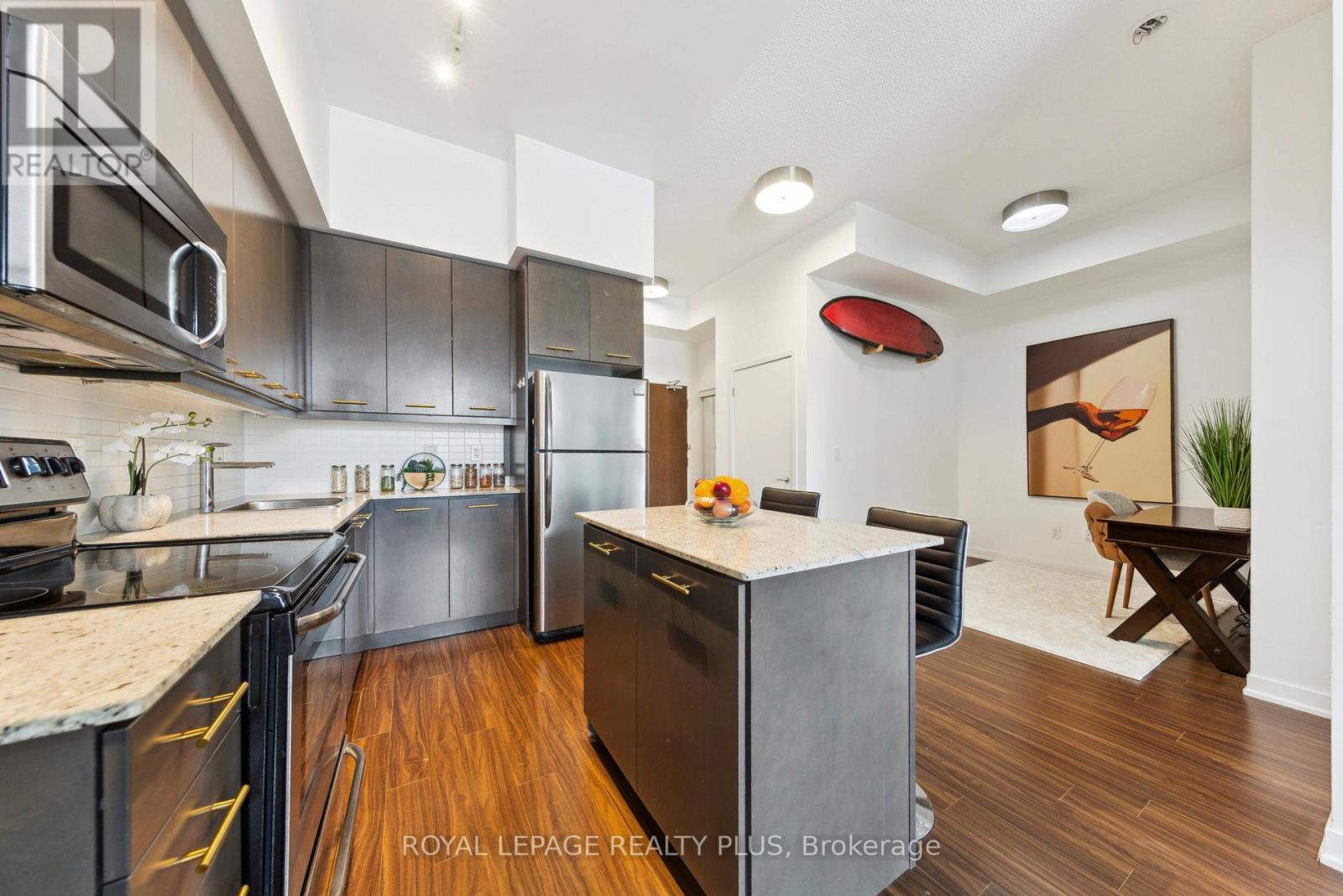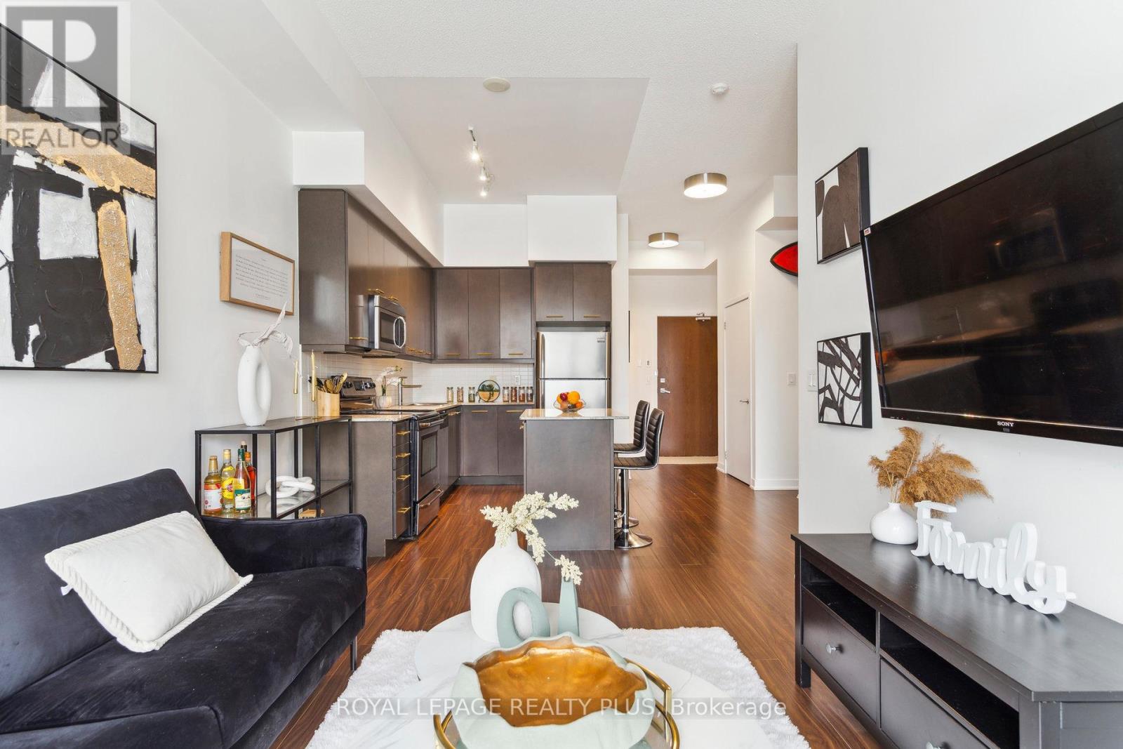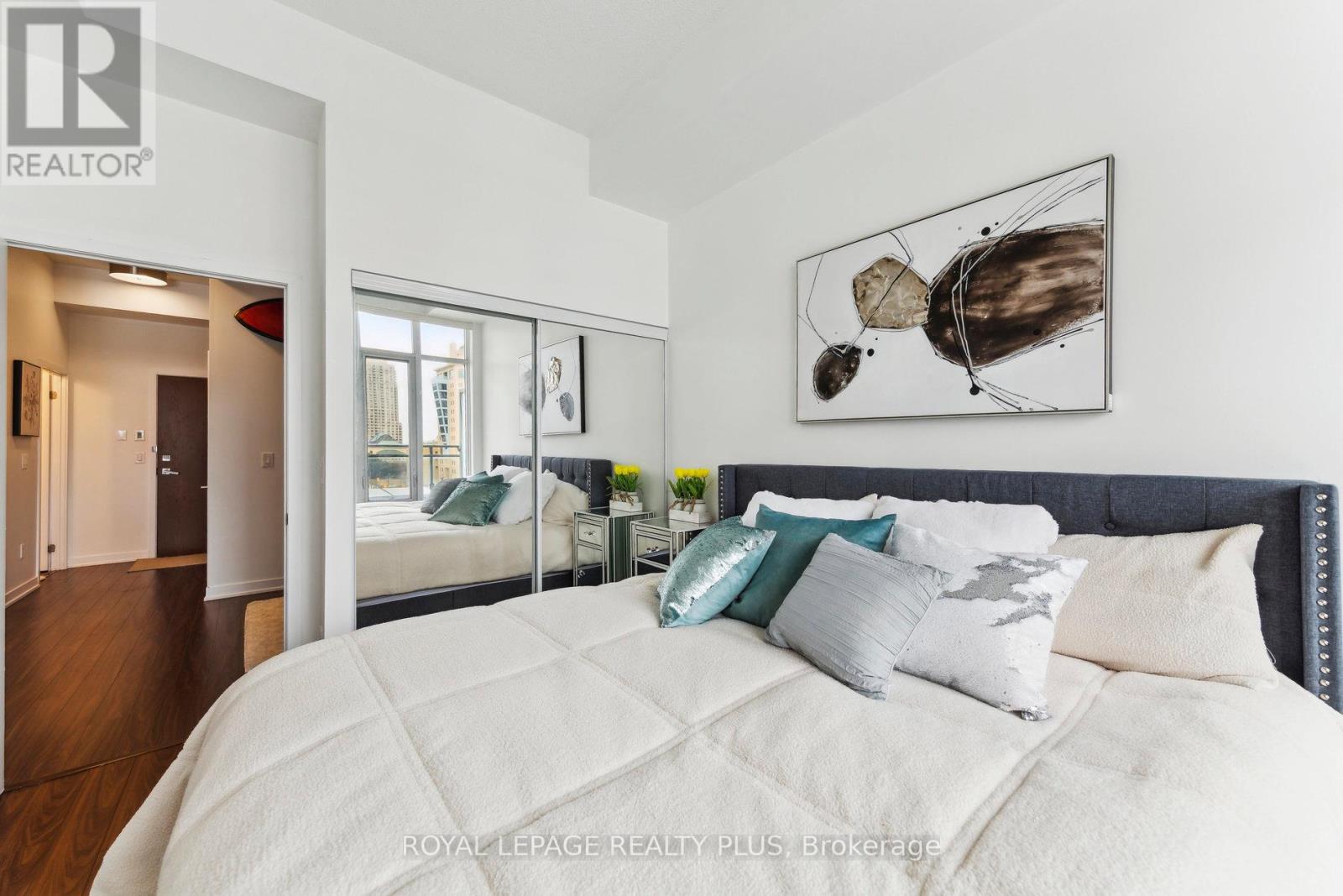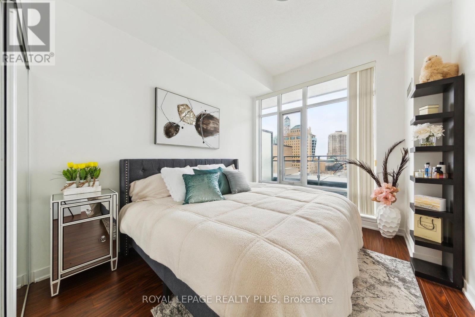 Spacious 1-bedroom + den unit in the sought-after Limelight building with breathtaking City Hall views. The versatile den can easily be converted into a second bedroom. This bright unit features 11-foot ceilings throughout, a large master bedroom with a big window and mirrored closet. an open-concept kitchen with quartz countertops, a center island, and stainless steel appliances. Floor-to-ceiling windows fill the space with natural light, and ensuite laundry adds convenience. A large balcony with an unobstructed view and full privacy offers the perfect outdoor retreat. The building offers fantastic amenities, including a 24-hour concierge, exercise room, basketball court, rooftop garden, and party/media room. Located steps from Square One, Sheridan College, transit, Celebration Square and more. A must-see! (id:4555)