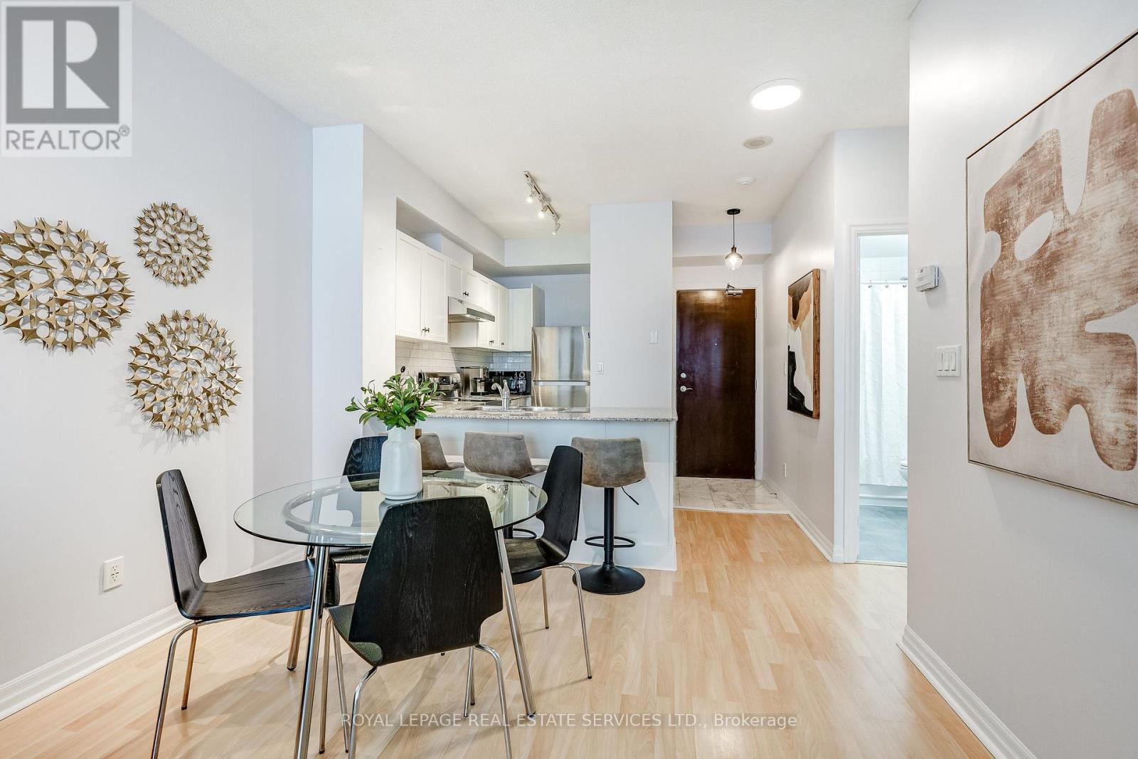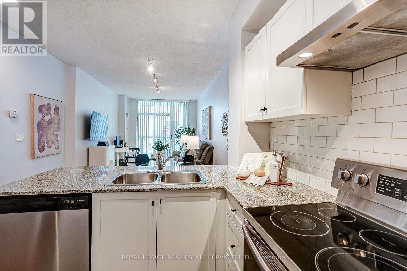 Bright, spacious, and impeccably maintained, this stunning 1-bedroom condo in Mississauga's sought-after Capri building truly has it all. Featuring soaring 9-foot ceilings, floor-to-ceiling windows, and a sun-filled south-facing exposure, the open-concept layout offers generous principal rooms, space for a king-sized bedroom set, and exceptional storage including a walk-in closet. Step onto the expansive balcony and take in unobstructed skyline views-Toronto glowing to one side, downtown Mississauga to the other. The sleek kitchen is equipped with stainless steel appliances and granite countertops, while ensuite laundry adds everyday ease. All utilities are included in the maintenance fees, along with parking and a locker, making this home as practical as it is beautiful. Enjoy resort-style amenities including an indoor pool, fitness centre, party room, and more, all within a well-managed building just minutes to Dixie GO, major highways (401, 403, QEW, 427), shopping, dining, parks, and transit. Simply move in and enjoy effortless condo living in an unbeatable location. Maintenance fees include all utilities (id:4555)