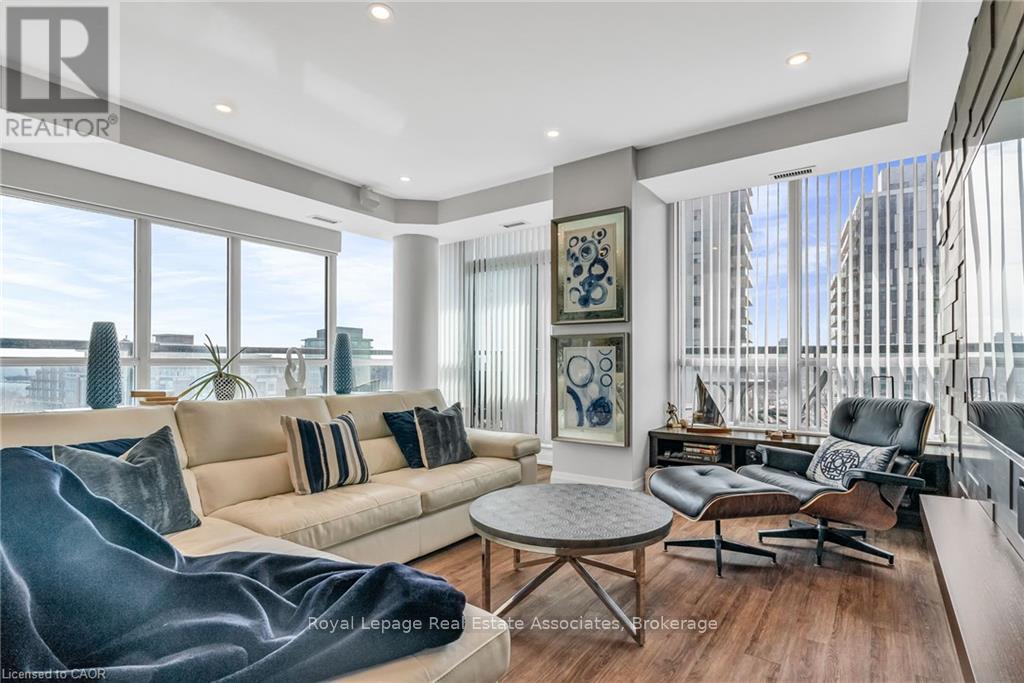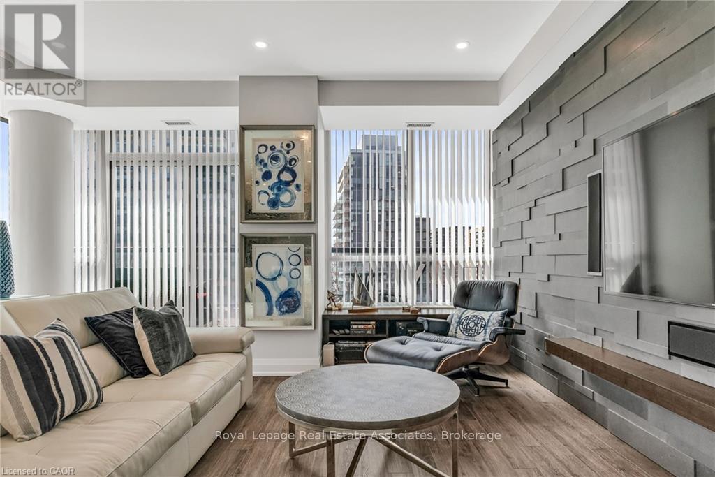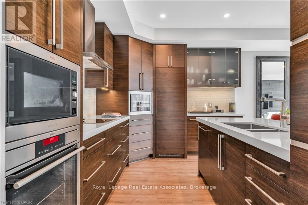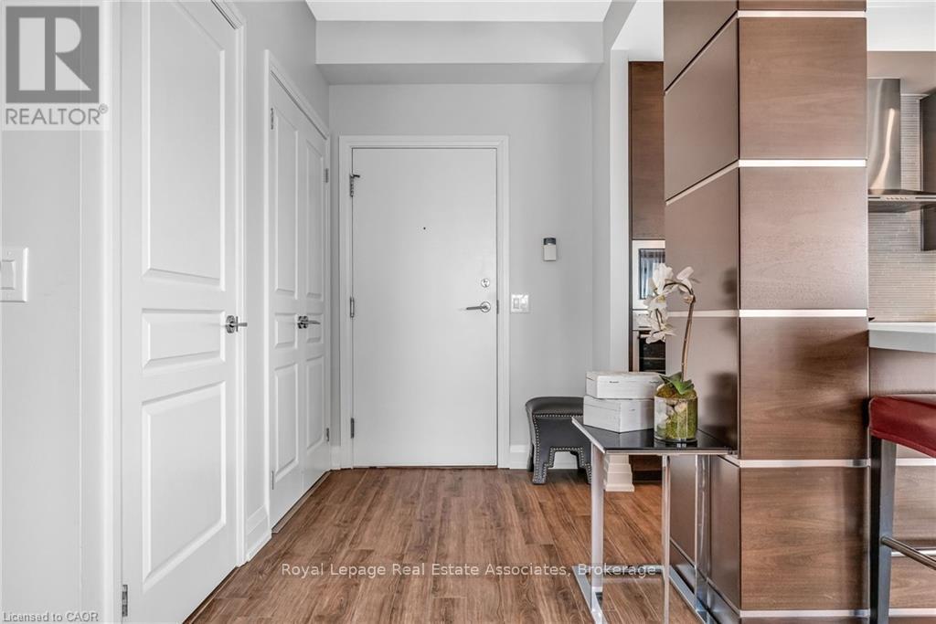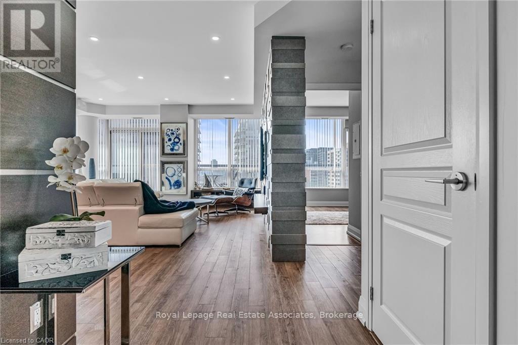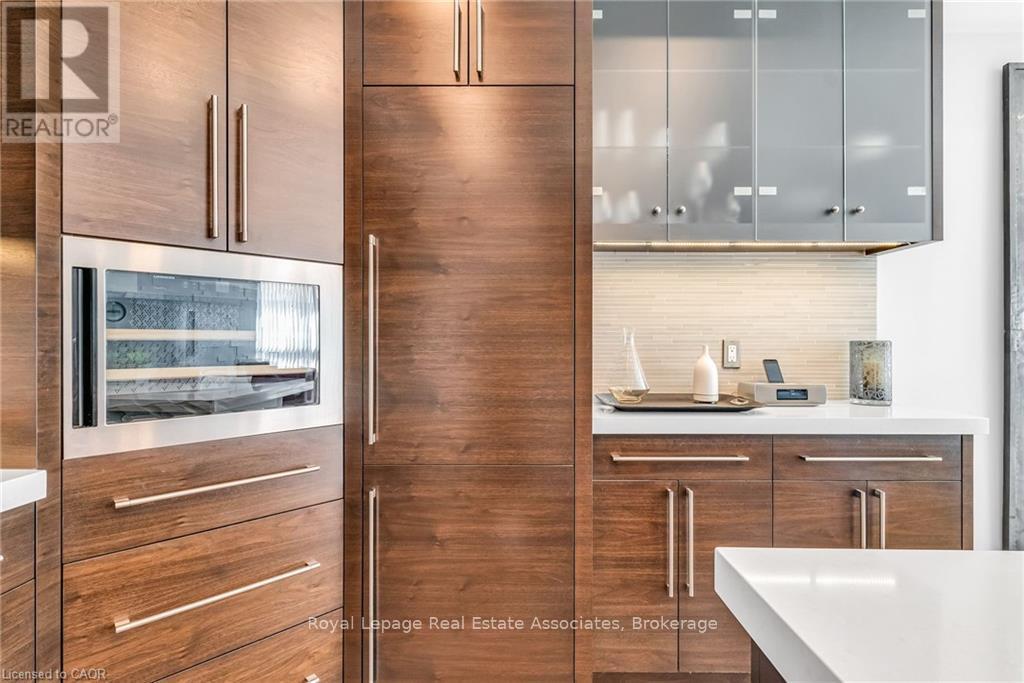 Suite 609 at 1 Hurontario is a fully renovated corner residence offering unobstructed south views of Lake Ontario, glowing westerly sunsets, and a rare wrap-around terrace that truly sets this suite apart. Floor-to-ceiling windows flood the home with natural light, while the open-concept layout is designed for effortless everyday living and entertaining. The modern chef-inspired kitchen features integrated AEG appliances, a wine fridge, sleek cabinetry, and clean contemporary finishes. Premium vinyl flooring flows through the main living space, with high-end laminate in both bedrooms for warmth and durability. The spacious primary suite is a private retreat, complete with a spa-like renovated ensuite, featuring a steam shower. The second bedroom offers exceptional flexibility with a custom queen-size Murphy bed, ideal for guests or a home office without compromise. Located in a well-managed, adult-friendly building just steps to the GO Train, waterfront trails, marinas, restaurants, and boutiques, this is Port Credit living at its finest - refined, walkable, and connected. Includes: Built-in AEG fridge, cooktop, wall oven, dishwasher, wine fridge, washer & dryer, 1 parking space, 1 locker. (id:4555)