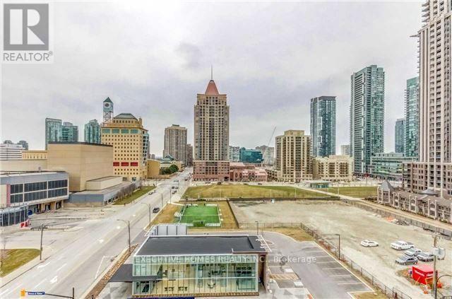 Welcome to your new home in the heart of Mississauga at the beautiful Limelight Condos. This bright and spacious 1 Bedroom + Den features an open concept with a very functional layout,giving you the flexibility to work from home, host, or unwind with views of the city. Stepping inside, you are met with a quaint foyer space, opening up to the kitchen, equipped with stainless steel appliances, granite countertops, and a large kitchen island with ample storage space and a breakfast bar. The kitchen flows into the open concept living room and den, brightened by large south-facing windows. The bedroom has ample space to fit a large bed, night stands, and a dresser, with a mirrored closet. The balcony is great to relax and get a breath of fresh air, overlooking the city centre. To top it off, this unit is ideally situated in the core of the city, steps away from Sheridan College, Square One Shopping Centre, the YMCA, gyms, and parks, minutes away from highways, yet tucked away from the busier streets. With state-of-the-art amenities like a near full-size basketball court, gym, rooftop patio, and more, you will love living here! (id:4555)