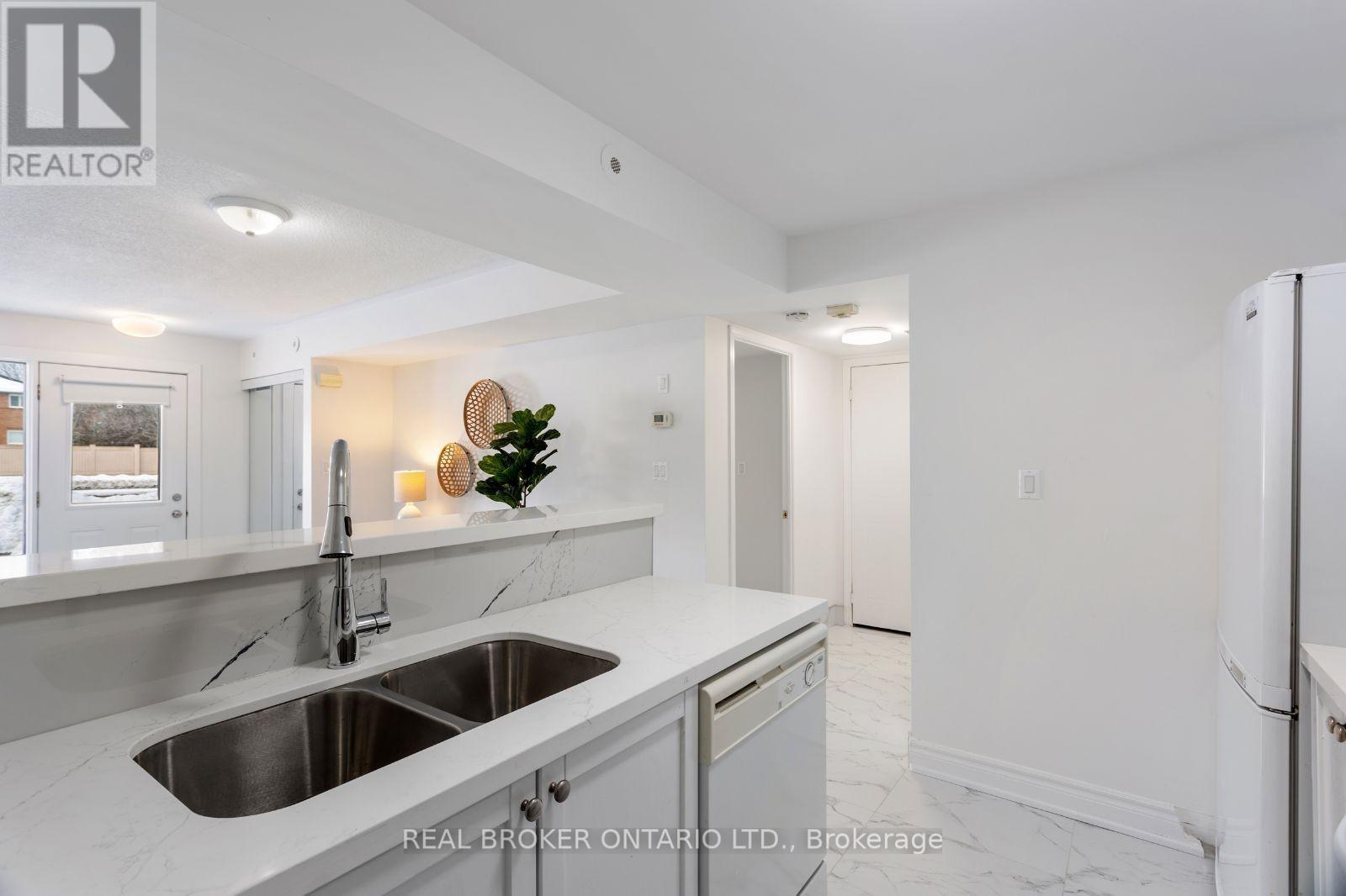 Gleaming on Guildwood. An exceptional alternative to condo living, this fully renovated stackedtownhouse offers refined, low-maintenance living in the heart of Mississauga. Thoughtfully renovated in December 2025 and never lived in since, the residence presents as entirely new, combining modern design, functionality, and everyday comfort without the compromises ofhigh-rise living. With no elevators and no stairs, access is effortless, making this an idealoption for professionals, downsizers, or anyone seeking convenience without sacrificing style. Positioned as a desirable corner unit, the home is bathed in natural light throughout the day, enhancing the open and airy atmosphere. The interior showcases a cohesive, contemporary aesthetic with no carpet throughout, clean lines, and carefully selected modern finishes that feel both current and enduring. The living and dining spaces flow seamlessly, offering a comfortable setting for daily living as well as casual entertaining. The kitchen is sleek and efficient, designed to complement the overall minimalist aestheticwhile maximizing storage and usability. Two well-proportioned bedrooms provide flexibility for a primary retreat, guest room, or home office, while the spa-inspired bathroom delivers a boutique-hotel feel, highlighted by a large stand-up shower and elegant finishes. One parking space is included for added convenience. Ideally located near the intersection ofMavis Road and Eglinton Avenue, the home offers outstanding connectivity-just minutes to SquareOne Shopping Centre, Credit Valley Hospital, Highway 403, and an array of dining, shopping, andeveryday amenities. With a Walk Score of 73, most daily errands can be accomplished on foot, further enhancing the lifestyle appeal. A turnkey, never-lived-in home offering the ease of condo living-without the vertical trade-offs, this is modern Mississauga living at its best. (id:4555)