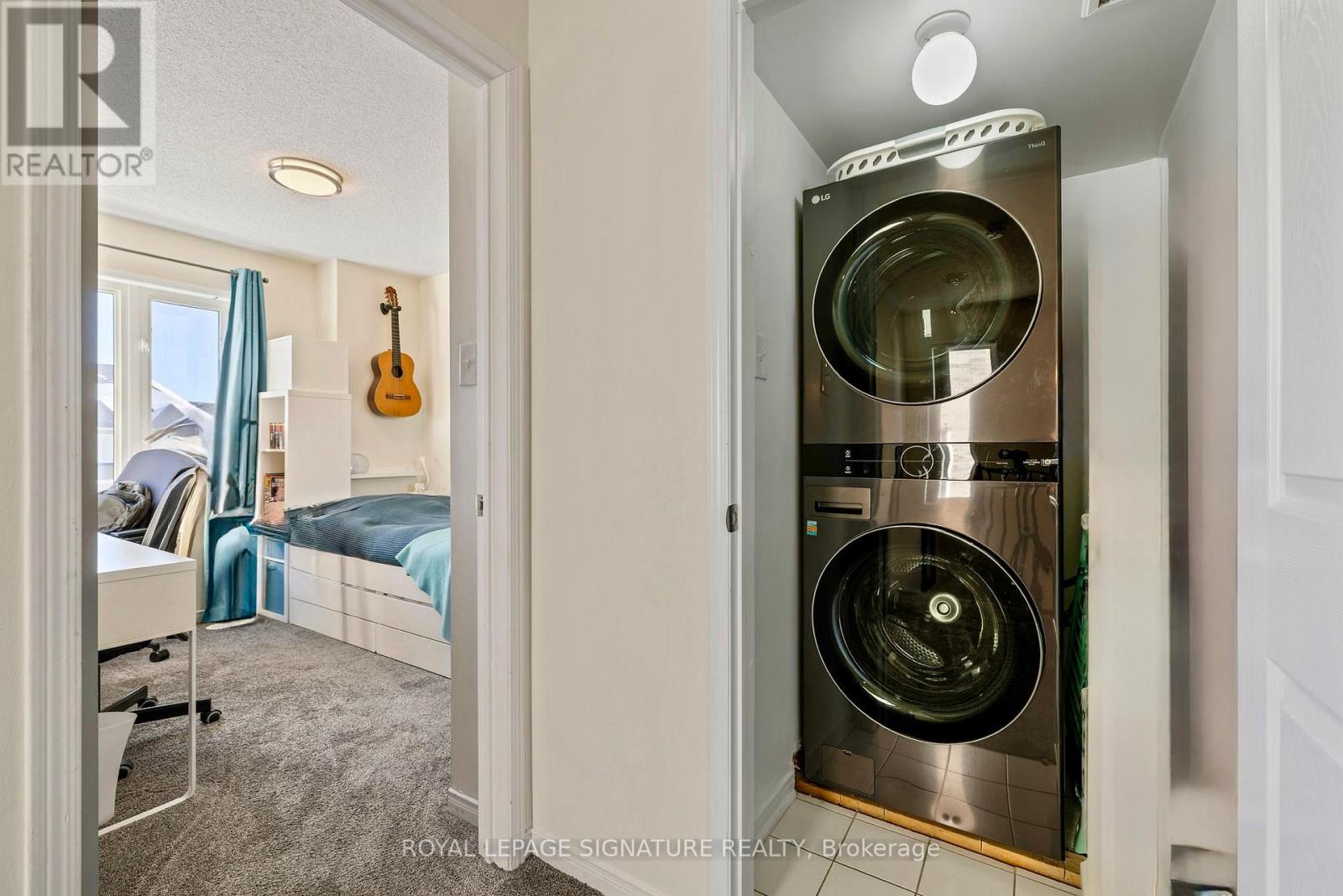 Well-Maintained Stacked Condo Townhouse in Sought-After Churchill Meadows, Mississauga. Bright and spacious end-unit filled of Natural Light, open-concept layout with combined living and dining areas, a modern kitchen featuring a centre island. This home offers 3 generous bedrooms, 2.5 bathrooms, and rare 2-car parking space. Excellent family-friendly neighbourhood, with numerous renovations and upgrades completed over the years, including: Kitchen quartz countertops, sink, range, microwave/hood, and light fixtures (2021), Bosch dishwasher (2022), Bosch WiFi-enabled refrigerator (2023), LG WiFi-enabled washer & dryer (2024), Updated flooring and carpet throughout (2024), Owned water heater, A/C unit (2025)and The refreshed terrace was completed in 2025. Prime location steps to Erin Mills Town Centre, transit, parks, restaurants, and top-rated schools. Minutes to major highways 403/407/QEW and GO Bus. A fantastic opportunity in one of Mississauga's most desirable communities- Don't miss out! (id:4555)