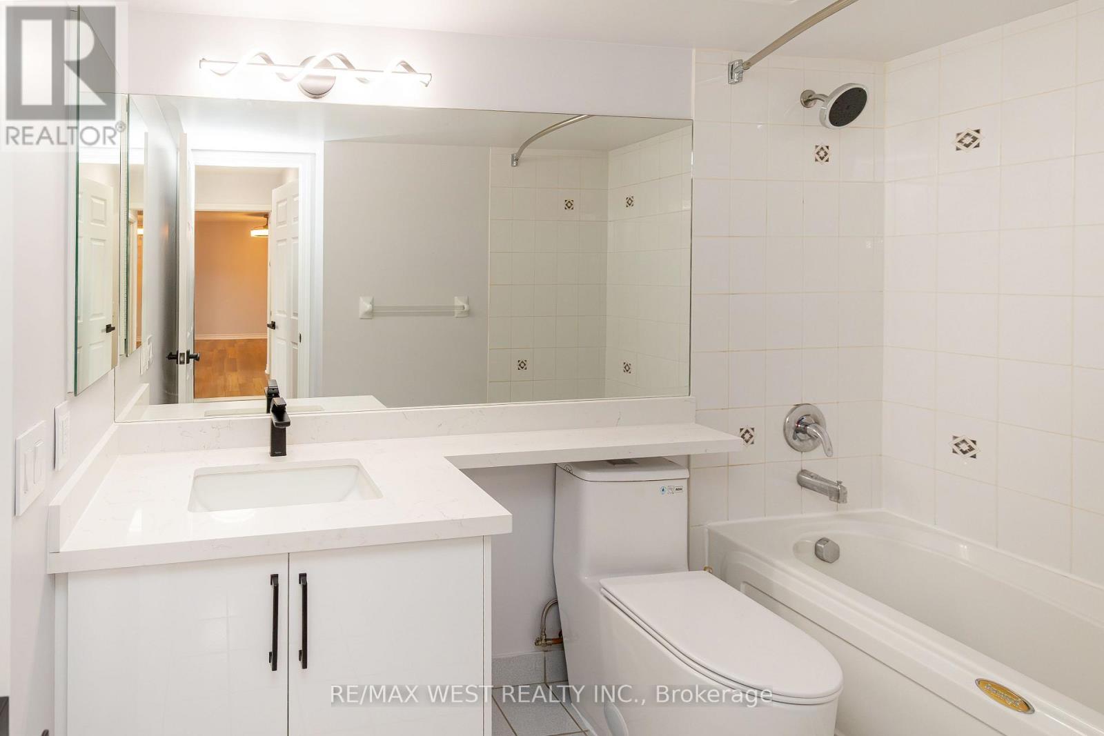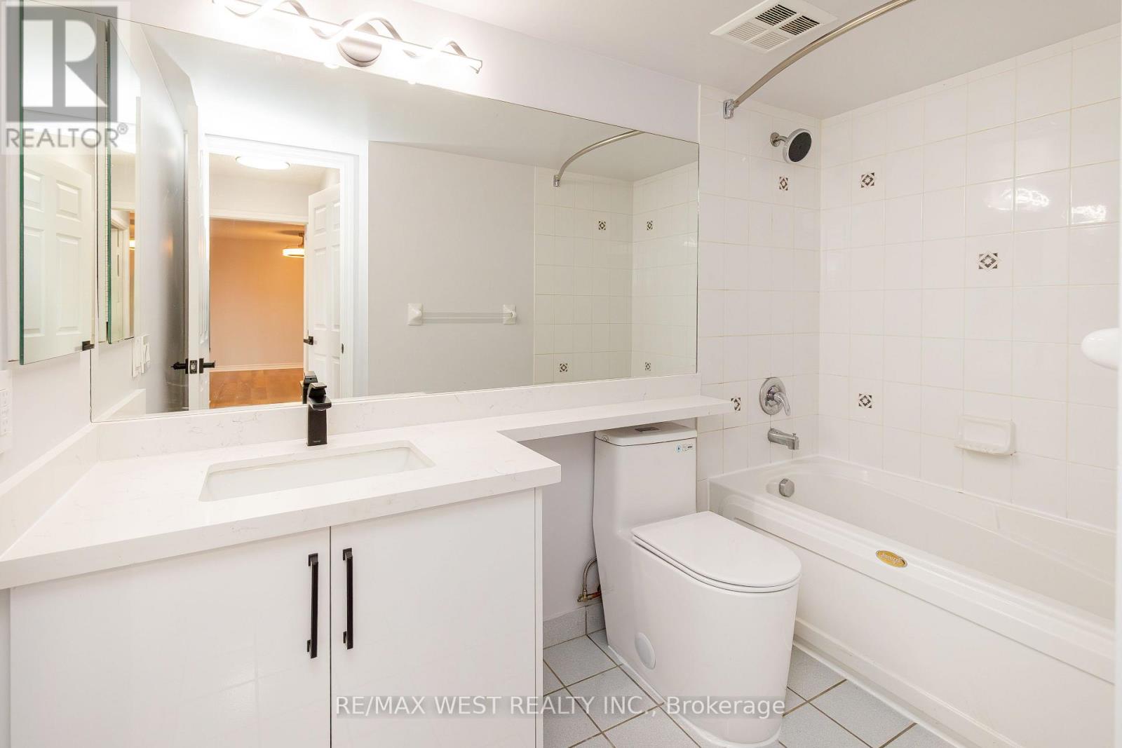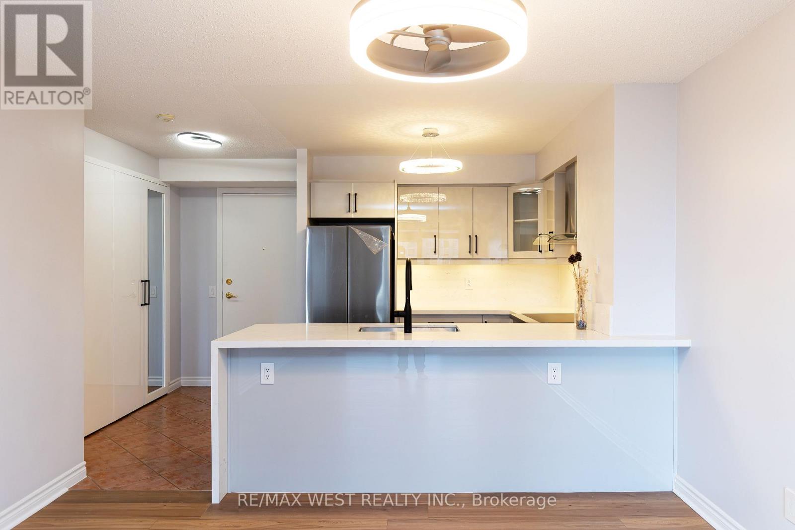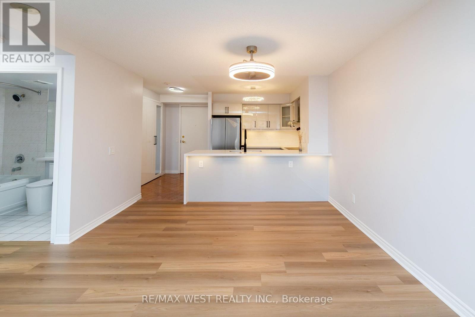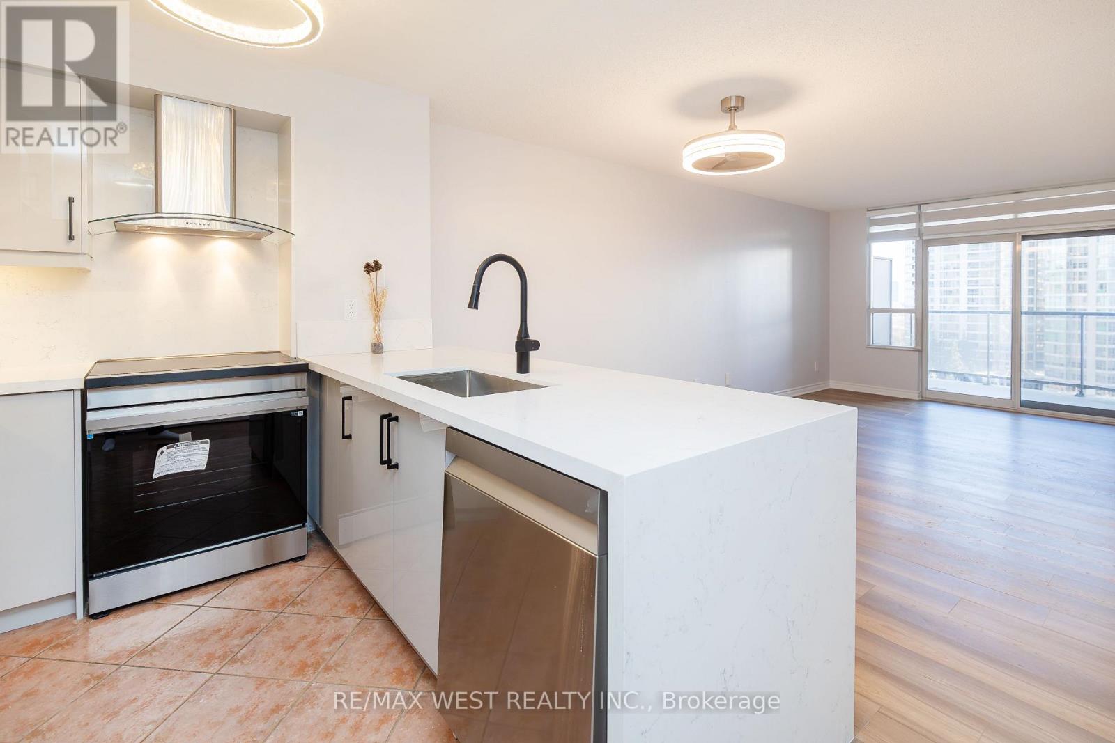 Step into refined urban living in this bright, approximately 1,000 sq. ft. fully renovated suite, thoughtfully designed for modern comfort and style. Move-in ready and vacant, every detail has been upgraded to create a sophisticated, turnkey home. The gourmet kitchen features sleek contemporary cabinetry, quartz countertops and backsplash, stainless steel appliances, and a brand-new washer and dryer-perfect for both everyday living and entertaining. Bathrooms are beautifully updated with designer vanities, modern fixtures, and premium finishes. Stylish laminate flooring flows throughout the living spaces, complemented by modern LED lighting, fresh paint, and upgraded trim for a clean, seamless aesthetic. Includes exclusive parking (Spot B130) with space for two vehicles, plus a dedicated locker (#442). Enjoy unparalleled resort-style amenities, including a full spa and health club, indoor pool and hot tub, bowling alley, mini golf, private theatre, party room, billiards room, guest suites, and expansive outdoor terraces. Ideally located just two blocks from Square One, with walking access to schools, parks, shopping, dining, transit, and the upcoming LRT at your doorstep. Easy access to major highways and Pearson International Airport completes this exceptional offering. (id:4555)