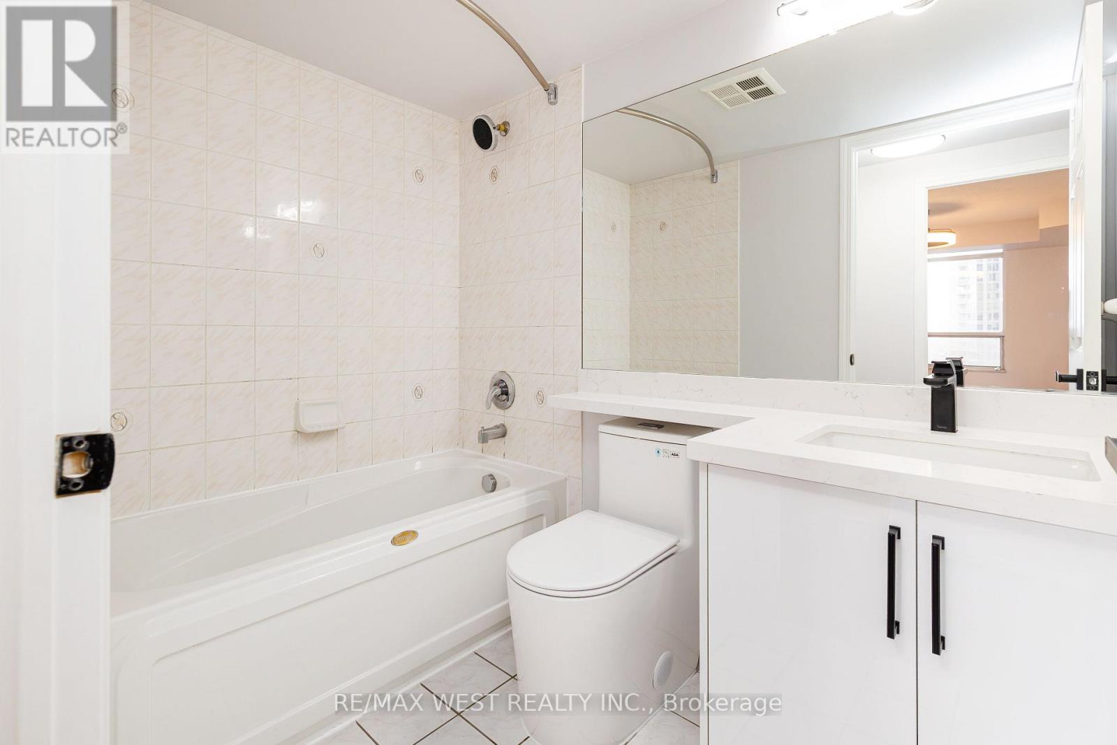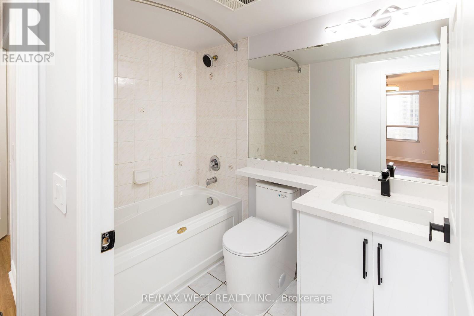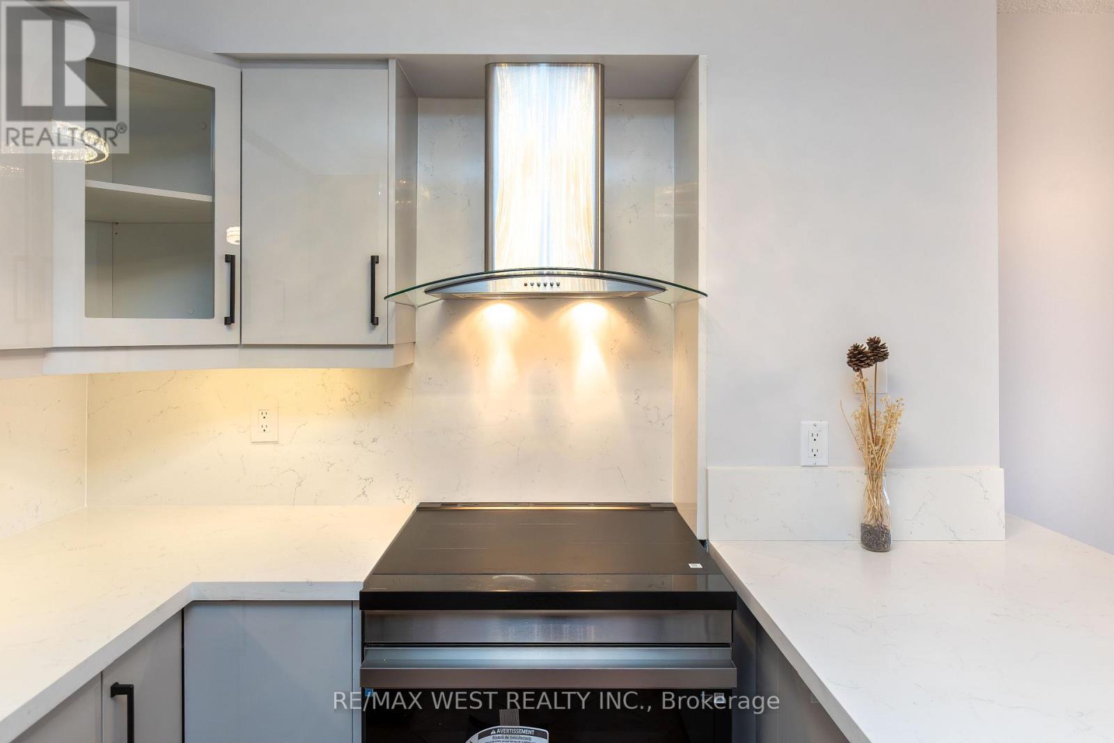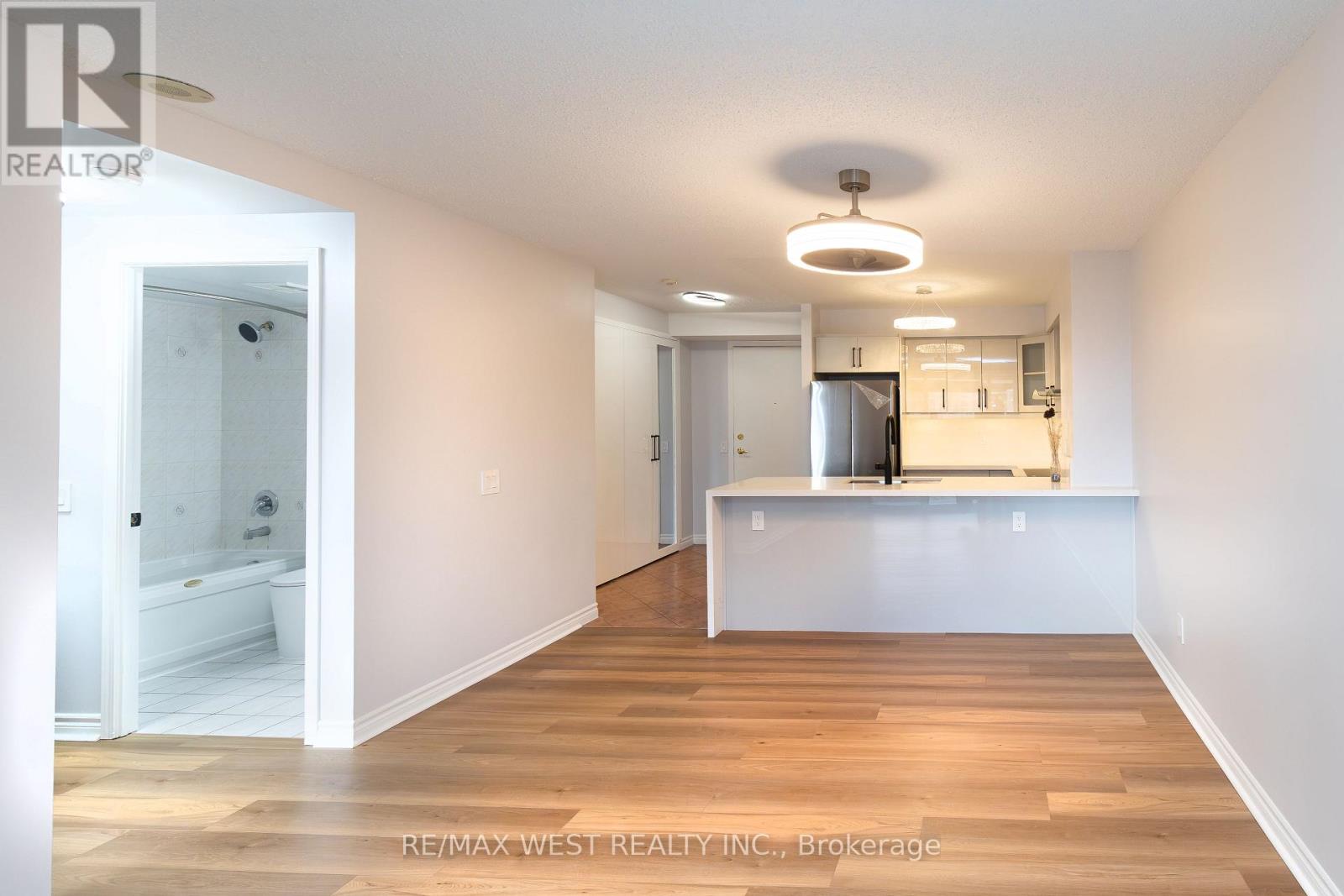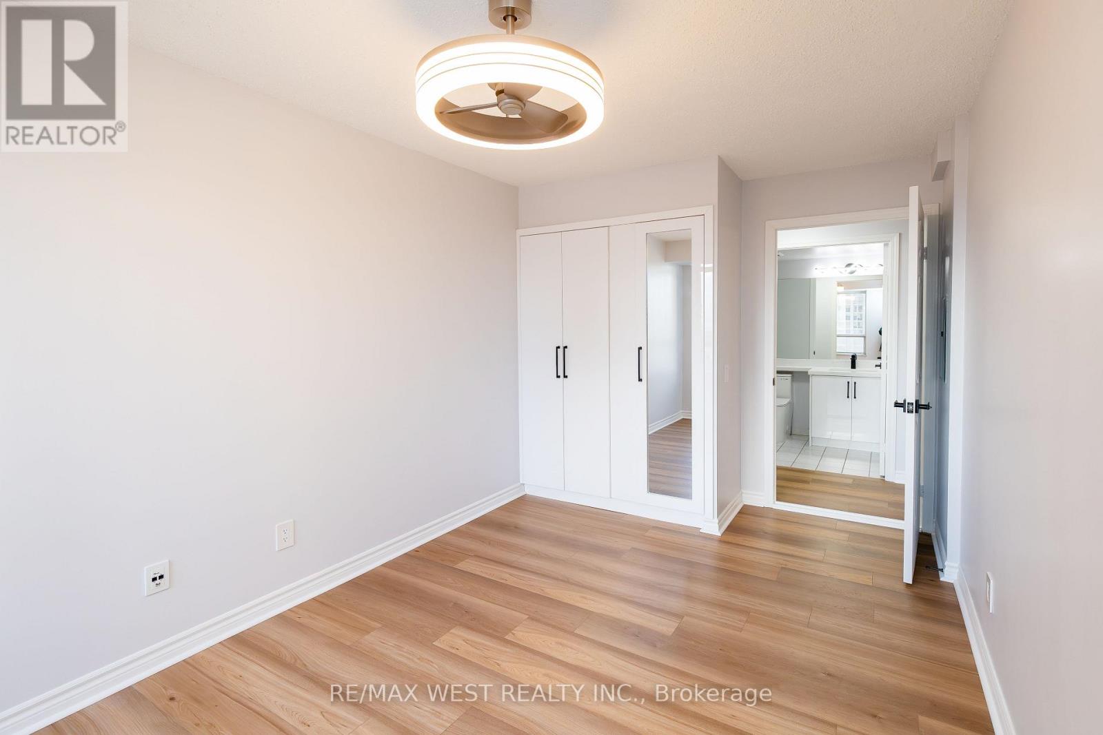Step into refined urban living in this bright, approximately 1,000 sq. ft. fully renovated suite, thoughtfully designed for modern comfort and style. Move-in ready and vacant, every detail has been upgraded to create a sophisticated, turnkey home. The gourmet kitchen features sleek contemporary cabinetry, quartz countertops and backsplash, stainless steel appliances, and a brand-new washer and dryer-perfect for both everyday living and entertaining. Bathrooms are beautifully updated with designer vanities, modern fixtures, and premium finishes. Stylish laminate flooring flows throughout the living spaces, complemented by modern LED lighting, fresh paint, and upgraded trim for a clean, seamless aesthetic. Includes exclusive parking (Spot B130) with space for two vehicles, plus a dedicated locker (#442). Enjoy unparalleled resort-style amenities, including a full spa and health club, indoor pool and hot tub, bowling alley, mini golf, private theatre, party room, billiards room, guest suites, and expansive outdoor terraces. Ideally located just two blocks from Square One, with walking access to schools, parks, shopping, dining, transit, and the upcoming LRT at your doorstep. Easy access to major highways and Pearson International Airport completes this exceptional offering. (id:4555)