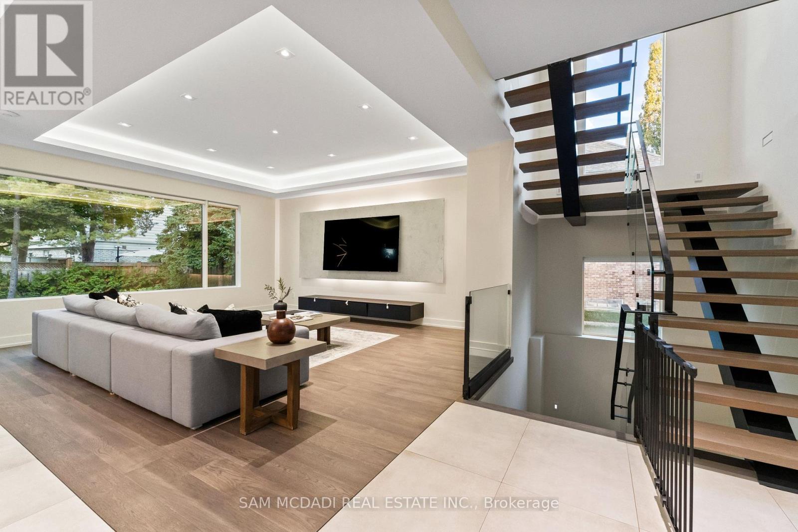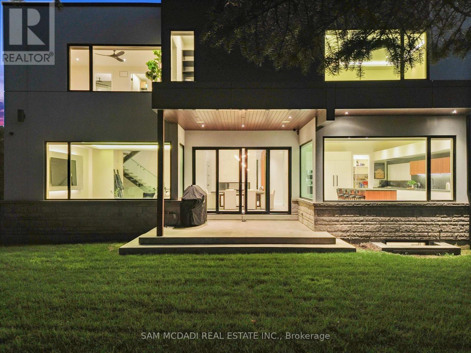 Welcome to 2075 Shawanaga Trail, tucked within the prestigious Sheridan enclave. This elegant residence offers over 6,000 SF of finished living space, thoughtfully designed with 5 bedrooms and 6 bathrooms. A dramatic double-height foyer sets the tone, leading into light-filled interiors where oversized windows showcase the homes architectural elegance. Tray ceilings with recessed and cove lighting create a soft ambient glow, while a two-way gas fireplace anchors the open living and dining areas. A glass-enclosed wine display adds a sculptural statement, perfect for the discerning collector. The chef's kitchen features quartz countertops, integrated appliances, custom cabinetry and walk-in pantry. It flows seamlessly into the main gathering spaces with views of the private backyard. A covered patio invites year-round entertaining, while a main floor office offers quiet workspace. Above, the primary suite is a private retreat with dual walk-in closets and a spa-like ensuite with freestanding tub and glass shower. Three additional bedrooms feature walk-in closets and private or semi-ensuite baths. A second-floor laundry room adds convenience. The finished lower level boasts 9-foot ceilings, a full wet bar, expansive recreation room, guest suite with ensuite, and a flexible room ideal for media or fitness. Outdoors, the professionally landscaped backyard is framed by mature trees, offering privacy, tranquility, and space to customize. Additional highlights include engineered hardwood, built-in Sonos audio, newer roof and windows (2022), and ample parking. Located near Mississauga and Credit Valley Golf Clubs, University of Toronto Mississauga, and highly acclaimed schools. Just minutes to the QEW, 403, Port Credit Village, and scenic waterfront trails. (id:4555)