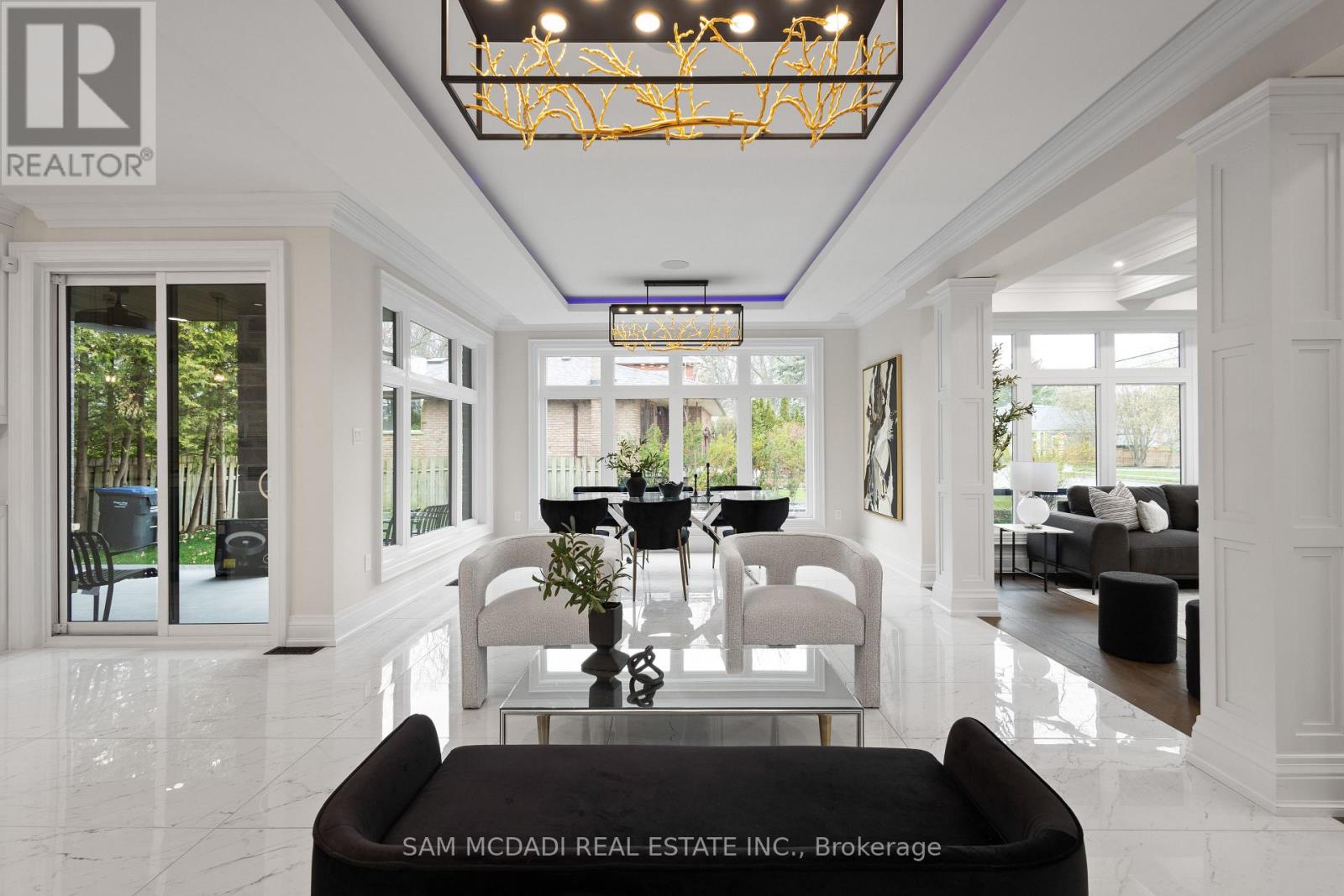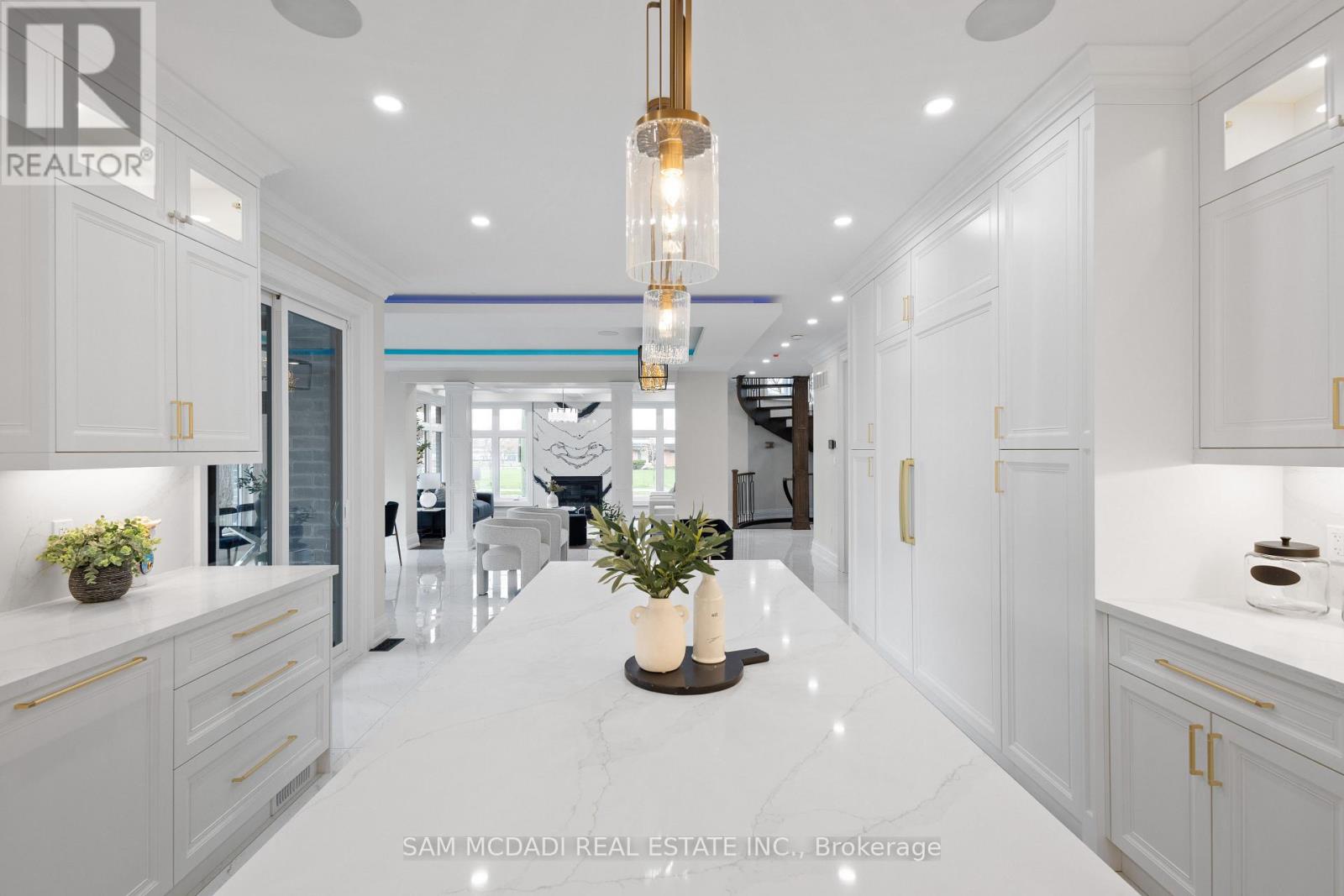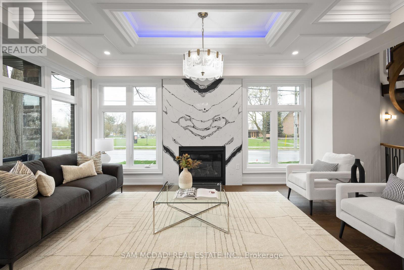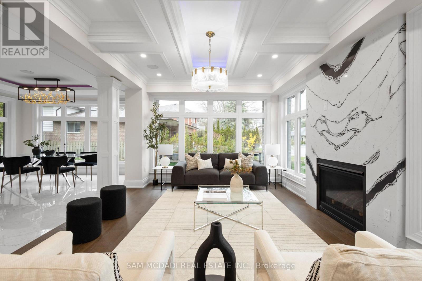Discover this custom-built masterpiece in prestigious Mineola on a premium 75 x 100 ft corner lot with a walk-out basement. Designed for comfort and sophistication, this stunning residence offers 4+2 bedrooms, 5.5 bathrooms, and over 4,600 sq ft of beautifully finished living space across three levels, with excellent income potential from the lower level. Step through the front entry to soaring coffered ceilings, wide-plank engineered hardwood floors, and a floating spiral staircase wrapped in natural light. The main level integrates design and function with a built-in speaker system, Control4 wiring roughed-in, security cameras, ambient LED cove lighting, and oversized picture windows creating a warm yet modern aesthetic. The open-concept dining room offers backyard views, while the family room is anchored by a full-height book-matched fireplace wall. The chef's kitchen features an oversized waterfall quartz island, integrated paneled appliances, and custom cabinetry. Upstairs, four spacious bedrooms include walk-in closets and ensuite or semi-ensuite access. The primary suite showcases tray ceilings, ambient lighting, and a spa-inspired 5-piece ensuite with heated floors, freestanding tub, and glass shower with gold trim. The finished lower level offers two separate units. The first unit includes a private exterior entrance, two bedrooms, full bathroom, kitchen, living area, separate laundry, and storage - ideal for multi-generational living or rental income to supplement mortgage payments. The second unit provides extended living space with a wet bar, recreation room, and full bathroom. Two cold rooms provide additional storage and functionality. Exterior highlights include a double garage, professionally landscaped grounds, and a private driveway for convenient parking. Situated in a prime location close to top-rated public and private schools including Mentor College, waterfront parks/trails, quick access to the QEW, Highway 403 and more! (id:4555)