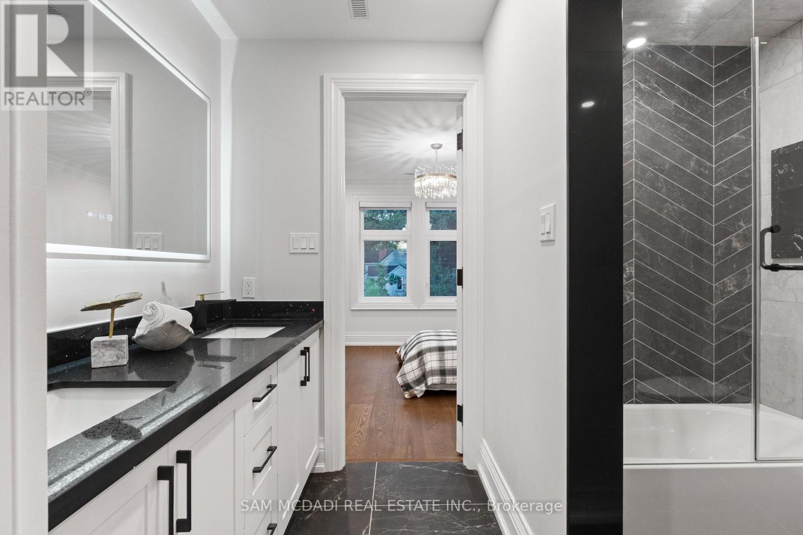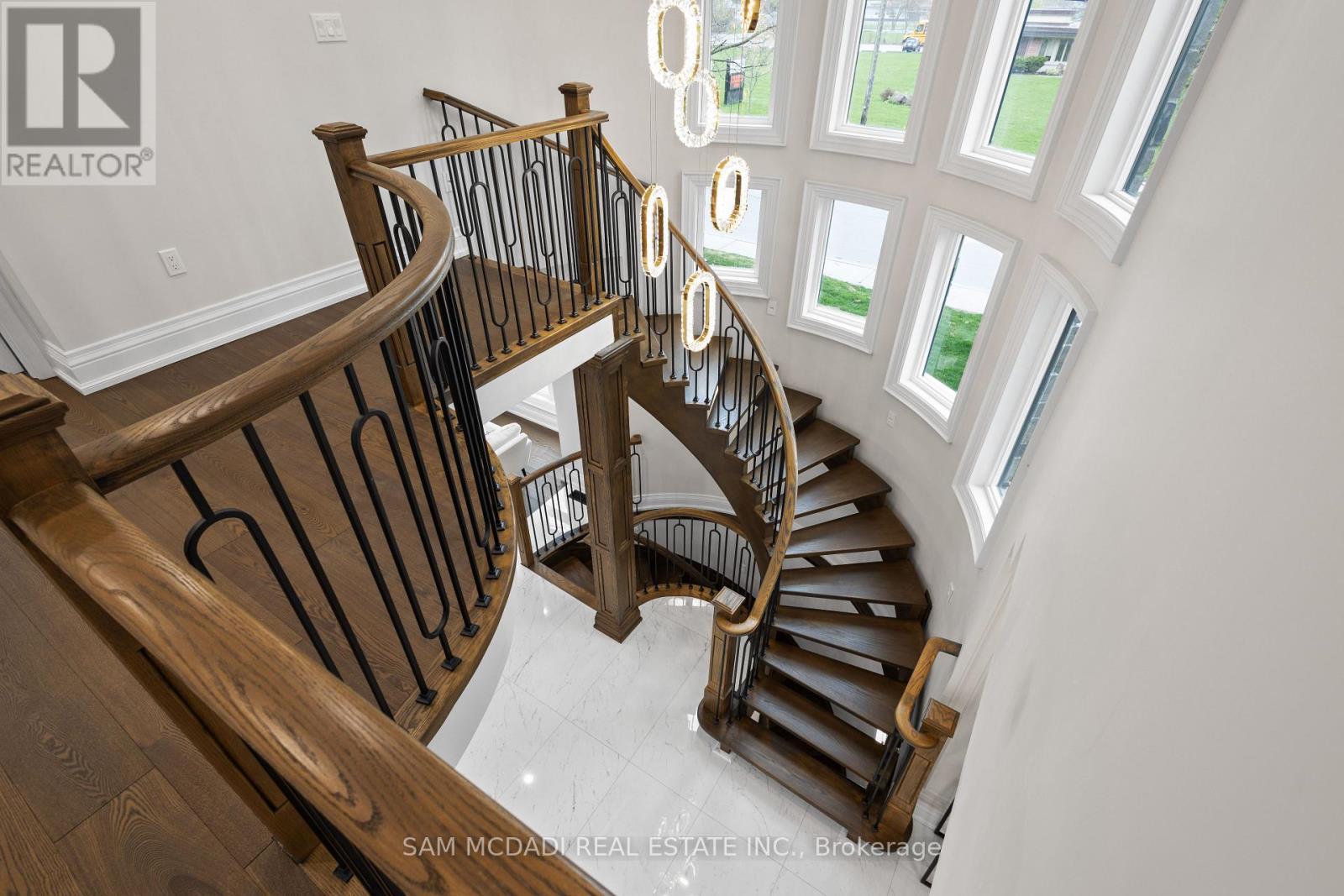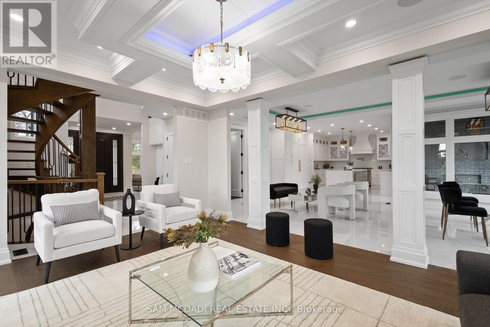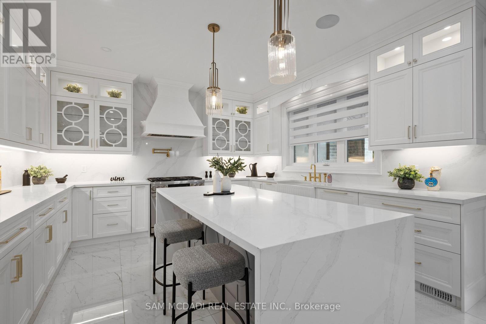 Discover this custom-built masterpiece in prestigious Mineola on a premium 75 x 100 ft corner lot with a walk-out basement. Designed for comfort and sophistication, this stunning residence offers 4+2 bedrooms, 5.5 bathrooms, and over 4,600 sq ft of beautifully finished living space across three levels, with excellent income potential from the lower level. Step through the front entry to soaring coffered ceilings, wide-plank engineered hardwood floors, and a floating spiral staircase wrapped in natural light. The main level integrates design and function with a built-in speaker system, Control4 wiring roughed-in, security cameras, ambient LED cove lighting, and oversized picture windows creating a warm yet modern aesthetic. The open-concept dining room offers backyard views, while the family room is anchored by a full-height book-matched fireplace wall. The chef's kitchen features an oversized waterfall quartz island, integrated paneled appliances, and custom cabinetry. Upstairs, four spacious bedrooms include walk-in closets and ensuite or semi-ensuite access. The primary suite showcases tray ceilings, ambient lighting, and a spa-inspired 5-piece ensuite with heated floors, freestanding tub, and glass shower with gold trim. The finished lower level offers two separate units. The first unit includes a private exterior entrance, two bedrooms, full bathroom, kitchen, living area, separate laundry, and storage - ideal for multi-generational living or rental income to supplement mortgage payments. The second unit provides extended living space with a wet bar, recreation room, and full bathroom. Two cold rooms provide additional storage and functionality. Exterior highlights include a double garage, professionally landscaped grounds, and a private driveway for convenient parking. Situated in a prime location close to top-rated public and private schools including Mentor College, waterfront parks/trails, quick access to the QEW, Highway 403 and more! (id:4555)