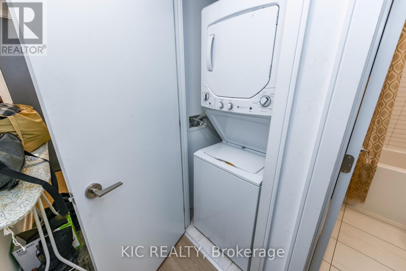 Situated at the prime intersection of Hurontario & Dundas in Cooksville, this stunning 2+Den, 2 Bath condo combines modern design with unmatched connectivity. Offering 741 sq ft of interior living space plus a 30 sq ft balcony, this suite is thoughtfully designed for both style and function. The primary bedroom features a sleek ensuite, while the spacious den can easily serve as a home office or guest room. With 9-foot ceilings, floor-to-ceiling windows, and an open-concept layout, the home feels bright and inviting. The modern kitchen boasts built-in appliances, quartz countertops, and a matching backsplash, perfect for everyday living and entertaining. Enjoy views of the vibrant Cooksville neighbourhood and the convenience of being just minutes from the future Hurontario LRT & BRT stops, Square One, Sheridan College, UTM, and major highways (403, 401, QEW). This unit also comes with a locker for extra storage. World-class amenities include: 24/7 concierge, gym, outdoor terrace, cabana-style BBQ area, party room, and meeting rooms, everything you need for modern urban living in the heart of Mississauga! existing light fixtures, and GE appliances, including the count (id:4555)