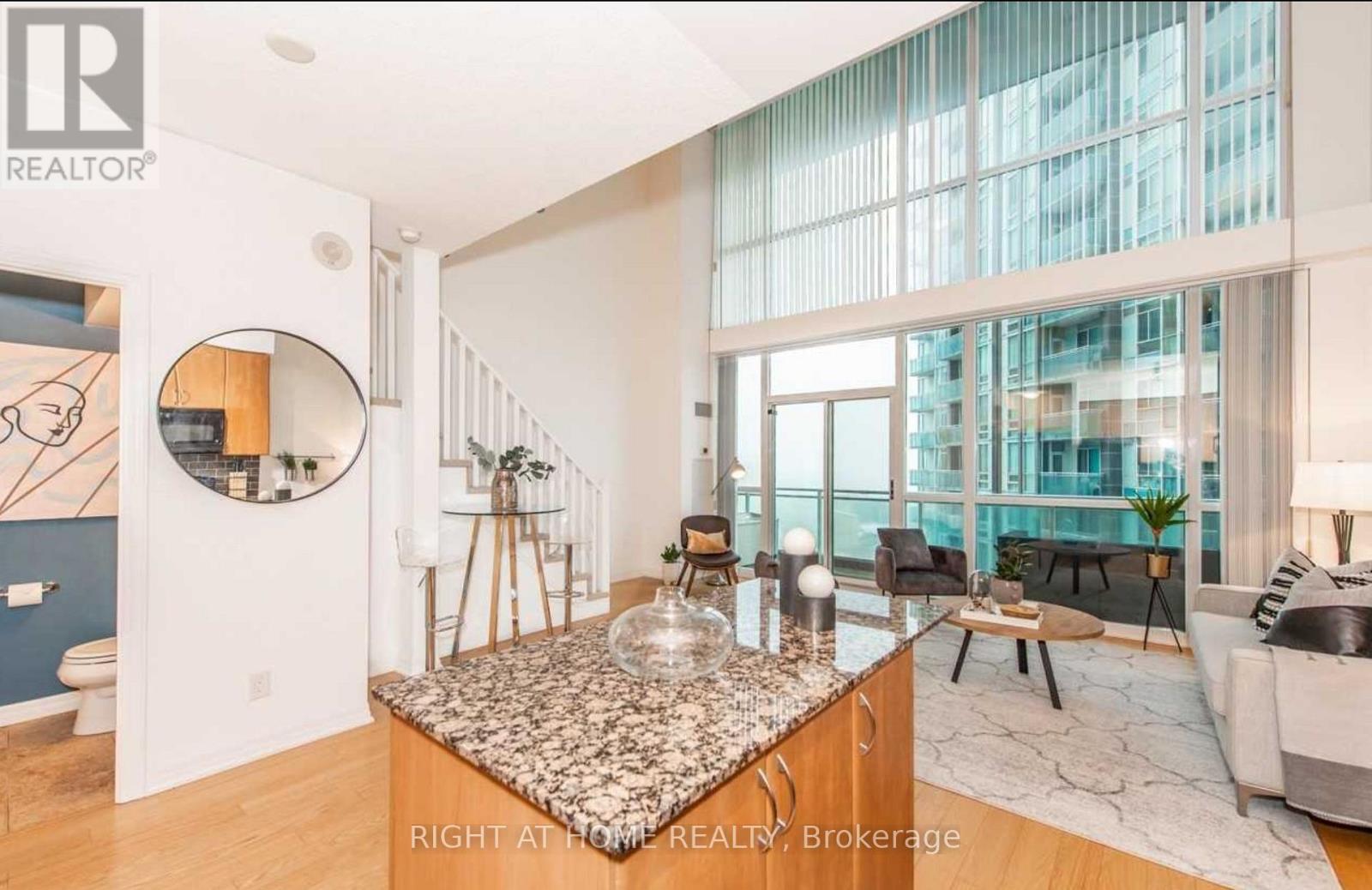 Bright 1 bedroom + den loft in the heart of Mississauga. Luxury corner unit featuring a functional layout with spacious den ideal for WFH , soaring open-to-above living room, and open-concept kitchen perfect for entertaining. Second-level primary bedroom with private ensuite and walk-in closet. Enjoy city views from the private balcony with space for patio furniture. Includes underground parking and large locker. Located in the highly sought-after Onyx building offering premium amenities: gym, yoga studio, pool, sauna/steam room, indoor & outdoor hot tubs, rooftop lounge, and BBQ gardens. Steps to Square One, transit, highways, schools, and more. (id:4555)