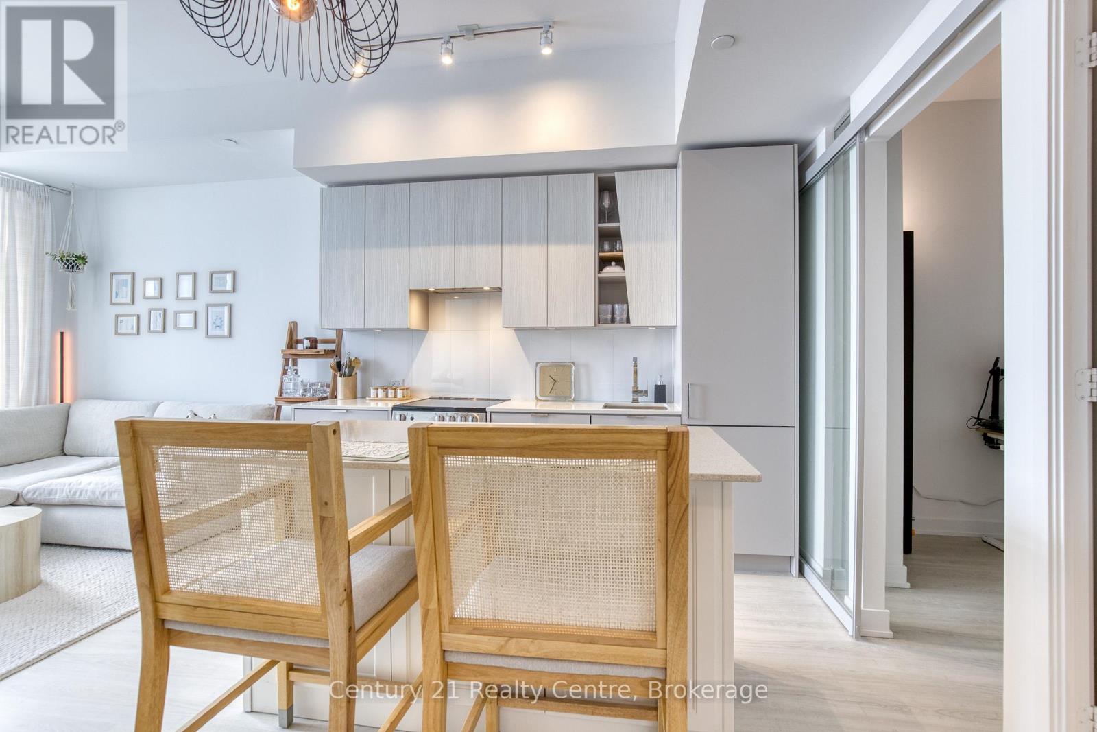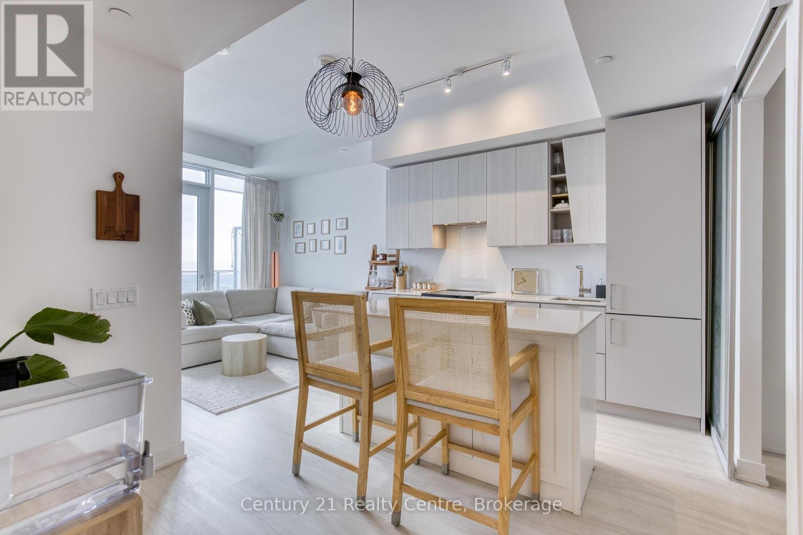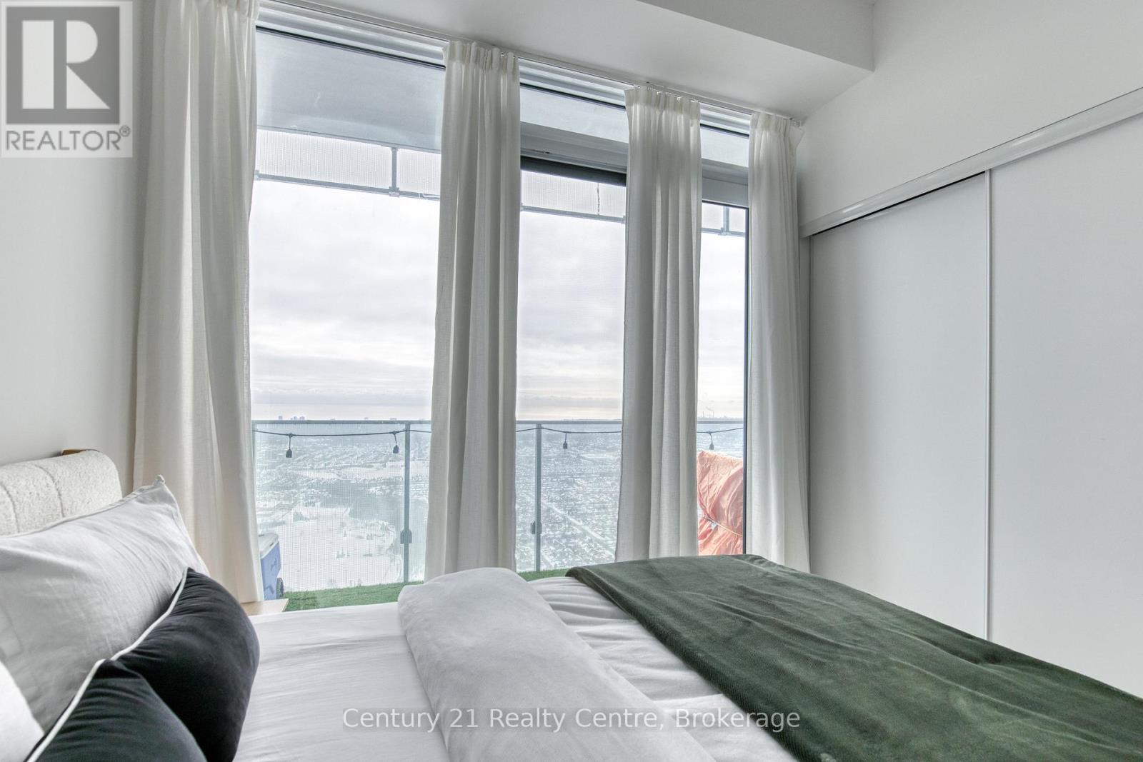 Perched high above the city on the 55th floor of the iconic M City M2, this sophisticated 2-bedroom plus media residence offers refined urban living with sweeping south-facing views. Thoughtfully designed with 9-foot ceilings and an elegant open layout, the suite spans 811 sq. ft. of total space, seamlessly blending 698 sq. ft. of interior living with an expansive 113 sq. ft. private balcony-perfect for enjoying sun-filled days and dramatic cityscapes. The designer kitchen showcases sleek stainless steel appliances, quartz surfaces, and contemporary cabinetry, striking a perfect balance between form and function while comfortably accommodating a dedicated dining area. The living space is framed by floor-to-ceiling windows, creating a bright, elevated atmosphere ideal for both everyday living and entertaining. The primary retreat features panoramic glazing, direct balcony access, and a spa-inspired 3-piece ensuite. A generously proportioned second bedroom is complemented by a stylish 4-piece bath. A separate media area adds flexibility, ideal for a private home office or curated work-from-home space. Residents of M City M2 enjoy an exceptional lifestyle with world-class amenities, including an outdoor saltwater pool, yoga and fitness studios, steam room, resident lounges, skating rink, splash pad, and thoughtfully designed family spaces. Situated in the heart of Mississauga's vibrant downtown core, just steps to Square One, GO Transit, Celebration Square, premier dining, cultural venues, parks, post-secondary institutions, and the upcoming LRT. Includes one parking space, one locker, high-speed internet, and a smart home monitoring system. (id:4555)