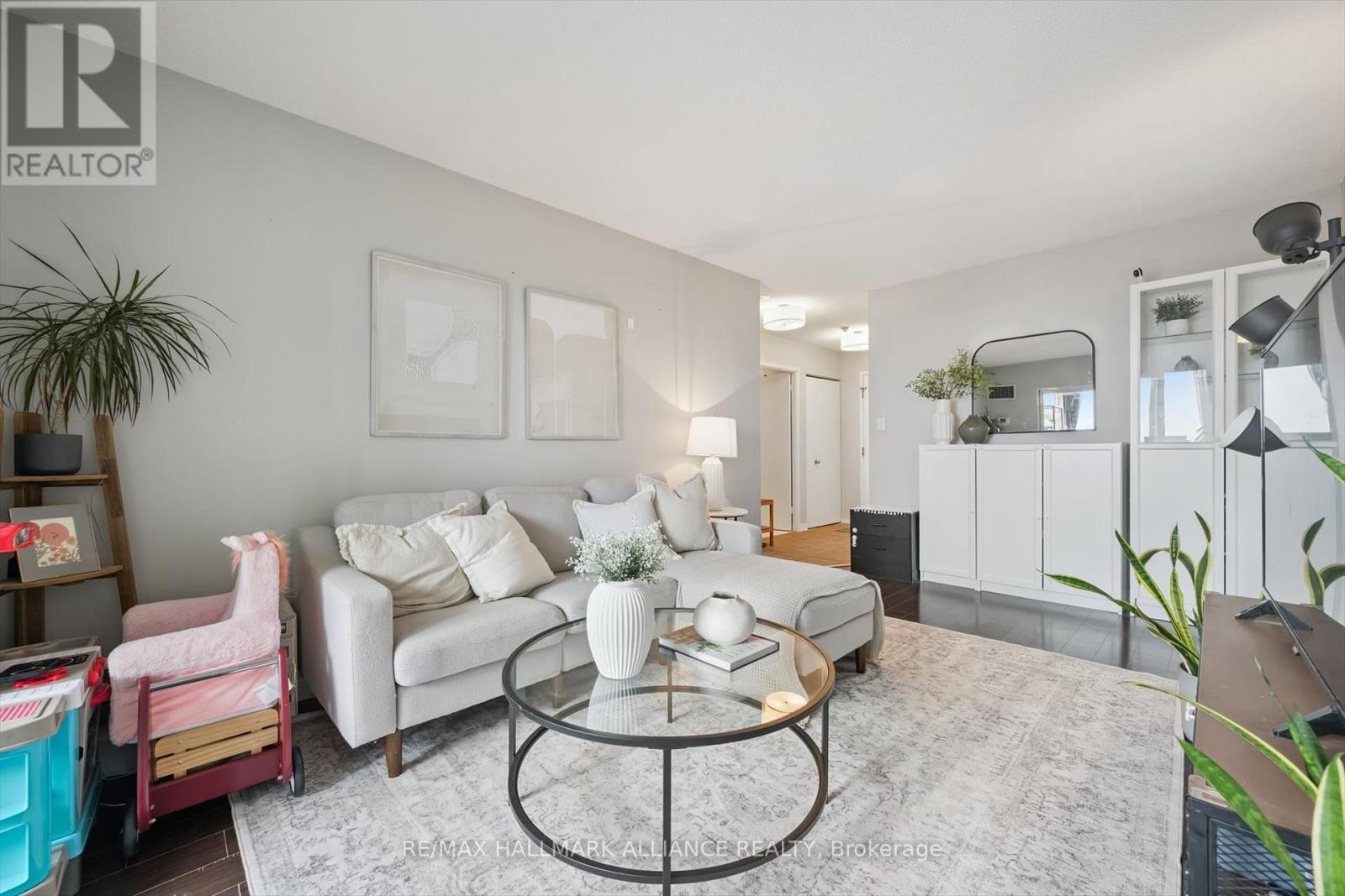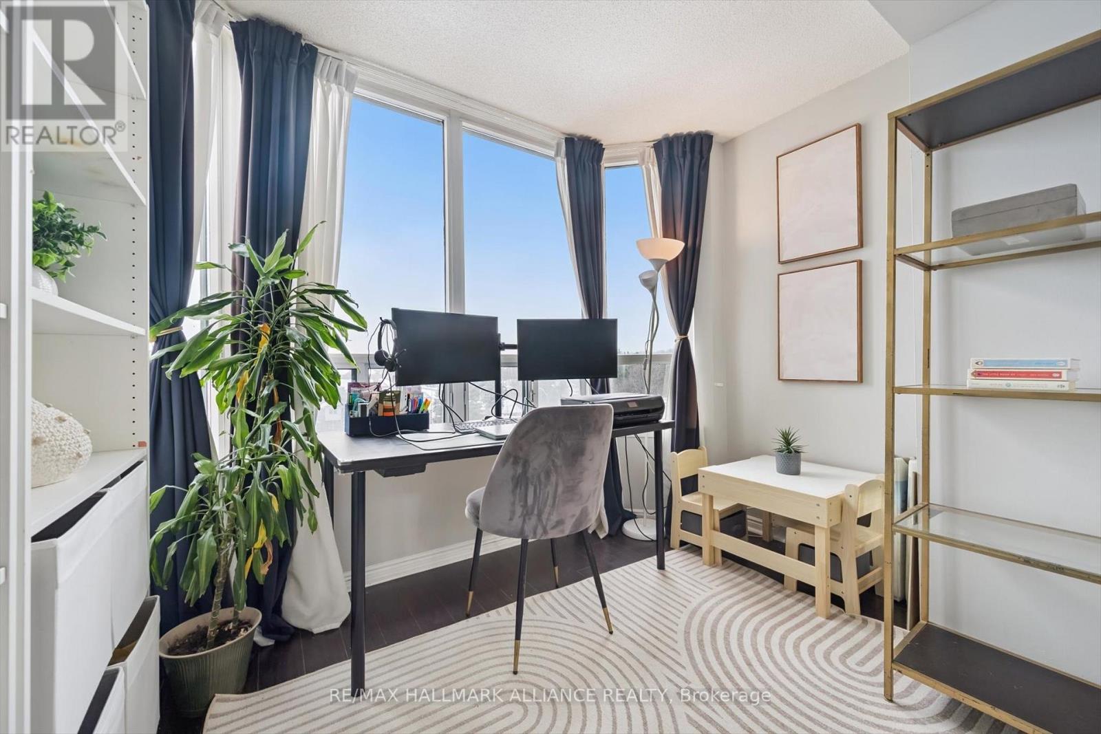 Welcome Home! 846 sq ft of sunshine in one of Mississauga's most convenient locations. This beautifully maintained unit offers clear views and an abundance of natural light, feeling like home the moment you step inside. The bright and spacious layout features a large primary bedroom with a walk-in closet, a sun-filled solarium ideal for working from home, and a versatile bedroom perfect as a second bedroom, dining room or office. Enjoy a separate eat-in kitchen, laminate flooring, and the convenience of ensuite laundry. Set in a secure building with a recently renovated lobby and 24-hour concierge, plus amenities including a gym, party room, BBQ area, tennis courts, and walking trails. Walking distance to Cooksville GO Station, close to Square One, major highways, groceries, schools, and the future LRT. Book your private showing today! (id:4555)