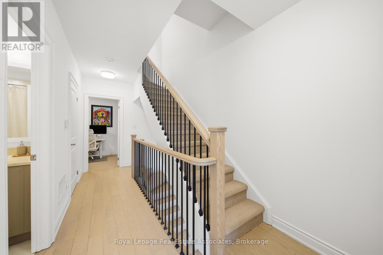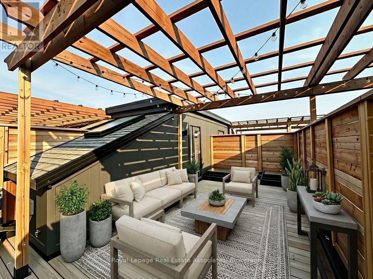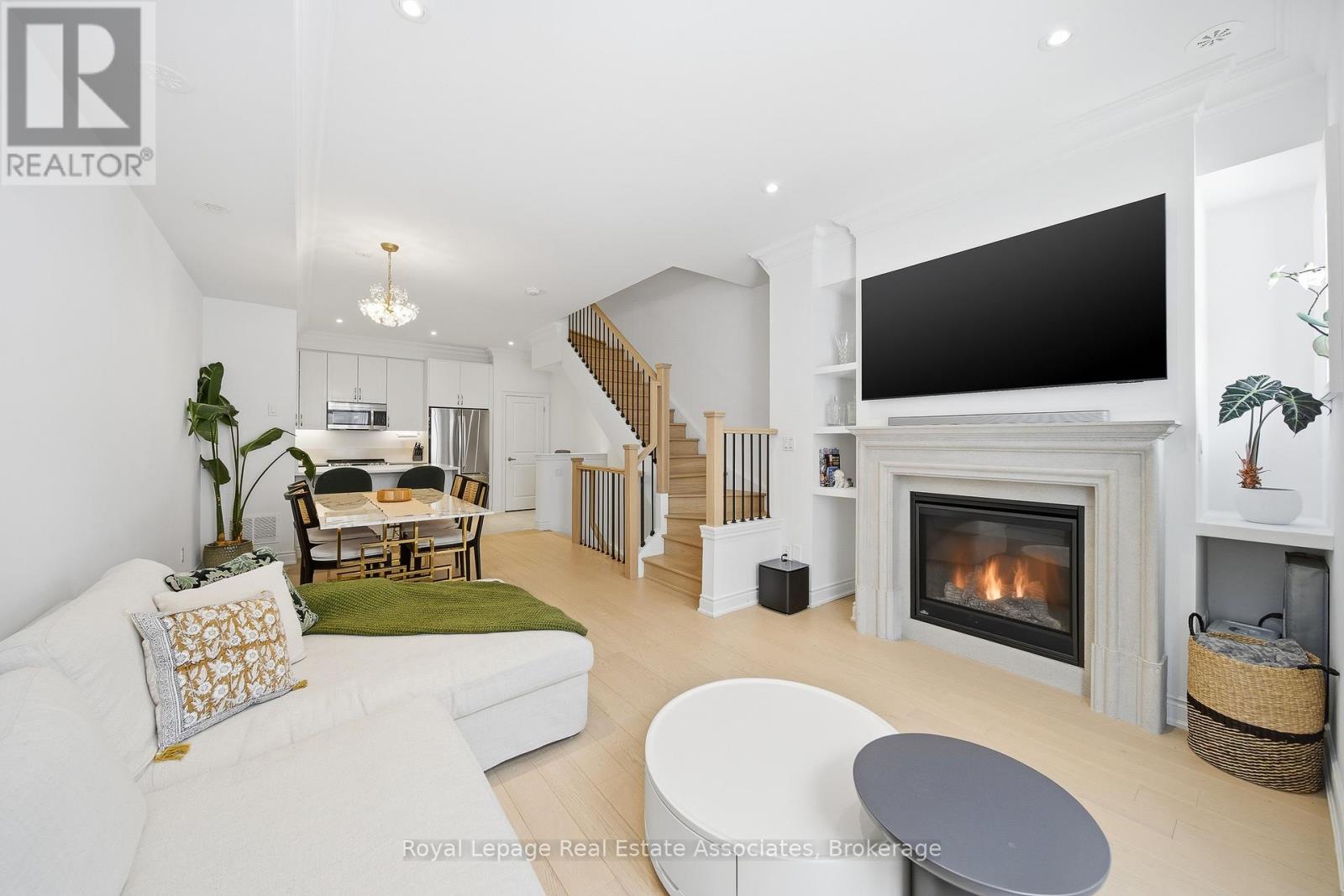 A refined luxury townhome by Dunpar Homes, nestled in the heart of vibrant Streetsville. This thoughtfully upgraded 1517 sq ft 3-bedroom, 2-bathroom residence delivers premium finishes, thoughtful design, and exceptional indoor-outdoor living in a prime, walkable location. The interior is bright and open, featuring soaring 9.5-foot ceilings and numerous skylights that flood the home with natural light. Wide plank hardwood flooring, smooth ceilings, LED pot lights, and solid oak stairs with iron pickets create an elegant and cohesive feel throughout. A natural gas fireplace with an upgraded Regency-style mantel and custom built-in shelving anchors the main living space, adding both warmth and functional design. The custom two-toned kitchen is a chef's delight, finished with quartz counters, a waterfall island, crown mouldings, premium stainless-steel appliances, and elevated cabinetry details. Bathrooms feature luxurious marble counters. Additional upgrades include a central steam humidifier and an electric vehicle charger rough-in. The primary suite functions as a private retreat, complete with crown moulding, a walkout to a private balcony, and an oversized walk-in closet with a fully integrated custom organization system. Outside, an expansive south-facing 268 sq ft rooftop terrace offers a gas BBQ line, water hookup, and a pergola-ideal for effortless, sun-filled entertaining. Enjoy an unparalleled level of convenience. The home is steps to GO transit, dining, trails, parks, top-rated schools, a recreation centre, and charming village shops, all with quick access to major highways. Set within an exclusive, family-friendly community known for its timeless architecture and modern design, this townhome offers the perfect blend of luxury, convenience, and low-maintenance living. Extensively upgraded, generously sized, and offering exceptional value, this turnkey home delivers luxury without compromise. (id:4555)