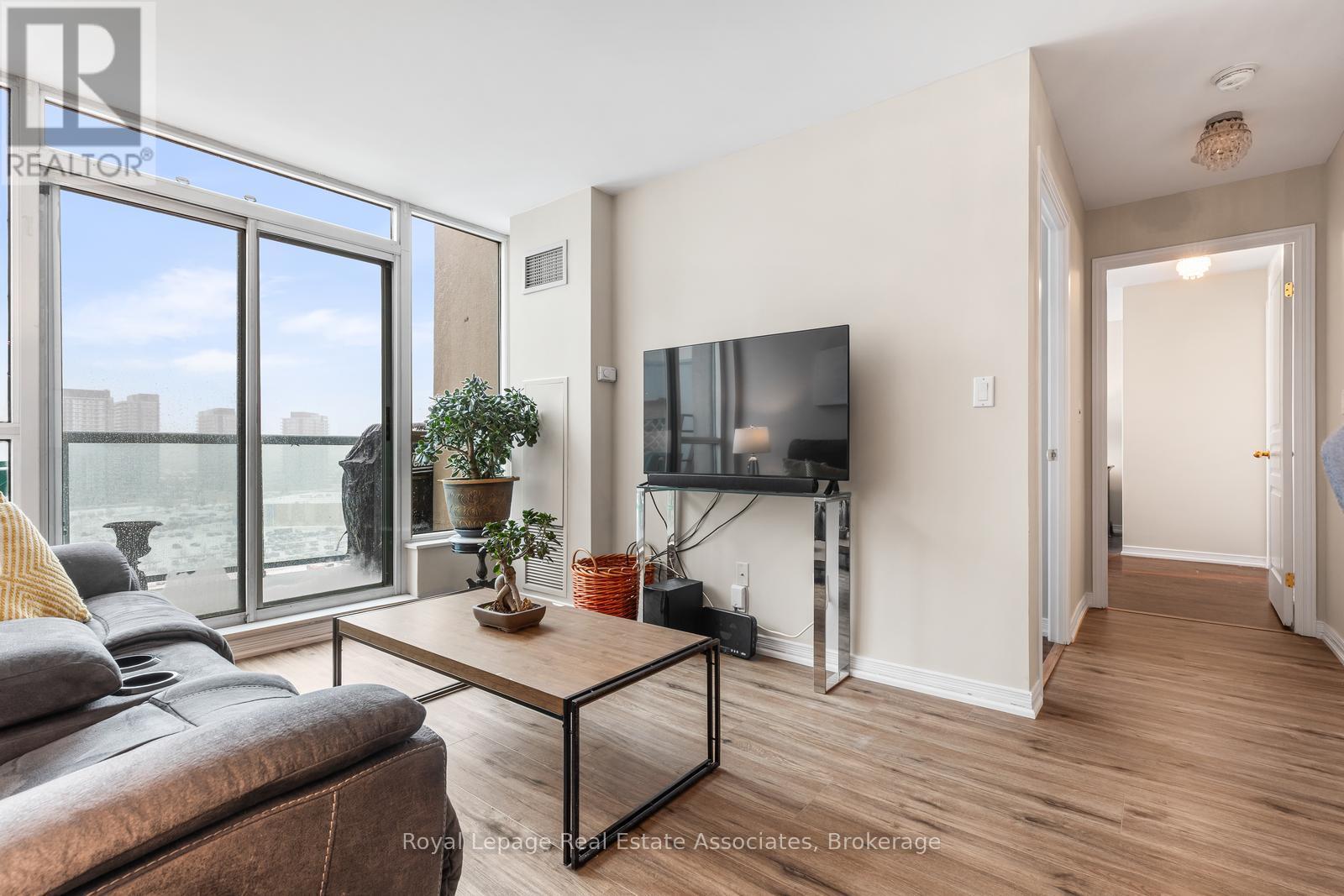 Rarely available and beautifully updated penthouse residence with south views facing the lake and located in the heart of Central Erin Mills in Mississauga! Freshly painted throughout, this bright and inviting 2 bedroom, 2 bathroom condo offers a desirable sunny south exposure, filling the space with natural light and features a walkout to a private balcony with panoramic views. The open concept layout features a stylish kitchen complete with stone countertops, a breakfast bar and stainless steel appliances, flowing effortlessly into the living and dining areas. The spacious primary bedroom is a true retreat, including a renovated 3 piece ensuite, while the second bedroom offers flexibility for guests or a home office. Added conveniences include a huge storage locker located directly in front of the owned parking spot, making everyday living both comfortable and practical. Building amenities includes 24 hour gated security, an indoor pool, hot tub, sauna, gym, tennis court, party room, games room, library & plenty of visitor parking. A rare penthouse opportunity in a sought after neighbourhood steps to shopping, transit, parks, highly rated schools and all urban amenities including Erin Mills Town Centre with all of its shops and restaurants. Close to Credit Valley Hospital and easy access to highways 403, 401 & 407. (id:4555)