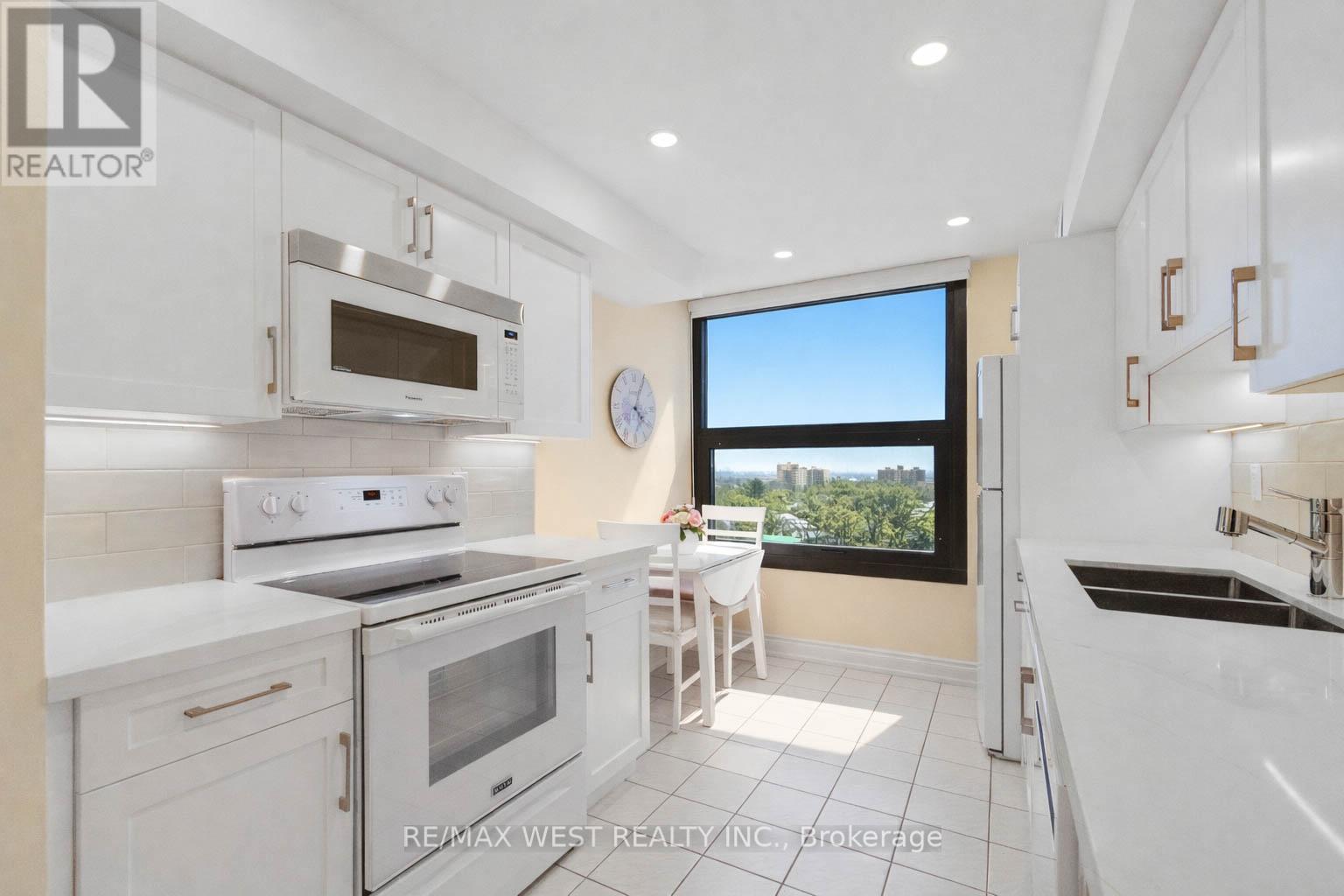 Welcome to Applewood Landmark, a well-established and sought-after community known for its exceptional amenities and comfortable lifestyle. This beautifully renovated 1-bedroom plus solarium suite offers a generous 1,086sf of bright and functional living space with stunning lake, city, and skyline views as your everyday backdrop. Thoughtfully renovated throughout, the unit blends modern finishes with comfort, style and quality. The open concept living and dining areas feature gorgeous refinished herringbone patterned floors and flows seamlessly to the sun-filled solarium that's perfect for an office, reading room or guest accommodation. The updated kitchen showcases quartz countertops, top-of-the-line appliances, and a charming breakfast area - a perfect spot to start your day. The generous primary bedroom serves as a peaceful retreat and includes an impressive walk-in closet for abundant well-organized storage and the beautifully renovated bathroom with a quartz-top vanity, elegant cabinetry, and updated fixtures come together in a clean, spa-inspired design. One parking spot, ensuite laundry and ensuite storage space finish this stylish suite. A rare opportunity to own a beautiful turnkey suite in a high demand building that presents an extensive list of amenities such as 24hr concierge security, Rooftop Deck, Indoor Rooftop pool with Sauna and Whirlpool, Party rooms, Guest Suites, Car wash, Convenience Store, Gym/Health Club, Pickleball court, Tennis Court, Shuffleboard, Billiards Rooms, Boardroom, Craft Room, Woodworking shop and golf practice area to name a few. Don't miss this unique opportunity! (id:4555)