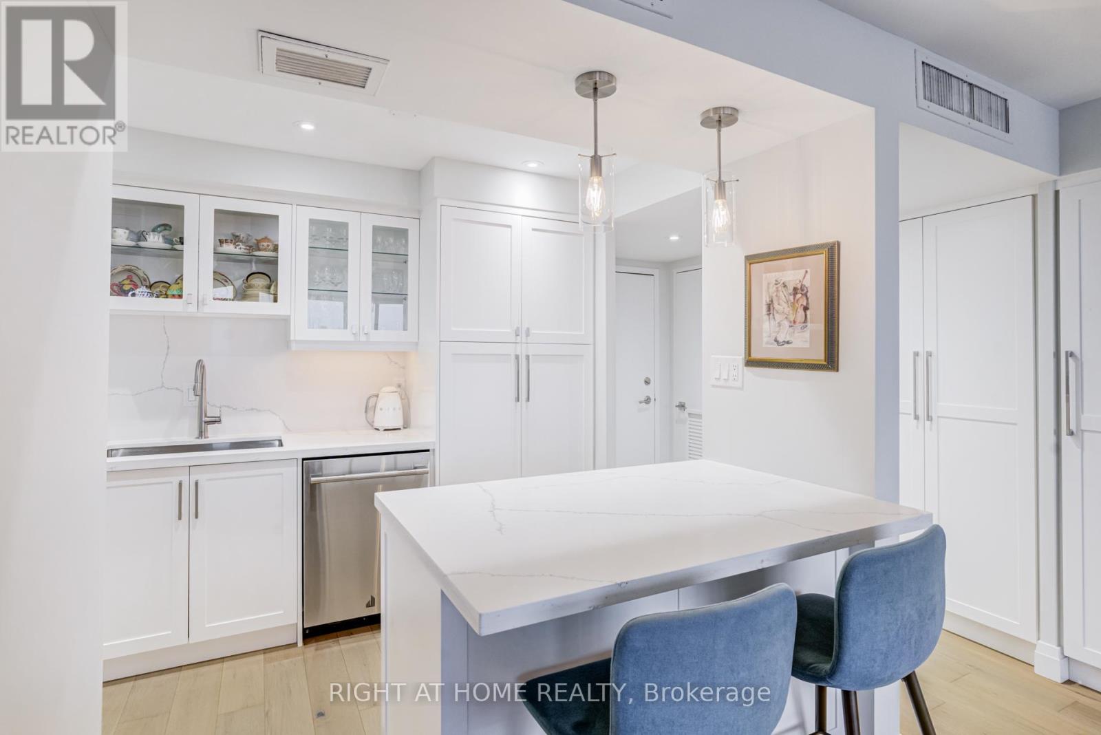 Welcome to this beautifully renovated 1-bedroom, 1-bath condo in the highly sought-after Applewood community. Offering a bright, modern aesthetic and a functional open-concept layout, this suite has been thoughtfully updated from top to bottom. Hardwood floors flow throughout the unit, complemented by pot lights and an abundance of natural light from large windows in the living and dining area. The contemporary kitchen is designed for both style and function, featuring quartz countertops, stainless steel appliances, a centre island with eat-in area, and ample storage space. The open-concept living and dining room creates a seamless space for relaxing or entertaining, with a walk-out to a private balcony. The spacious bedroom offers large windows, pot lights, and a generous walk-in closet with plenty of storage. A sleek and modern 4-piece bathroom completes the suite. Residents enjoy exceptional amenities including a tennis court, fully equipped gym, indoor pool, hot tub, rooftop sundeck, 24-hour concierge, same-floor laundry, and even a convenience store located within the building. Ideally situated close to parks, schools, shopping, major highways, and steps to transit - this is urban living at its finest in a prime Mississauga location. (id:4555)