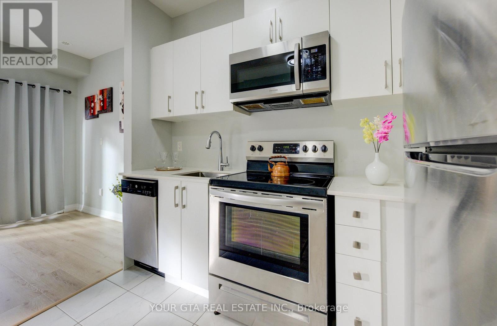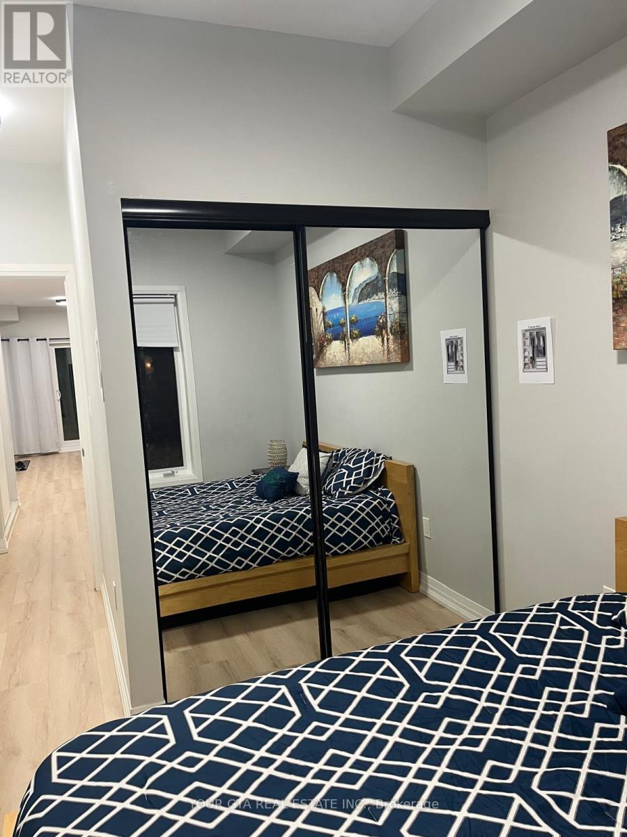 This beautifully updated stacked townhouse offers a perfect blend of comfort and convenience, ideal for modern living. Located on the main level (not basement), this home features: One spacious bedroom with a custom closet for ample storage, One modern bathroom with stylish fixtures - LED mirror and organizer, Open-concept living area providing plenty of space for a dining table and relaxing living room setup, 9-foot ceilings, enhancing the feeling of openness, Balcony perfect for relaxing in the summer, equipped with an all-season mat for year-round use, Upgraded flooring throughout, offering a fresh, clean look. The primary bedroom comes with custom closet storage, new glass doors, and blackout blinds for optimal privacy and light control. location is ideal Walking distance to Clarkson GO Station, offering easy access to Union Station and multiple other transit options, Only 3.6 km to Lakeside Park, providing stunning views of Lake Ontario. Close to walking trails, parks, and local amenities such as restaurants, grocery stores, and more. Quick access to major highways. This townhouse offers a great combination of easy access to public transit, scenic surroundings, and modern updates-making it the perfect home for anyone looking for a stylish, low-maintenance lifestyle in a prime location. One parking and one locker included in the lease price. (id:4555)