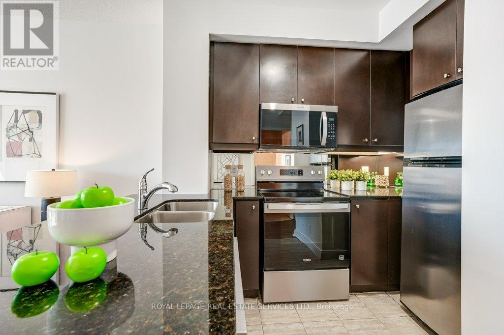 Welcome to the iconic "Marilyn Monroe" buildings in the heart of downtown Mississauga. This beautifully renovated unit has been refreshed from top to bottom and is completely move-in ready.Step inside to discover nine-foot ceilings, brand-new Luxury Vinyl Plank flooring and a freshly painted interior that gives the entire space a bright, modern feel. The updated kitchen features granite countertops, a mirrored backsplash, and stainless steel appliances, including a new range, new dishwasher, and new built-in microwave, making everyday cooking both stylish and convenient.Enjoy a naturally bright, open, and comfortable living space that extends to a generous 95 sq ft private balcony, where you can take in stunning south-facing city views, including the CN Tower in the distance. The spacious bedroom also features its own walk-out to the balcony, creating a seamless indoor-outdoor feel and a perfect spot to start or end your day. The well-appointed 4-piece main bathroom has been updated with a new vanity cabinet.Additional features include in-suite laundry, 1 underground parking space (Level 5 #48), and 1 locker (Level 5 #63).Located in one of Mississauga's most recognizable buildings, residents enjoy an unbeatable location just minutes from shopping, dining, transit, and major highways. Exceptional amenities include an indoor/outdoor pool, hot tub, guest suite, gym, 50th-floor lounge, and concierge/security service.Whether you're a first-time buyer, investor, or downsizer, this refreshed suite offers style, convenience, and incredible skyline views in one of the city's most sought-after addresses. (id:4555)