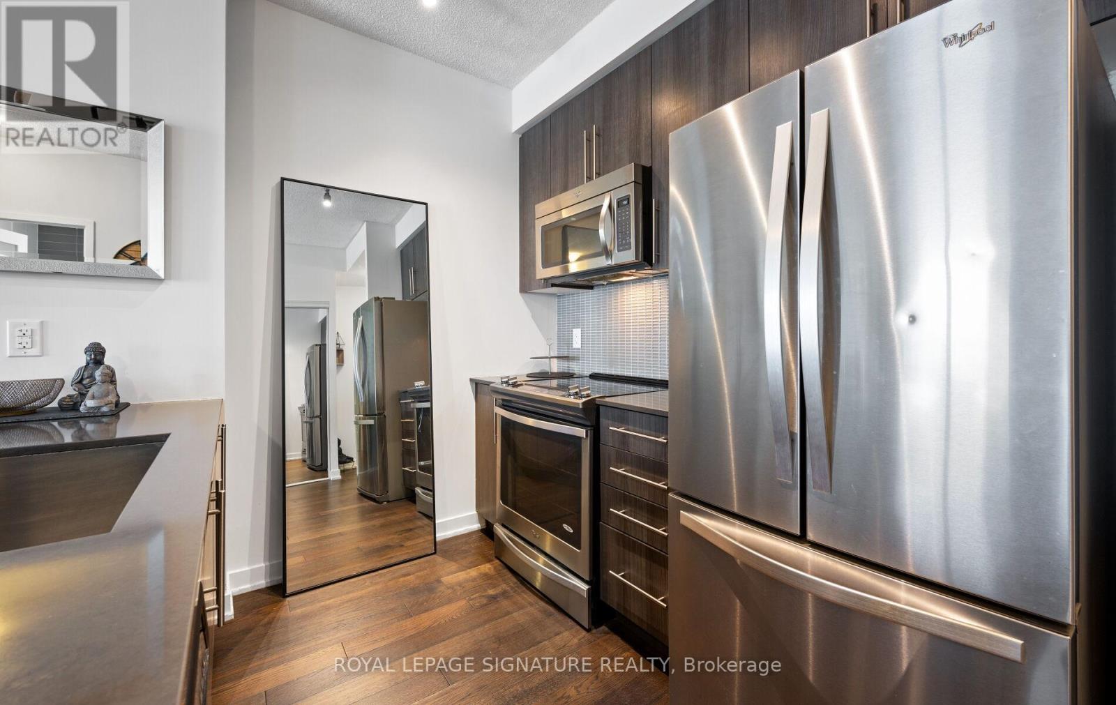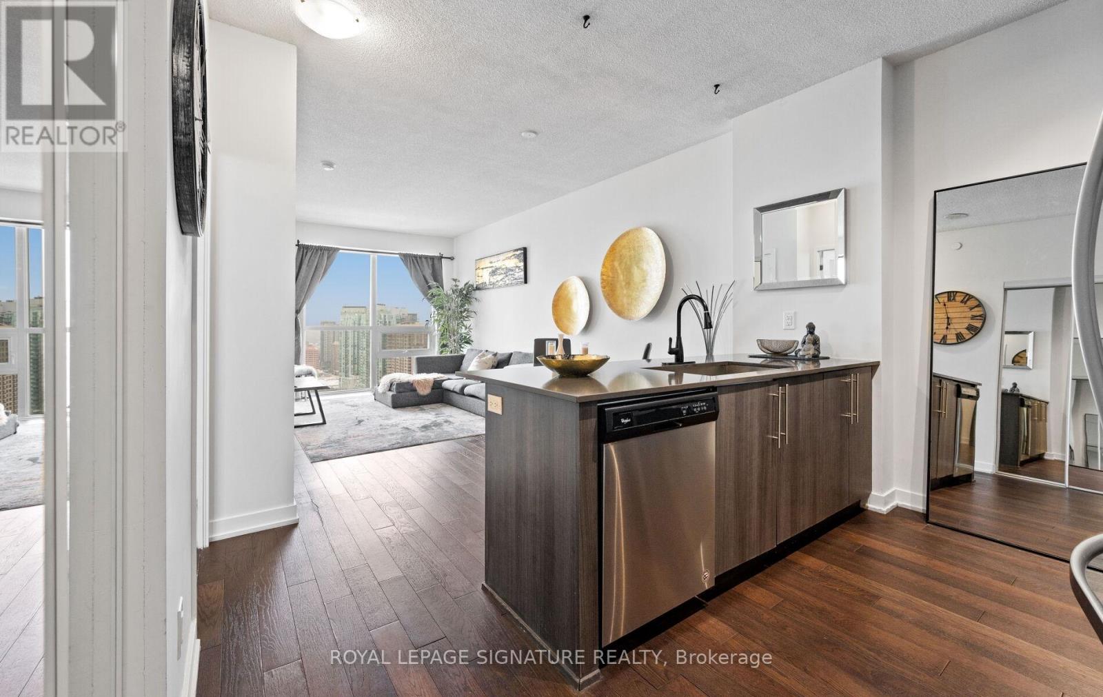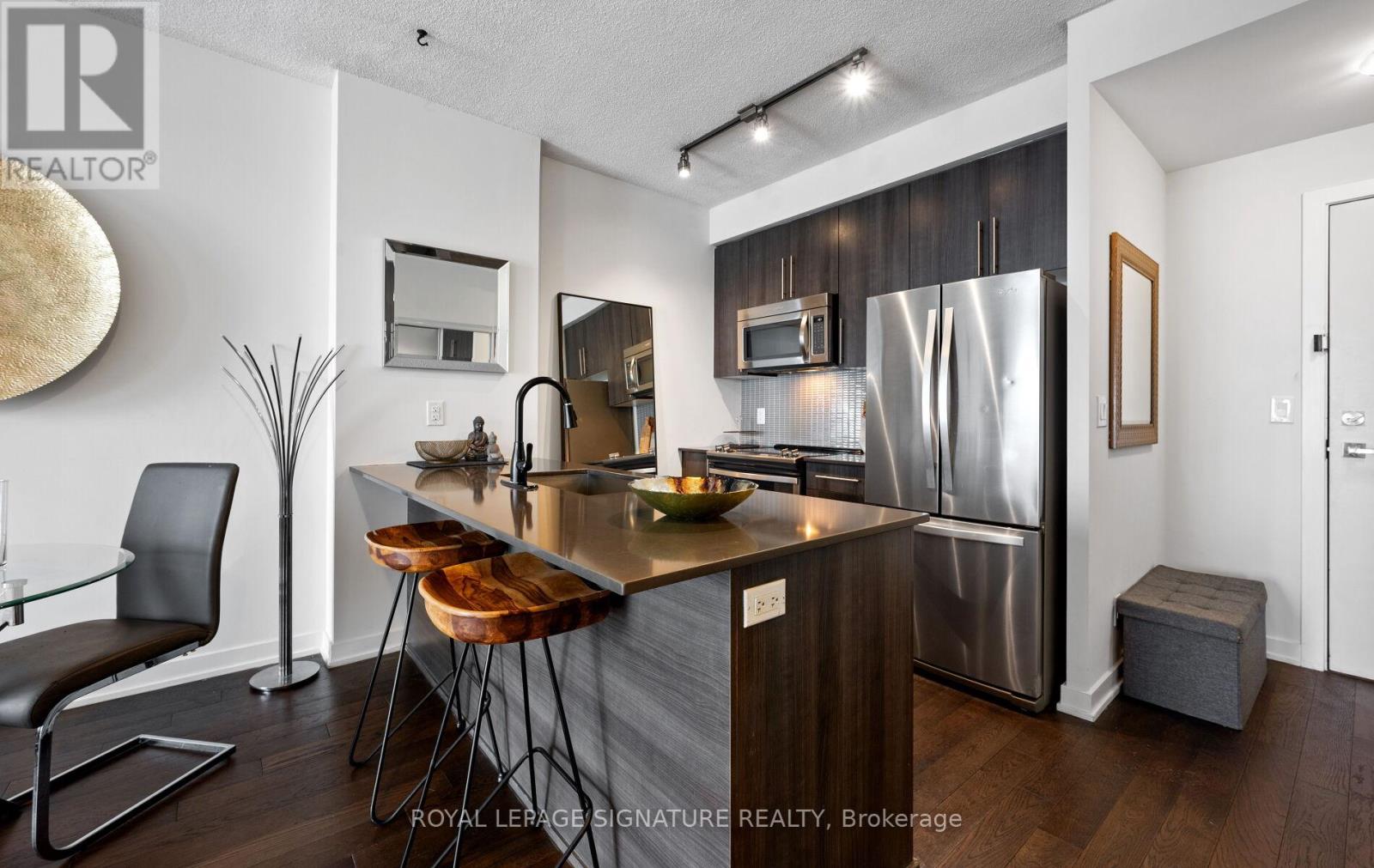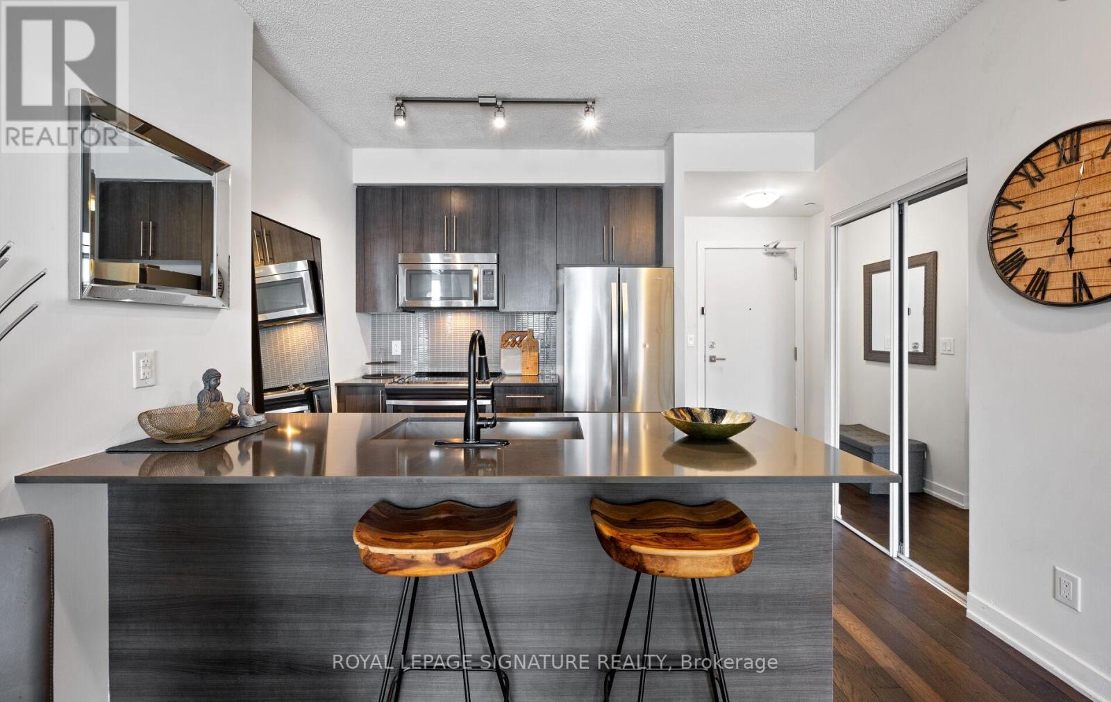Welcome to the "Posh Style Vibe" PSV2 condos located in Mississauga's vibrant downtown core. Live a care free condo lifestyle in this beautiful 1 bedroom. The airy, open-concept living space offers 9' ceilings, engineered wood flooring, expansive windows with a fantastic view of Celebration Square. The kitchen features sleek cabinetry, stainless steel appliances and modern countertops with breakfast bar-ideal for everyday dining. Unwind after a long day of work on your private balcony. Well maintained by Original Owner. Residents enjoy access to incredible amenities including an indoor pool, gym, theater room, library, 24 hour concierge and much more. Step outside your door to Starbucks, great dining, transit and all your everyday conveniences. Close to Square One, Sheridan College, Celebration Square, Food Basics, No Frills, Transit, Highways, Future LRT. Ideal opportunity for First Time Buyers, Professionals or Savvy Investors. Don't miss out on this gem! (id:4555)
