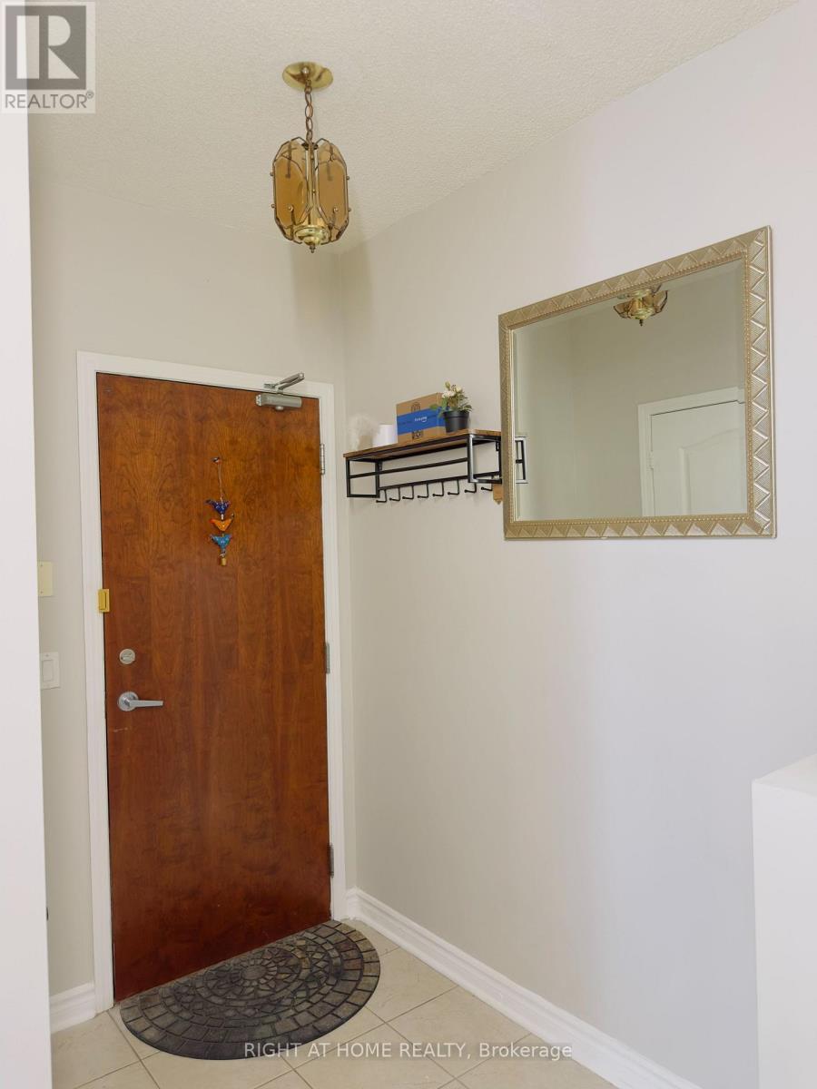 Discover the perfect blend of comfort and style in this stunning 1 Bedroom + Den condo with soaring 9-foot ceilings with pot lights. The open-concept layout features a bright and spacious living room complete with a custom stone accent wall and a cozy fireplace ideal for relaxing evenings. The modern kitchen boasts sleek finishes and a custom stone breakfast bar, perfect for morning coffee or casual meals. Step out onto your private balcony and take in sweeping views of the city skyline and breathtaking sunsets. Located just minutes from Hwy 403, Square One Mall, the GO Station, and Mississauga City Centre, you'll also benefit from the convenience of the upcoming Hurontario LRT right around the corner. Daily errands are a breeze with Walmart, Food Basics, Rabba, YMCA, and countless dining options all nearby. Residents also enjoy access to fantastic building amenities, and as an added bonus, the condos exterior corridors are currently being refreshed with elegant new floor tiles and modern wallpaper enhancing both aesthetic appeal and long-term value. This is city living at its best! (id:4555)