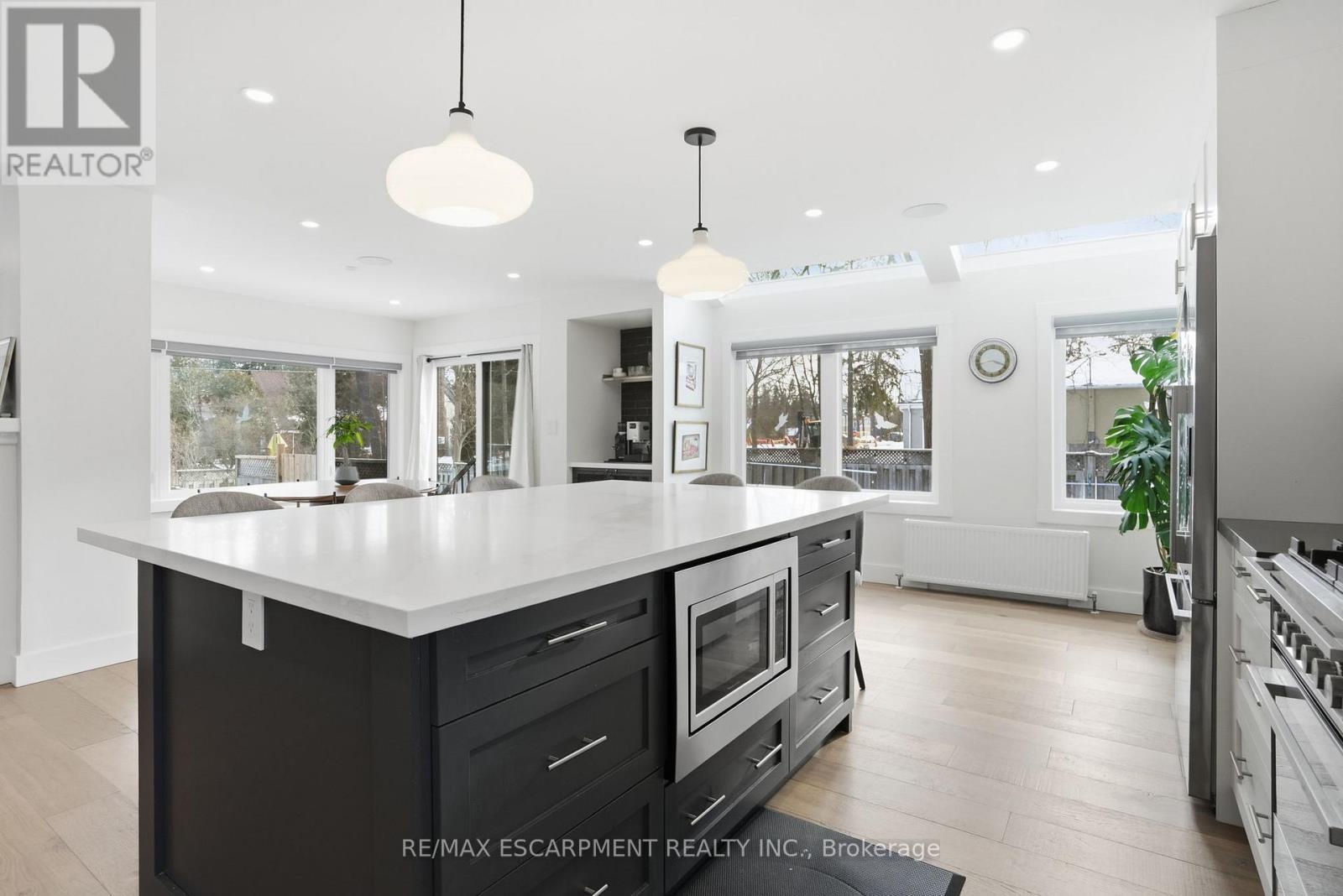 Step inside a residence where modern design and Craftsman inspired detailing come together in perfect balance. Thoughtfully finished and designed for both elevated entertaining and everyday comfort, this home blends architectural character with contemporary refinement. At its heart, the chef inspired kitchen features quartz countertops, a contrasting waterfall island with seating, skylights that flood the space with natural light, premium appliances, and seamless flow into the surrounding living areas. It is a space designed not only for cooking, but for gathering. The family room showcases a custom board and batten accent wall, integrated Klipsch sound system, and expansive sliding doors that create effortless indoor outdoor connection. The adjoining living room is anchored by a detailed wood burning fireplace, adding warmth and depth. Upstairs, solid wood doors and tailored finishes continue throughout. The primary suite offers a calm retreat with decorative wall mouldings, sconces, generous windows, a spacious walk in closet, and a spa inspired ensuite featuring a standalone soaking tub, rain shower, and quartz vanity. Additional bedrooms are bright and well proportioned, complemented by a beautifully finished main bath and organized laundry room with quartz counters and custom cabinetry. The fully finished lower level extends the living space with luxury vinyl flooring, a brick fireplace, recessed lighting, and flexible recreation space. Outdoors, the fully fenced backyard features a generous entertaining patio and an impressive 18 by 36 pool with true resort scale presence. Major 2024 mechanical upgrades include enhanced plumbing and electrical, a Viessmann boiler, upgraded ventilation, and hardwired Ethernet throughout. (id:4555)