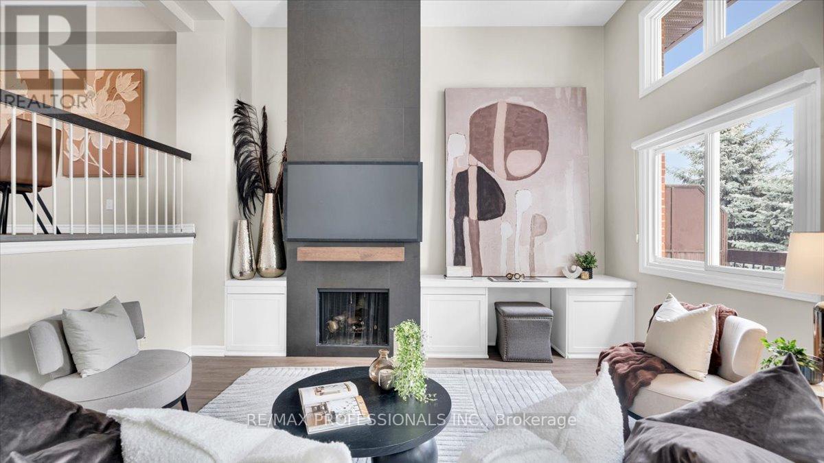 Superb townhome in Rockwood Village, Mississauga. Comfort, convenience, and exceptional value with 2,045 sqft of renovated living space throughout 4 floors. New flooring throughout with renovated main floor powder room. Updated interior dining light fixtures and new exterior sconces. Hard to find walk out to private rear deck with gardens and bbq area. Main floor offers walkout to bonus outdoor space with a large garden facing balcony. Awesome entertaining space includes open concept kitchen, eat in breakfast area + dining space that overlooks the living area with soaring ceilings. Cozy up to the real wood burning fireplace with built in workstation & library. 3 generous sized upper level bedrooms with primary ensuite and separate 3 piece bathroom. Extra large laundry room with additional fridge. 1 car garage, AAA+ location close to great schools, transit, airport and minutes to west Toronto! (id:4555)