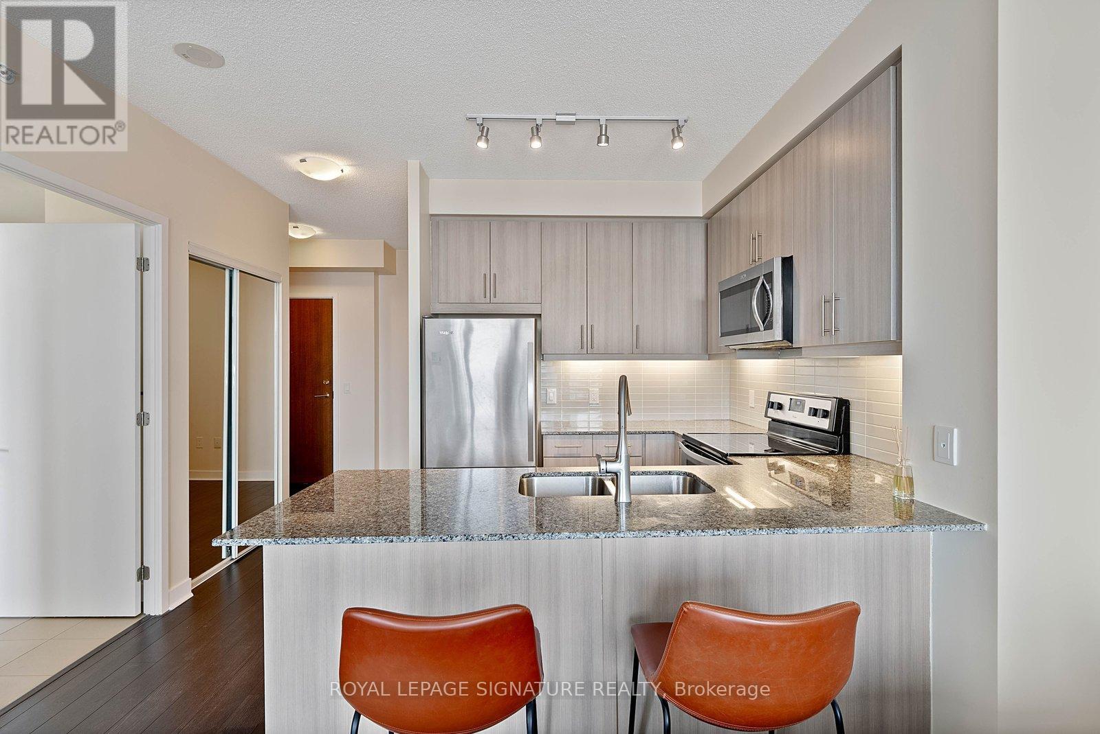 Spacious and sun-filled One-Bedroom + Den with parking and locker in the sought-after Grand Park Condos - located conveniently just off of Burnhamthorpe Road in Mississauga's city centre. This unit features 9-ft ceilings, an efficient floor plan of670-sf in total, and a spacious kitchen with full-size S/S appliances and island with breakfast bar, Enjoy unobstructed east city views during the day and bright city light at night. The building offer fantastic amenities which include an exercise room, indoor pool, guest suites, and party and dining rooms, plus an outdoor terrace with BBQ and more. An incredibly convenient location with everything at your doorstep! Steps, literally, to transit, parks, Shoppers, Winners, Starbucks, restaurants, and T&T Supermarket. Just minutes to Square One Shopping Centre, Whole Foods, University of Toronto Mississauga, Sheridan College, libraries, Celebration Square, YMCA, Living Arts Centre, GO Transit, and Highways 401/403/QEW. A versatile unit suitable for first-time buyers and investors. Be a part of this vibrant community! (id:4555)