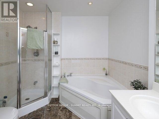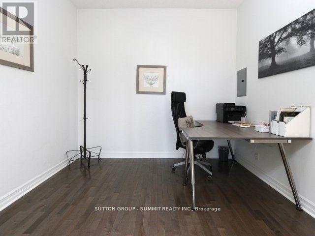 Stunning Penthouse w/10 Foot Ceilings and panoramic City Views! Very spacious Living/Dining Room Perfect for Entertaining. Large Modern Eat-In Kitchen features elegant white cabinets, pantry, Island, Granite Counters. Master features a 5pc Ensuite, Large W/I Closet. Good sized Den w/ French doors. Hardwood Floors. Electric Fireplace with Mantle. Additional 3pc Bathroom w/ Large Shower Marble Counters. Actual Builders Model Suite! Additional Parking spot available for rent. (id:4555)