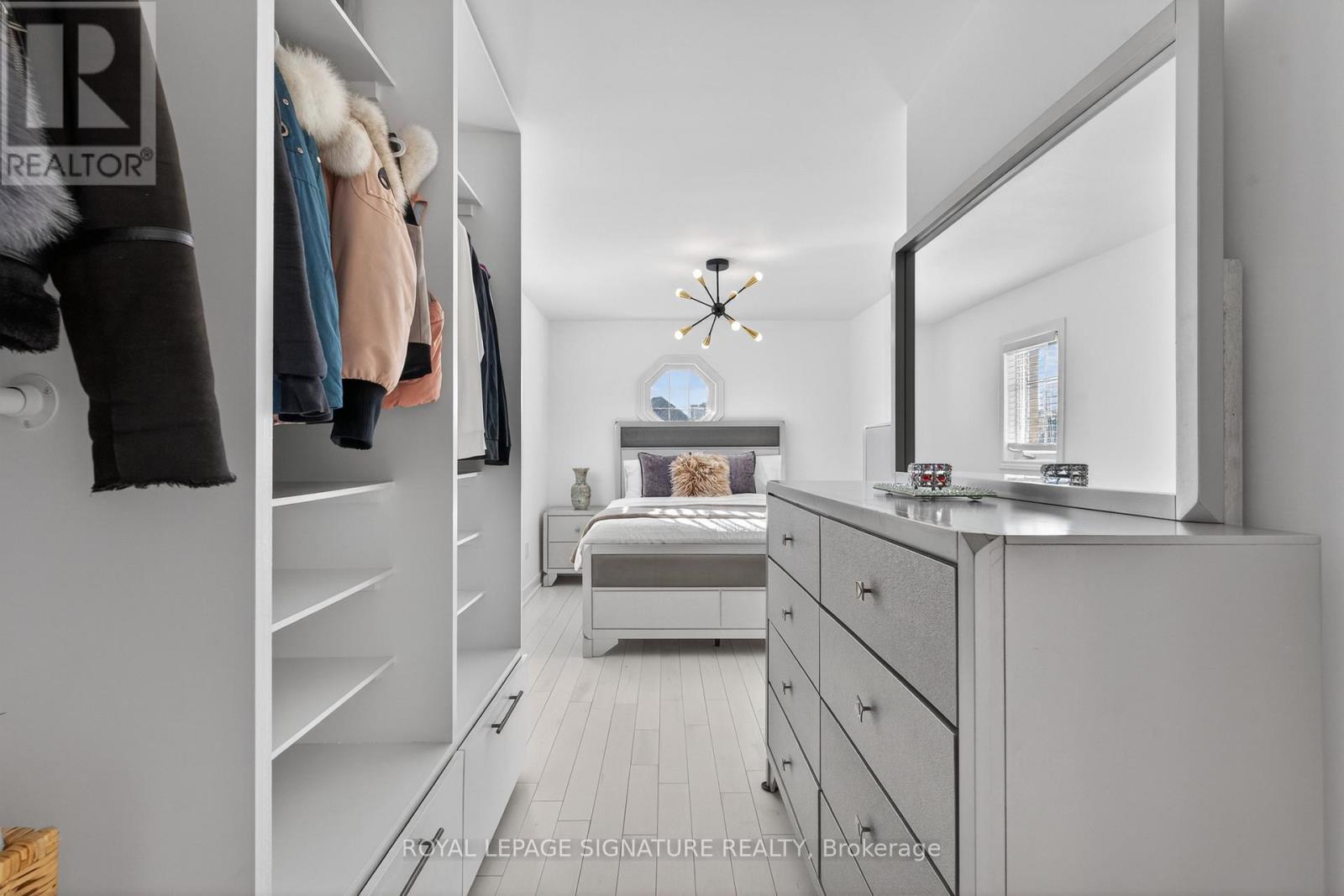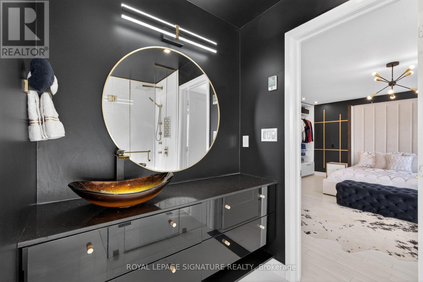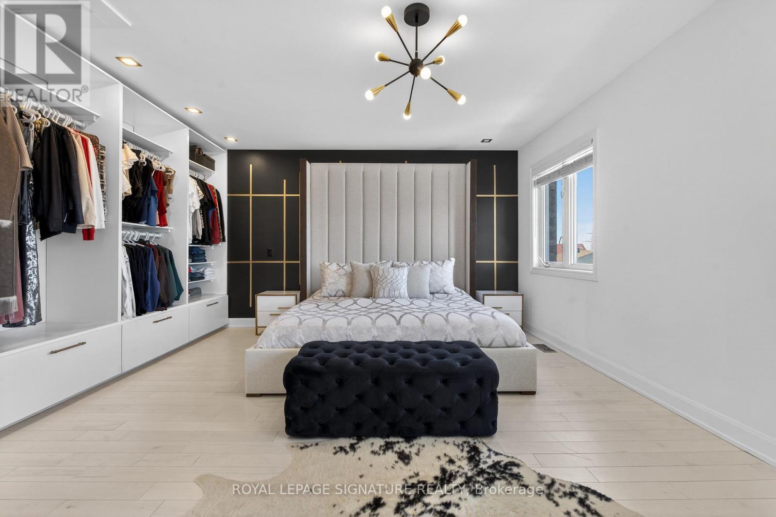 Completely reimagined and meticulously renovated to the highest standards, this exceptional two-storey home stands apart with premium finishes and striking design throughout. A stunning brick and stone façade and lifetime metal roof create impressive curb appeal. Inside, custom engineered hardwood flooring flows throughout the open concept main floor, complemented by multi-tiered tray ceilings with integrated cove LED lighting creating a warm and luxurious ambiance. A stunning two-way fireplace elegantly separates the dining room from the family room. The designer kitchen is a true showpiece, featuring custom cabinetry, a spectacular waterfall centre island, and quartz countertops with a seamless quartz backsplash. The breathtaking living room offers majestic 14-ft ceilings, massive windows, and a custom floor-to-ceiling feature with a sleek, modern fireplace. Ascending to the second floor, you'll be impressed by the striking quartz staircase with offset glass railings, an architectural feature that adds a modern gallery-like feel. The primary retreat is a private sanctuary, complete with wall-to-wall custom closets with built-in organizers and a spa-inspired ensuite featuring a freestanding soaking tub, smart toilet, custom vanity, and curbless glass shower. Three additional spacious bedrooms offer large windows and ample closet space, complemented by a stylish shared bath with quartz vanity, and curbless glass shower. The basement continues the home's theme of refined luxury with a bright, main-floor feel thanks to large windows and walk-out to the backyard patio! This level features a spacious rec room with a sleek fireplace, a second full kitchen with quartz counters, a full bathroom with a standing shower with body spray system, and one large bedroom-ideal for extended living or potential rental income. The main floor also offers direct access to the garage and a spacious laundry room, perfectly designed to function as a practical mudroom. (id:4555)