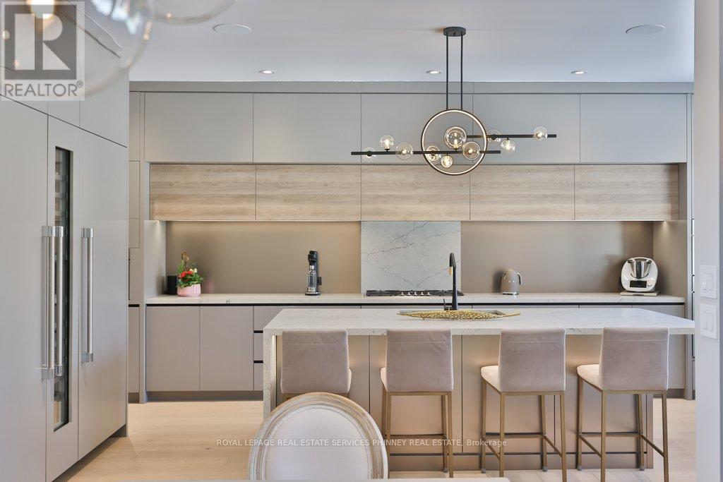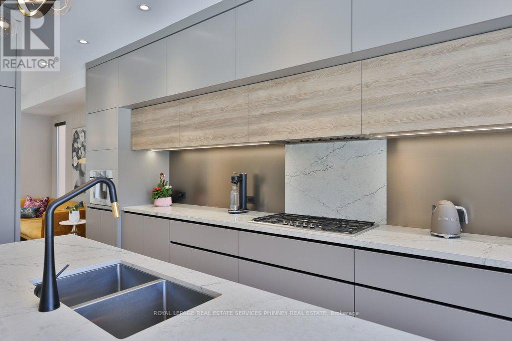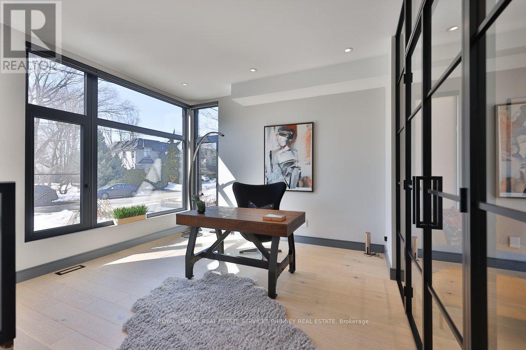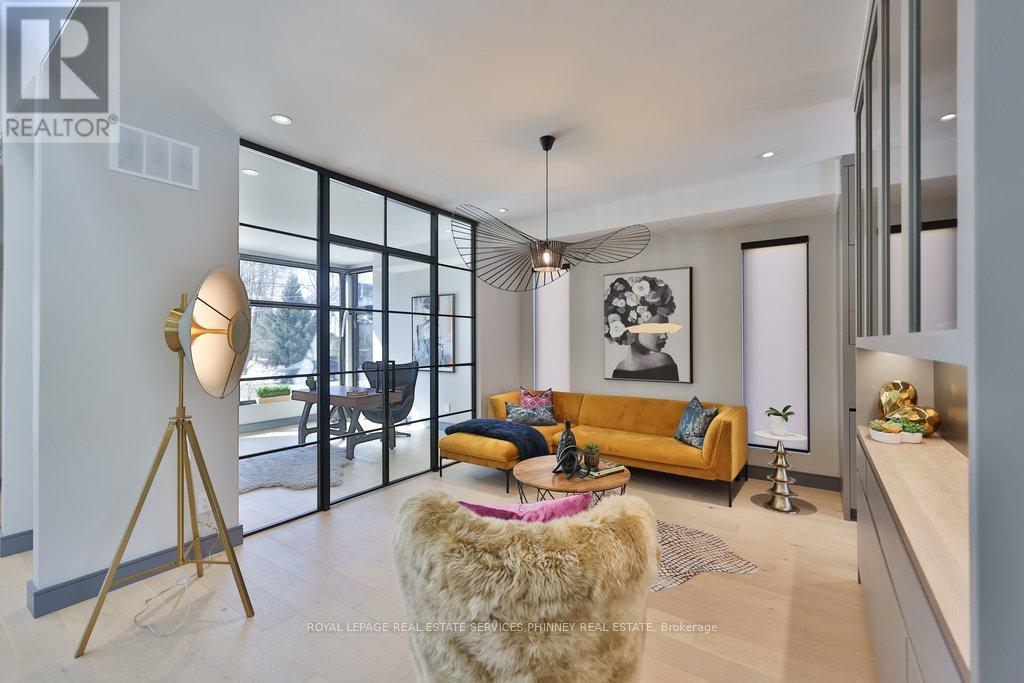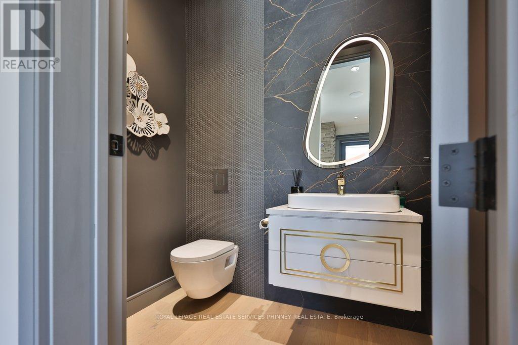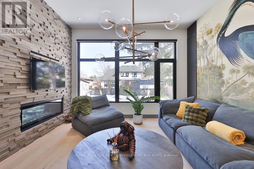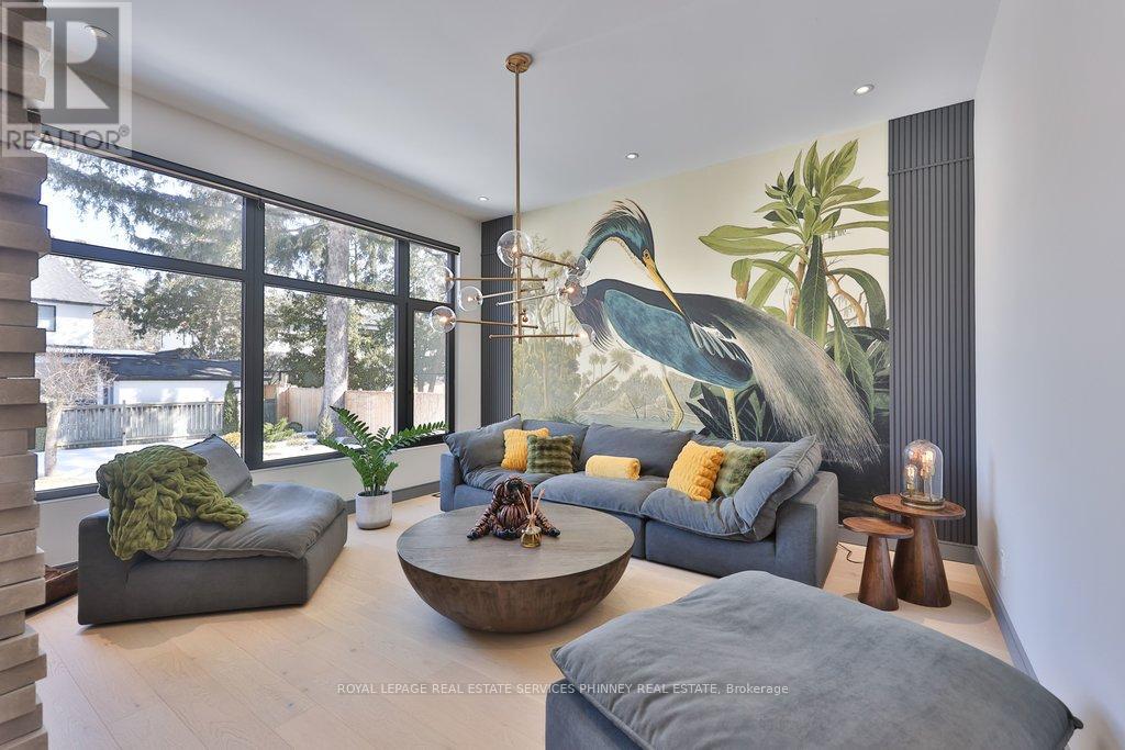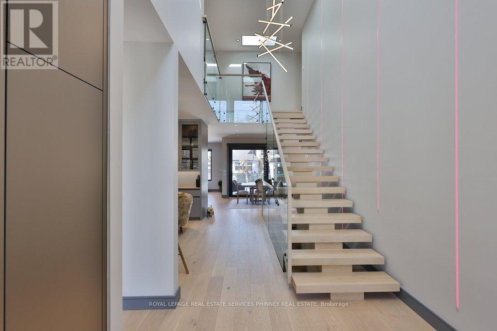 This exceptional, custom-built residence in highly sought-after Mineola masterfully blends functionality and luxurious finishes. Offering approximately 5,750 sq. ft. of total living space, the home has been thoughtfully crafted with attention to detail and superior finishes. The main level presents expansive principal rooms, ideal for both everyday living and elegant entertaining. At the heart of the home is a Millworx gourmet kitchen, appointed with top-of-the-line appliances and a striking aesthetic appeal. The upper level features a primary retreat with a 5-piece ensuite and a private balcony, and three additional generously sized bedrooms, each complete with their own ensuites - the children or guests will not have to share! The upstairs laundry completes this level. The walk-up lower level enhances the home's versatility, boasting heated floors, a spacious recreation room perfect for entertaining, a fifth bedroom for guests, and a full bathroom. There is also a dedicated gym area for daily fitness routines, and a second laundry room for added convenience. Because of the lot's width, the stunning backyard offers a grass/play area, an inground pool, and a dedicated eating patio! On cooler nights, enjoy the double-sided fireplace on the back terrace. Situated with convenient access to the boutiques and restaurants of Port Credit, the harbour, waterfront trails, sailing club, GO Station, and major highways, this remarkable property offers convenience and comfort. (id:4555)
