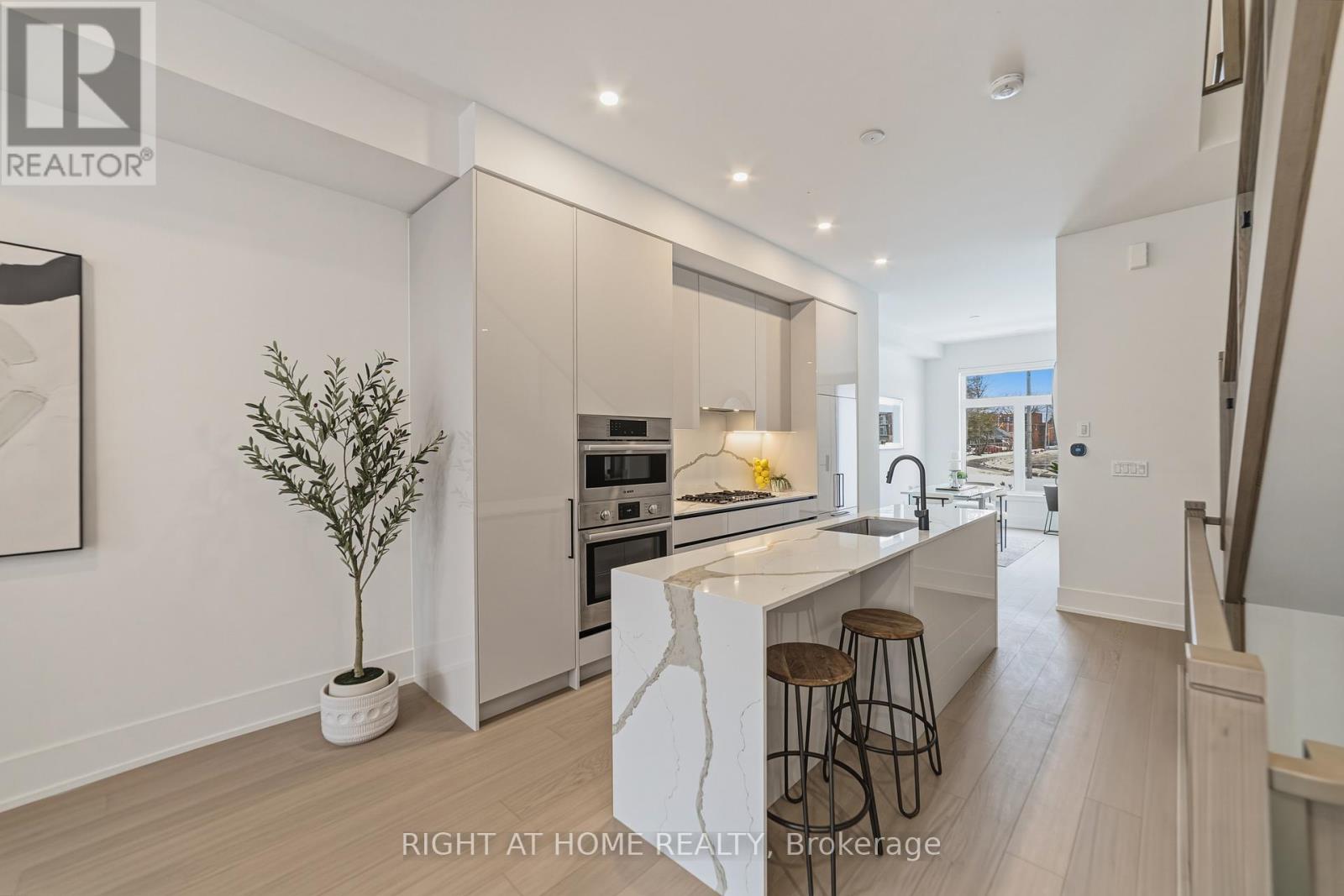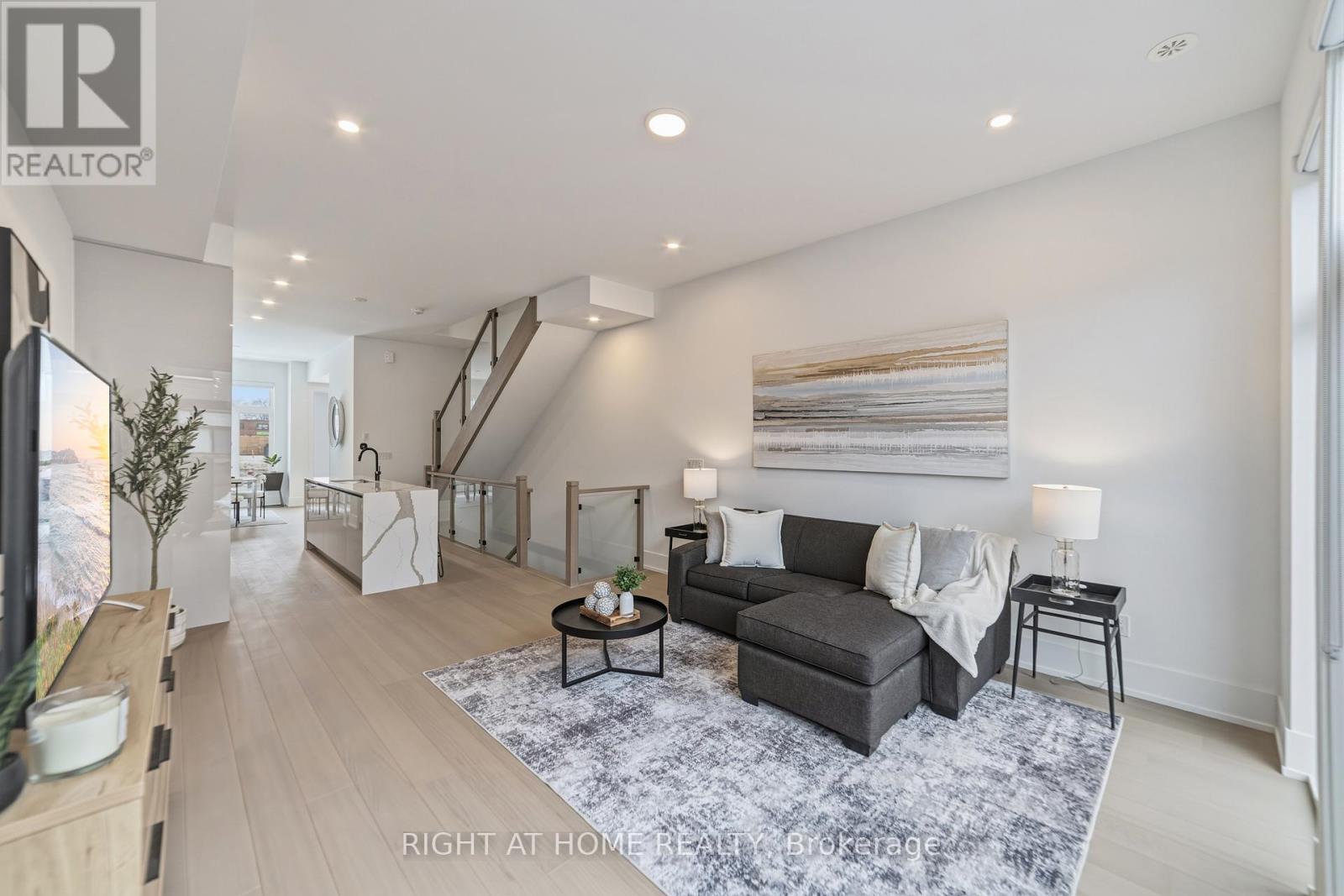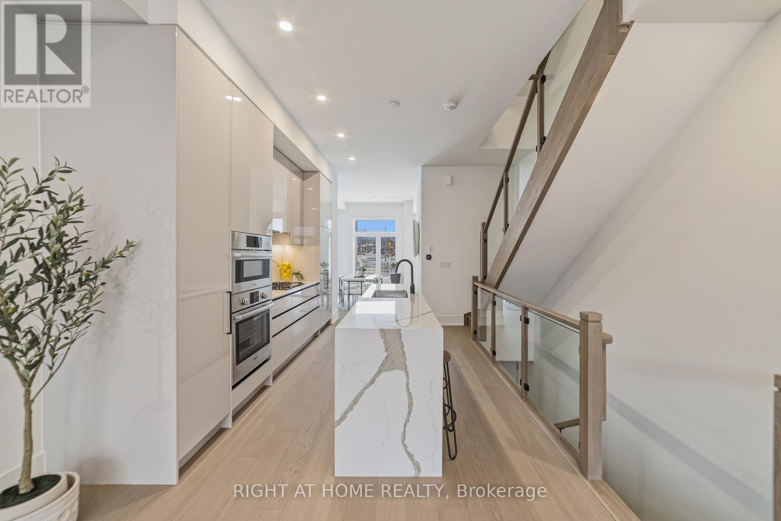 Stunning townhome located in the Brightwater Waterfront Community features a private walk-up and overlooks a large green space, offering enhanced privacy with no direct-facing neighbors. This thoughtfully designed residence showcases 10-ft ceilings on the main level and 9-ft ceilings on the second and third floors, oversized windows, and engineered hardwood flooring throughout, creating a bright and airy living environment. Gourmet kitchen combines style and functionality with premium integrated appliances, including a paneled fridge and dishwasher, a built-in wall oven, and a 5-burner gas cooktop. Quartz countertops with matching backsplash and a striking waterfall island anchor the space. Open-concept living and dining area transitions seamlessly to a spacious outdoor deck and expansive private terrace, perfect for entertaining or everyday enjoyment. Second floor offers two generously sized bedrooms, including one with its own ensuite, a full 4-piece main bath, convenient second-floor laundry. An additional den provides flexibility as a reading room or extra living space. Third floor offers a tranquil primary suite complete with a spa-inspired ensuite. A dedicated home office that opens directly onto a rooftop terrace, ideal space for working from home and enjoying quiet outdoor moments. 3 vehicles via a 2-car tandem garage plus driveway space. An opportunity to be part of the growing Brightwater Port Credit Waterfront Community, a multi-year master-planned neighbourhood featuring acres of open green space, multiple parks, pedestrian-friendly streets, and convenient on-site retail. Residents enjoy an exceptional lakeside lifestyle with walking distance to vibrant downtown Port Credit, waterfront trails, cafés, restaurants, Farm Boy, LCBO, boutique shops, and a resident shuttle to Port Credit GO Station for easy commuting. (id:4555)