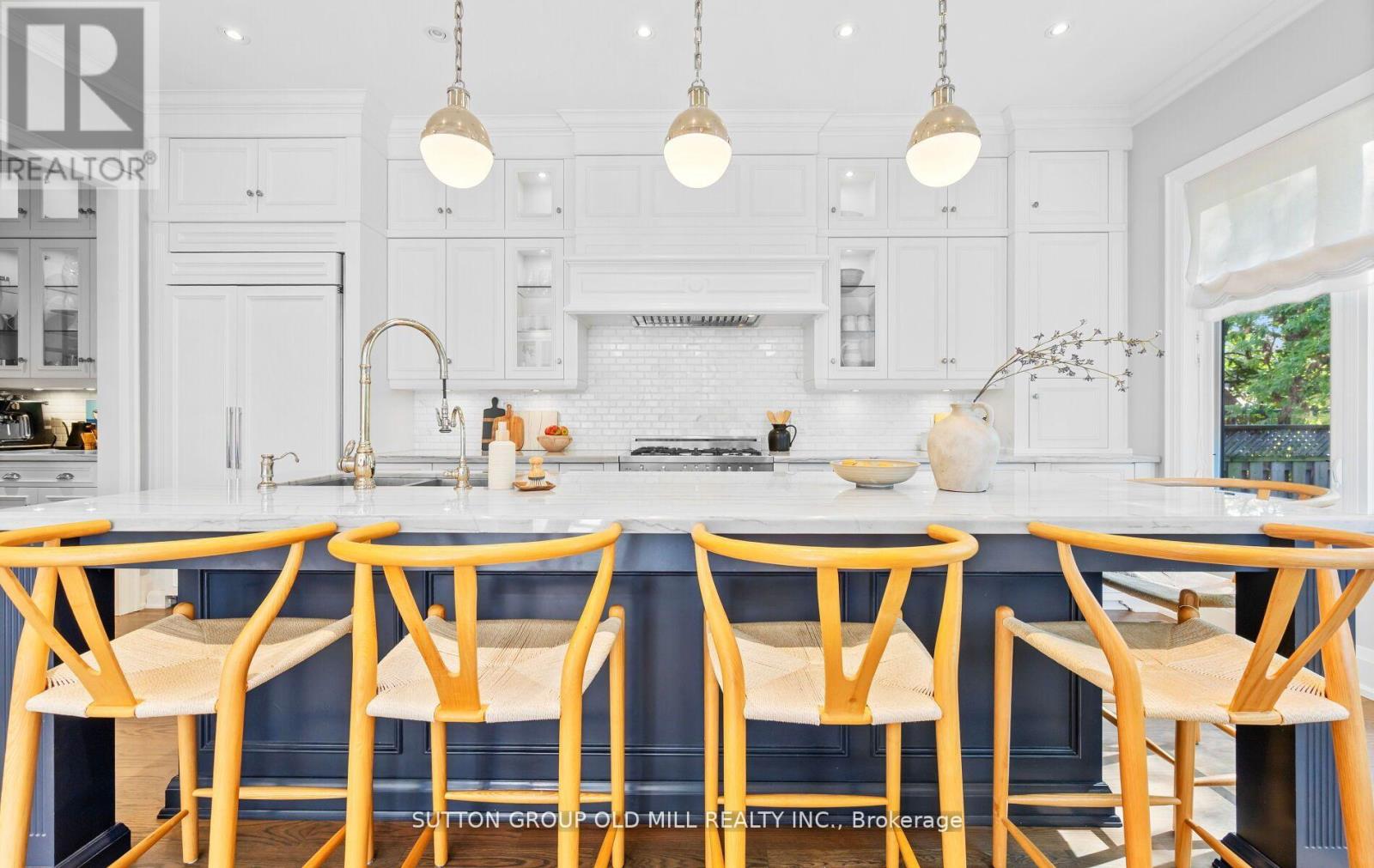 Welcome to Port Credit Village! Nestled in the heart of this vibrant community, this stunning home offers the perfect blend of elegance and convenience. Just a short stroll from the lakefront, parks, shopping restaurants and Mentor College .Downtown is easily accessible with a 10 minute walk to the GO station and close proximity to the QEW, making this an ideal location for commuters. Boasting over 5,700 square feet of elegantly finished living space, this home exudes coastal charm with bespoke upgrades throughout. Every detail has been crafted with exceptional design consultation, ensuring no expense was spared in creating a luxurious living experience.The main floor office has been thoughtfully designed to make working from home a pleasure. With ample windows, custom built-ins, and custom doors, it enhances productivity and comfort, creating a perfect space for remote work. The custom kitchen is a chefs dream, featuring a gas range, oversized fridge, and a spacious walk-in pantry equipped with extra drinks fridges and electrical outlets to accommodate all your countertop appliances.Entertaining is effortless with the Butler's Area, providing ample space and amenities for hosting gatherings. The main level impresses with 10-foot ceilings, while the upper and lower levels feature 9-foot ceilings, creating an open and airy atmosphere that enhances the sense of space.The double garage is equipped with a sleek epoxy floor, wall racking, remotes, and an entrance to the house through the oversized mudroom. With five designer bathrooms, a second-floor laundry room, and hardwood floors throughout, this residence is a must-see, offering so much more than a builder-basic home. With its unique features and prime location, this home promises a lifestyle of comfort and luxury. (id:4555)