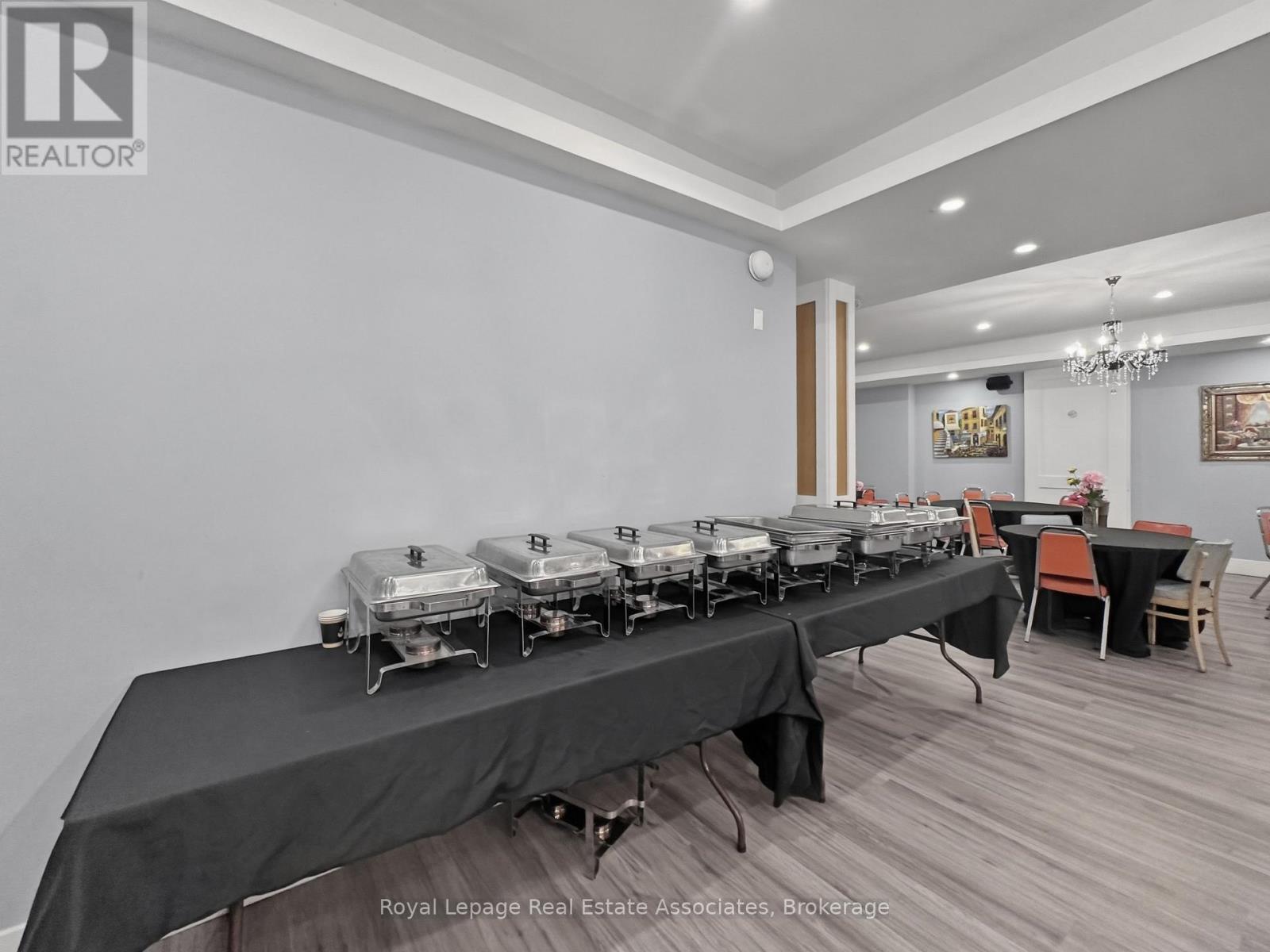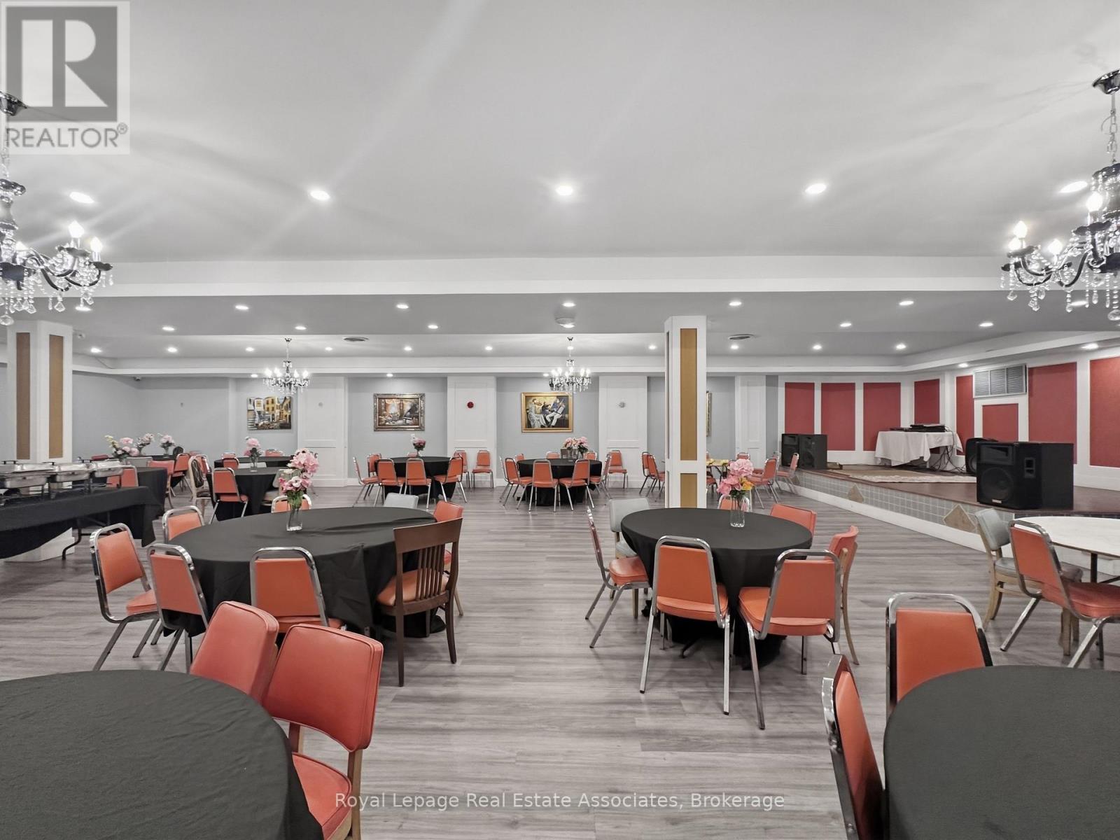 Exceptional opportunity to acquire a beautifully renovated turnkey restaurant located at 1850 Dundas St E in Mississauga. This impressive establishment offers approximately 210 seats in total, featuring an upscale dining area on the upper level with over 90 seats, highlighted by high ceilings, elegant finishes, and custom fireplaces that create a warm and sophisticated atmosphere. The lower level features a spacious banquet hall with seating for approximately 120 guests, ideal for private events, celebrations, and large group dining.Strategically positioned directly on Dundas Street, the property benefits from excellent visibility and strong through traffic. Situated in a busy plaza with ample parking, with only two restaurants in the entire plaza, offering a unique advantage and strong customer draw.The restaurant features a generously sized kitchen suitable for high-volume operations and a variety of cuisines. LLBO license in place, providing an excellent opportunity to expand the dining and event experience.Current rent is $6,624 per month including TMI and tax. A fantastic opportunity for restaurateurs or investors seeking a fully built-out restaurant with banquet capacity in a prime Mississauga location. (id:4555)