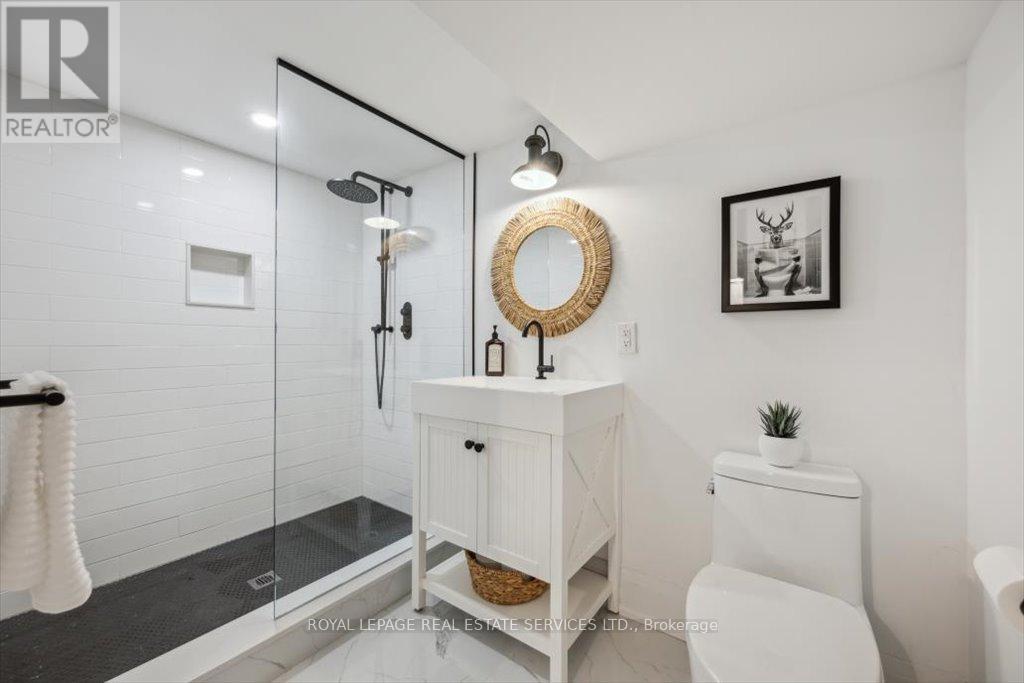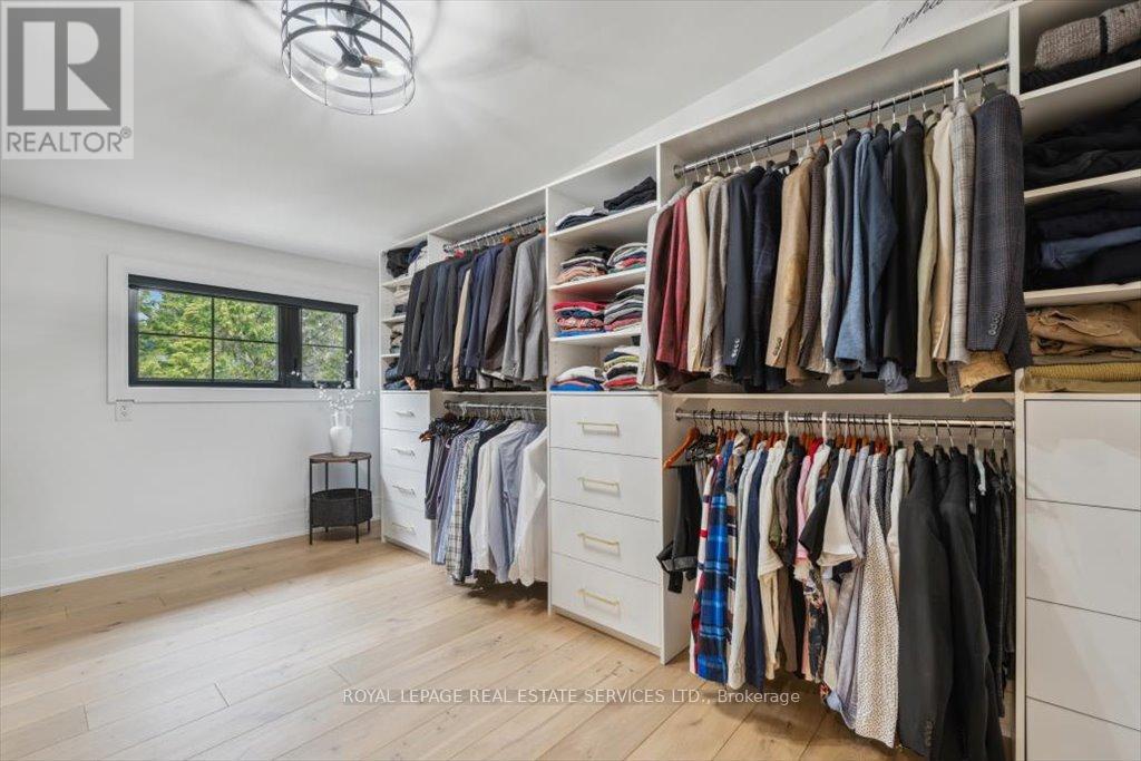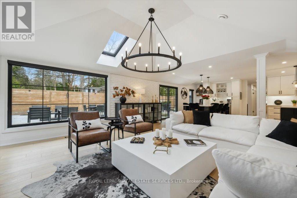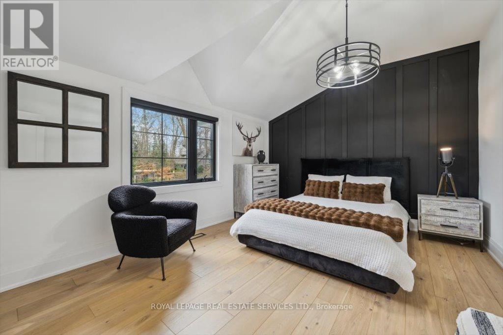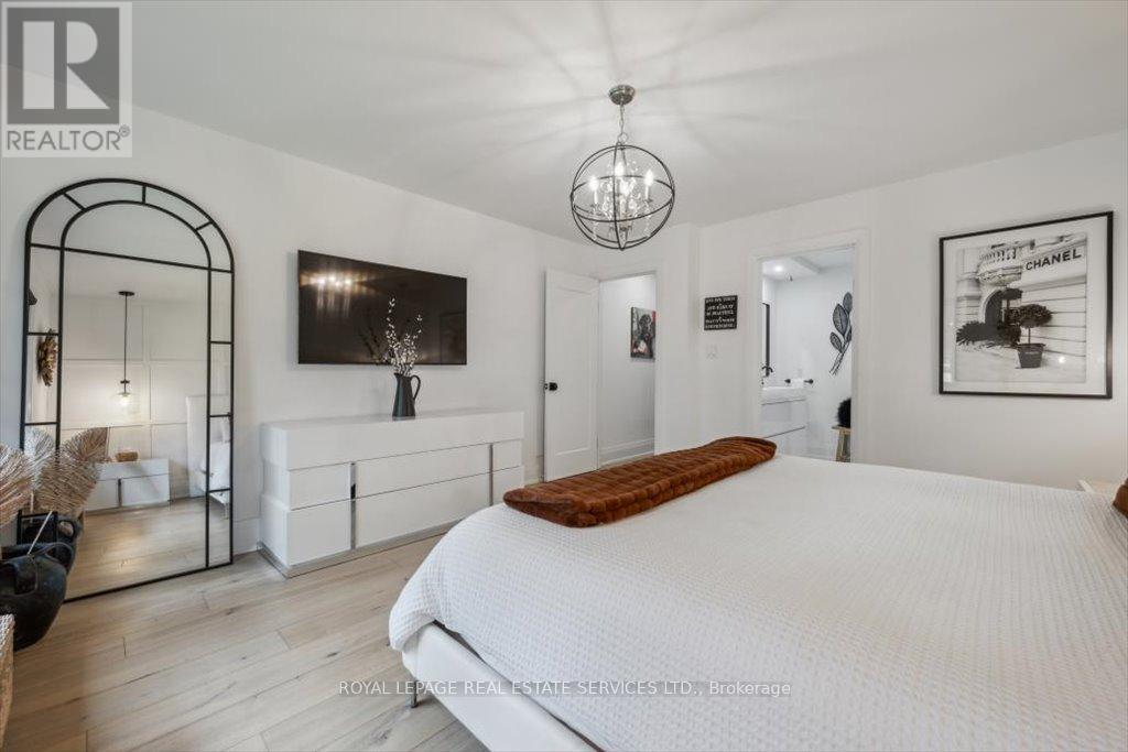 Absolutely gorgeous Modern farmhouse Masterpiece in the heart of Mineola! This charming fully renovated 5 bed 4 bath home nestled on a prestigious 90 x 200 mature lot on a quiet street offers everything you desire. A charming front porch provides for great curb appeal. Enter through the front door into a spacious foyer with custom built in closets & ship lap feature wall. Enjoy entertaining in the expansive sun-filled main level featuring a MAIN FLOOR PRIMARY bedroom with a spa inspired ensuite. Wide plank engineered naked white oak flooring flows throughout, a breathtaking chef's kitchen with custom cabinetry, Wolf 6 burner range, high end stainless steel appliances, quartz counter tops and backsplash, a large prep island and a second island dining table with barstool seating. The kitchen is open to a stunning family room with vaulted ceilings and vented skylights , gas fireplace with floor to ceiling porcelain surround and custom built-ins. Walkout from both kitchen and family room to unwind in a spectacular private, professionally landscaped resort style backyard oasis featuring a concrete salt water pool, large paver patio, fire pit area and lush perennial gardens. Take the solid oak, open riser staircase to the second floor where hardwood flooring continues through 4spacious bedrooms. Bedrooms 2 & 3 feature vaulted ceilings and feature walls. A gorgeous 4piece bath with a custom glass shower completes the second level. The fully finished lower level is designed for comfort and functionality offering a comfy rec room with ship lap feature wall and built-in electric fireplace, wide plank premium vinyl flooring, 3 piece bath, laundry room with custom cabinetry, & a sauna. This extraordinary home blends thoughtful design with top-tier finishes, all in one of Mississauga's most sought-after neighbourhoods. This is more than just a house, it's a meticulously maintained retreat, pride of ownership is obvious. Don't miss the opportunity to make it yours! (id:4555)