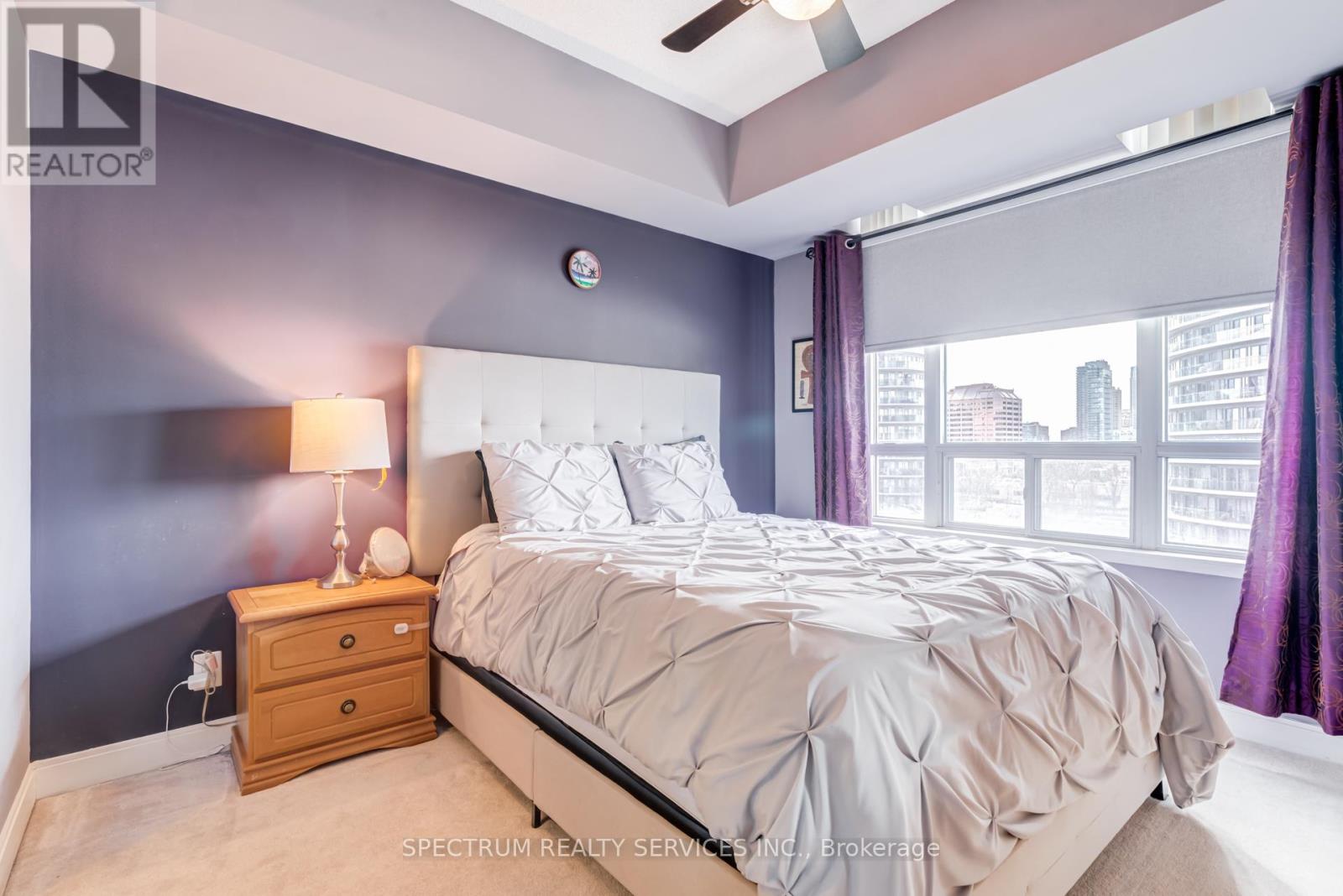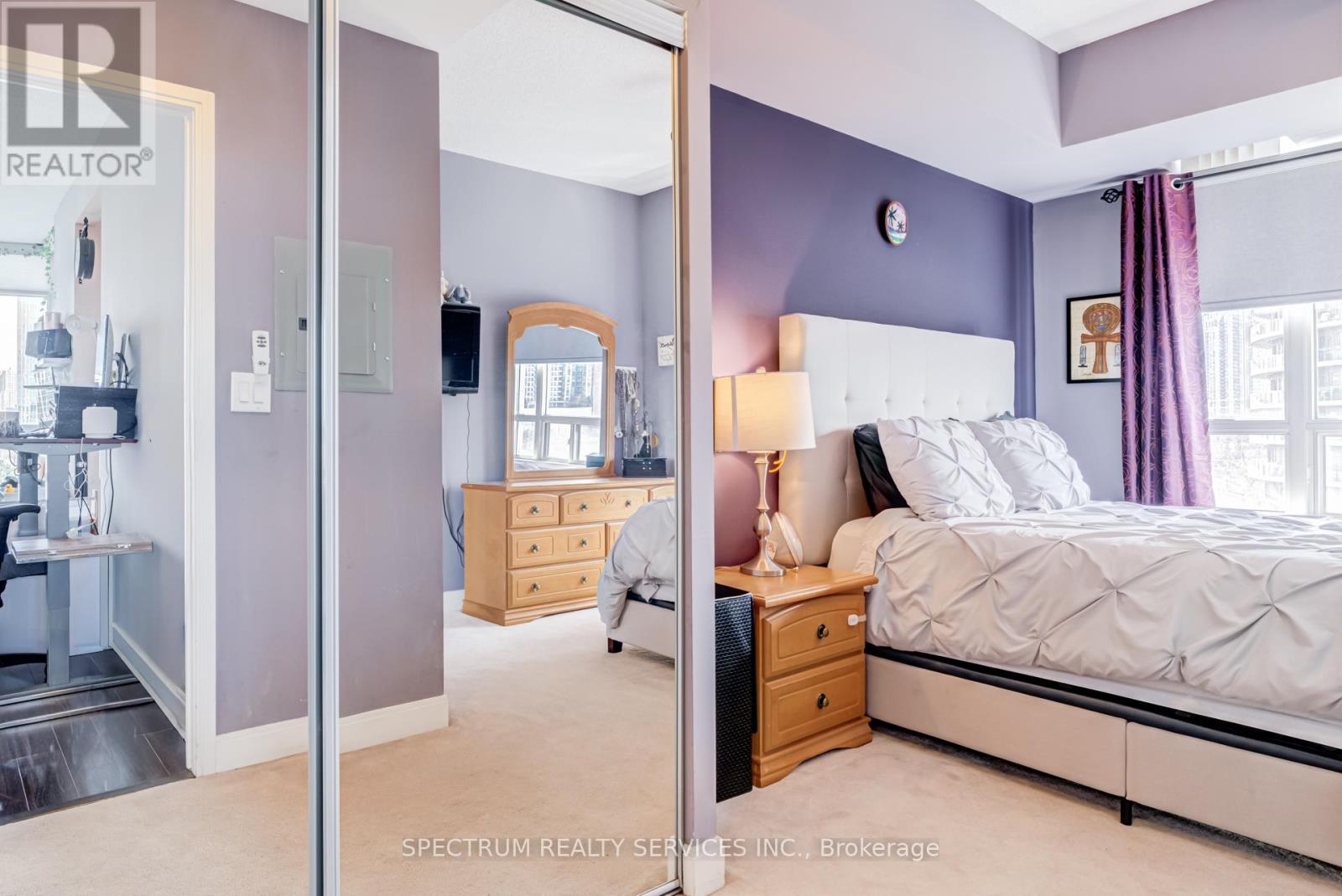 Welcome to Unit 709 at Absolute World Towers, located at 80 Absolute Avenue in the heart of Mississauga's vibrant City Centre. This beautifully maintained 2-bedroom, 2-bathroom suite offers 870 sq. ft. of thoughtfully designed living space and includes 1 parking space and 1 locker for added convenience. The unit features 9-foot ceilings, elegant hardwood flooring, and expansive floor-to-ceiling windows that fill the space with natural light while showcasing clear, unobstructed city views. The functional open-concept layout provides seamless flow between the living, dining, and kitchen areas-ideal for both everyday living and entertaining. The modern kitchen is equipped with stainless steel appliances, ample cabinetry, and generous counter space. The bright living and dining area leads to a private open balcony, perfect for relaxing and enjoying panoramic city views. The primary bedroom features a private ensuite bathroom and generous closet space while the second bedroom offers flexibility for guests or family members. With its efficient layout stylish finishes, this suite is ideal for professionals, couples, first-time buyers, or investors. Residents enjoy access to resort-style amenities at the renowned Absolute Club, offering over 30,000 sq. ft. of recreational facilities, including indoor and outdoor swimming pools, a fully equipped fitness centre, indoor running track, basketball court, squash courts, party and meeting rooms, theatre room, guest suites, 24-hour concierge, and security. Ideally situated just minutes from Square One Shopping Centre, Celebration Square, restaurants, parks, and transit, with quick access to Highway 403, Highway401, and Highway 407. Experience vibrant urban living in one of Mississauga's most iconic condominium communities. (id:4555)