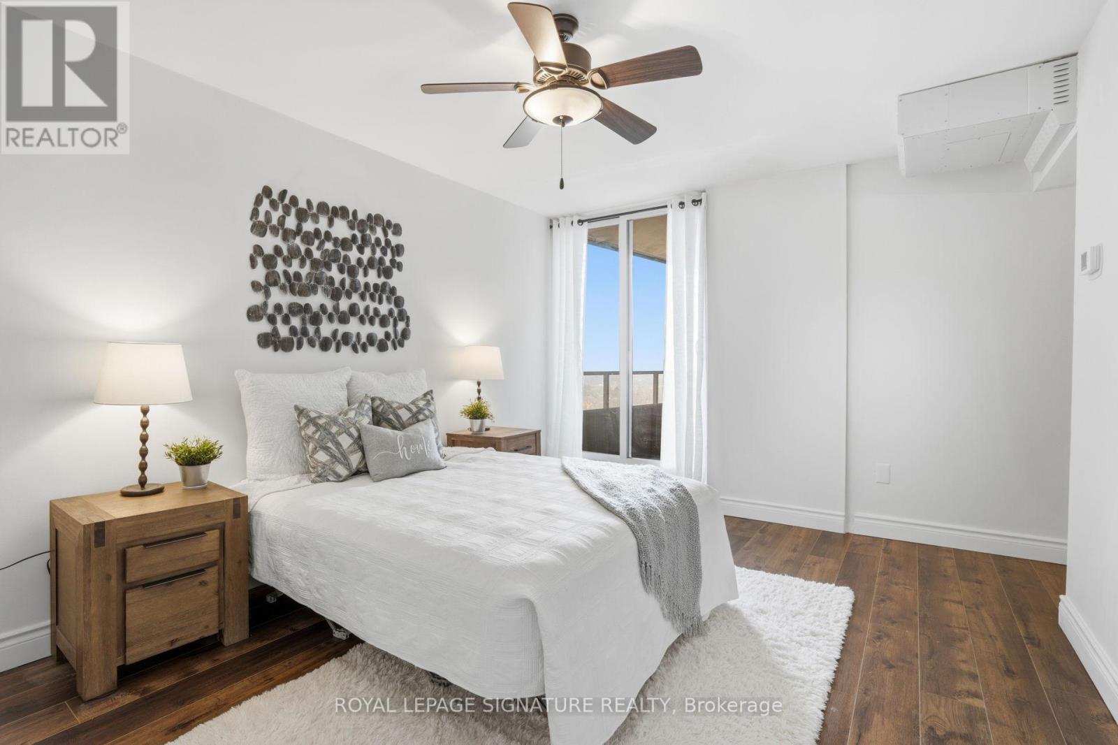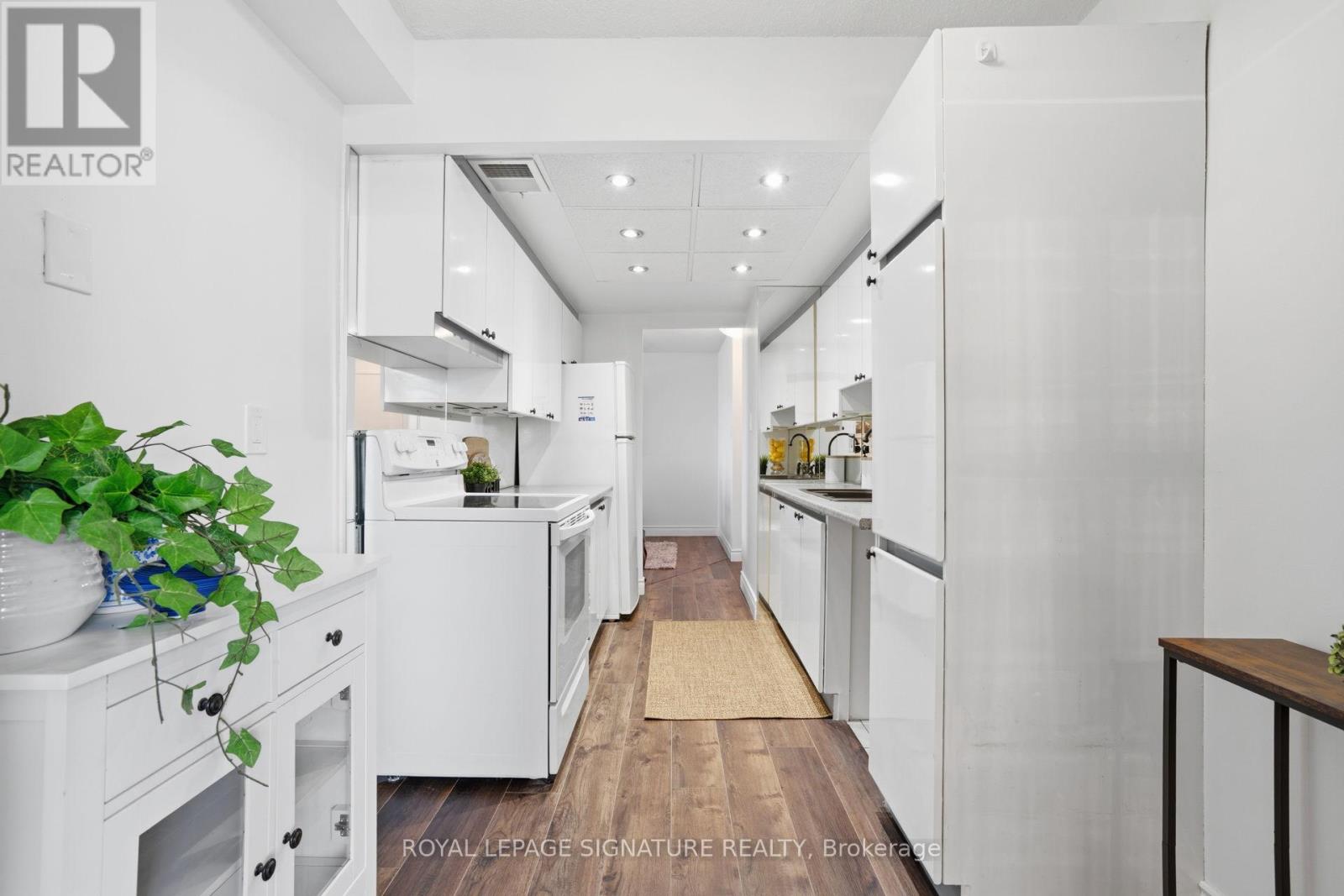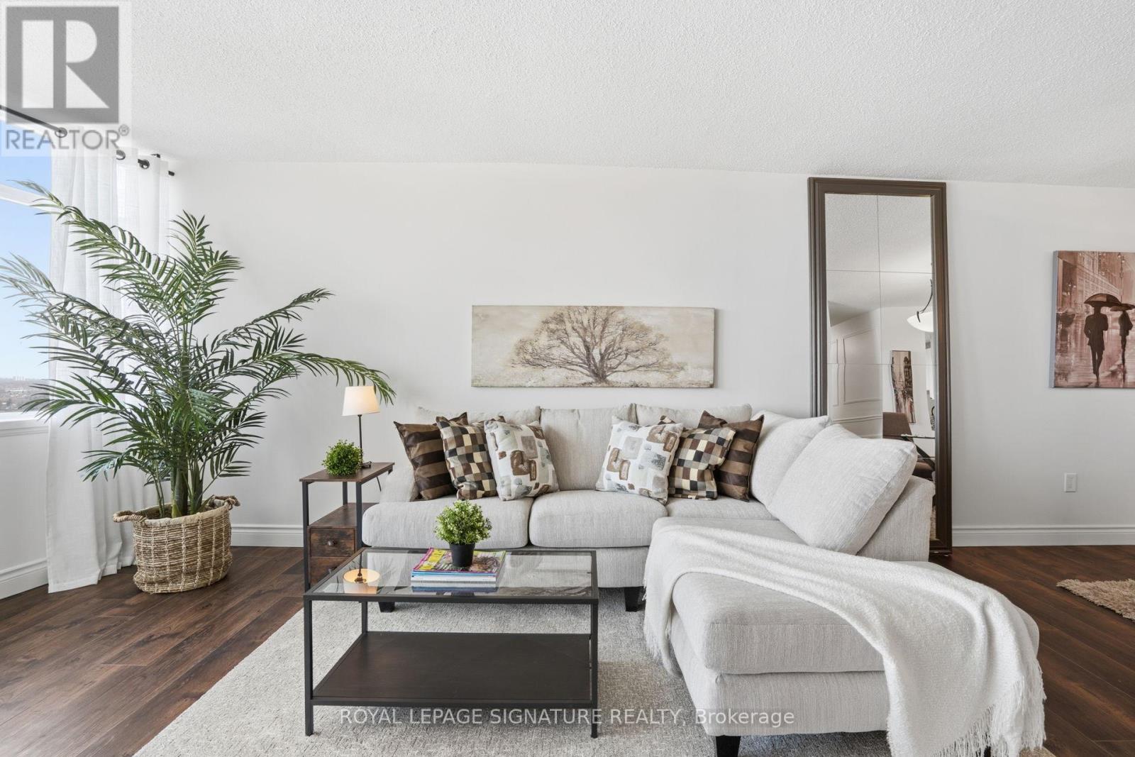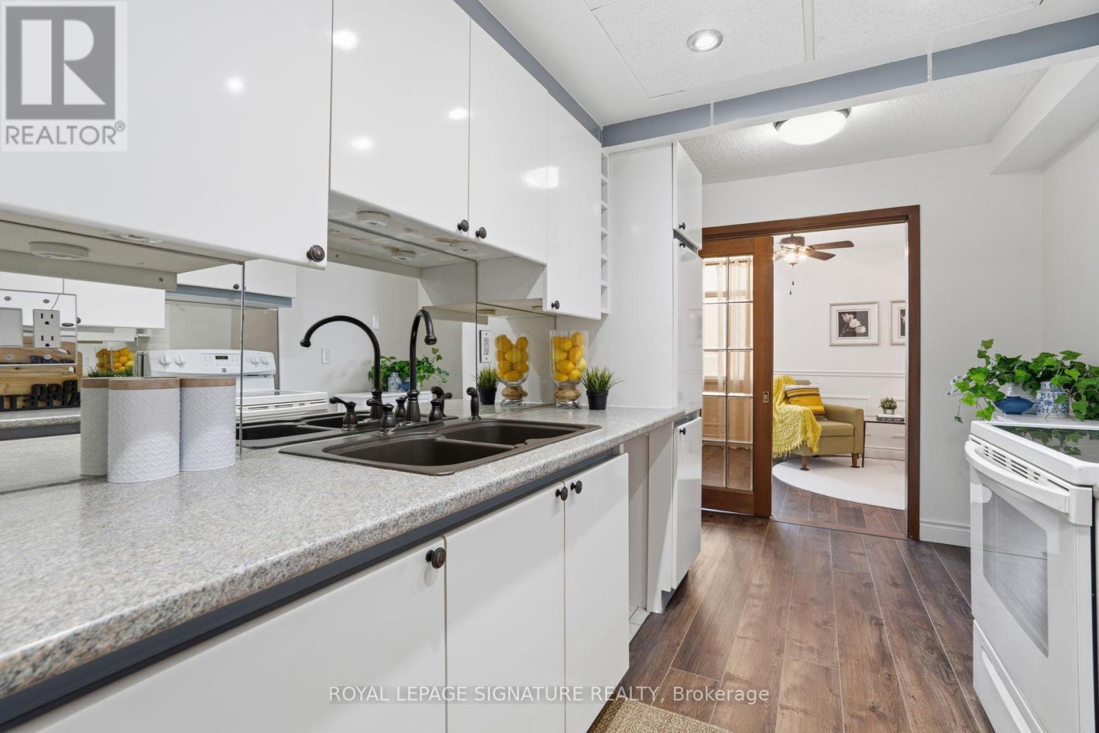 Find everything at your fingertips here! Charming and tastefully updated condo nestled on 4 acres of beautiful park-like grounds in the heart of Mississauga. This bright, beautifully renovated corner suite offers a spacious, well-designed layout filled with natural light.Elegant wainscoting, smooth ceilings, and new flooring throughout create a stylish yet comfortable living space. Enjoy walk-outs to a private balcony accessible from both the living room and primary bedroom. The spacious bedroom also features a 3-pc ensuite and a walk-in closet. The versatile den easily functions as a home office or additional guest room. Ample storage throughout, including a convenient in-unit locker. Maintenance fees are all-inclusive,covering utilities, TV, and internet, and the suite comes with two exclusive parking space.Located in a very well-managed, pet-free building with recently updated windows and balcony doors. Residents enjoy fantastic amenities including an outdoor saltwater pool and tennis court. Unbeatable location just minutes to Square One Shopping Centre, restaurants, the library, and everyday conveniences, walking distance to the GO Train, and major highways including the 403, 401, and QEW. (id:4555)