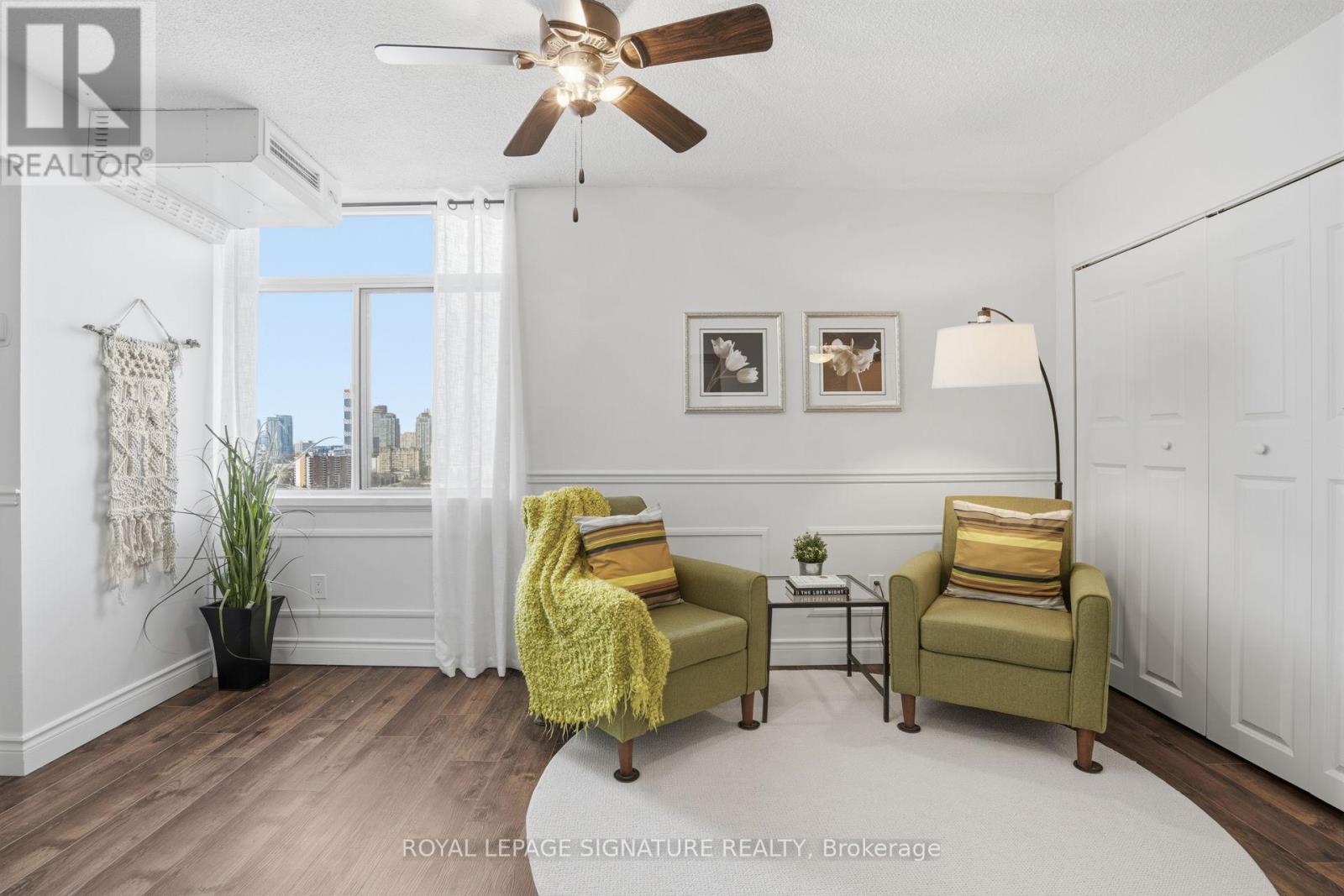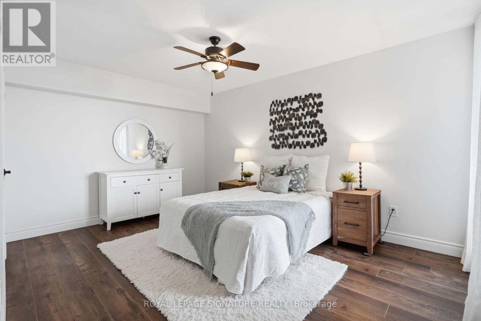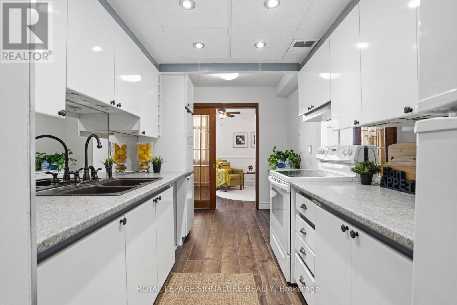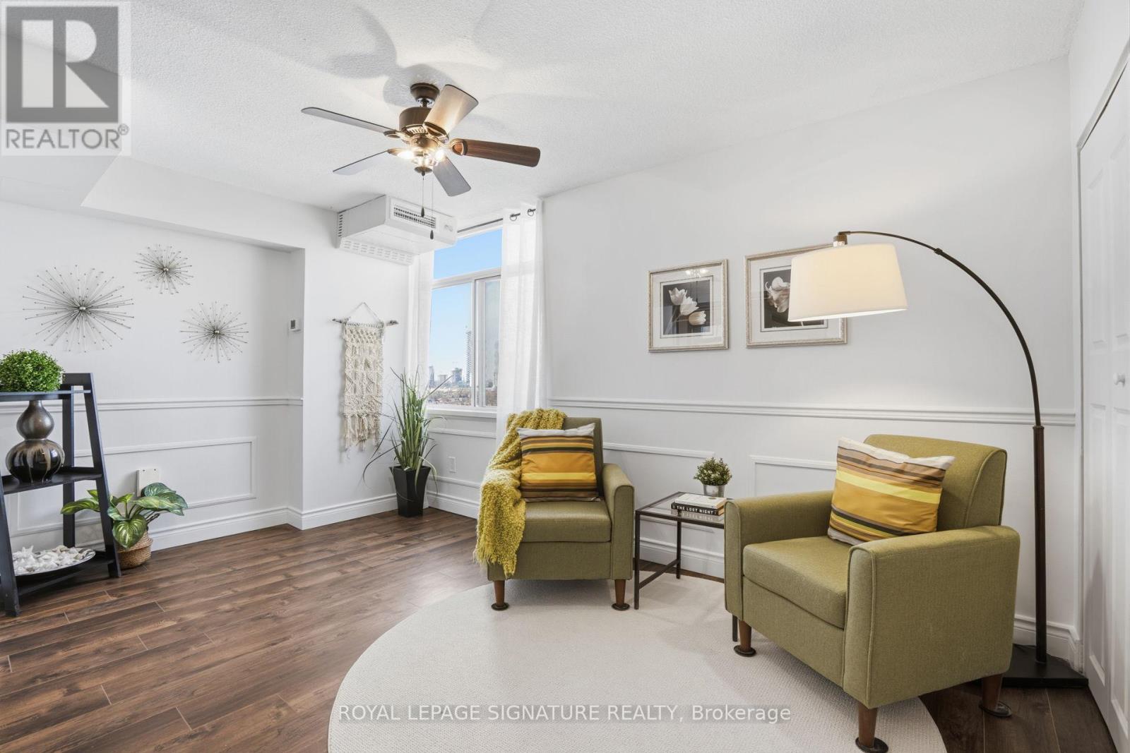 Find everything at your fingertips here! Charming and tastefully updated condo nestled on 4 acres of beautiful park-like grounds in the heart of Mississauga. This bright, beautifully renovated corner suite offers a spacious, well-designed layout filled with natural light.Elegant wainscoting, smooth ceilings, and new flooring throughout create a stylish yet comfortable living space. Enjoy walk-outs to a private balcony accessible from both the living room and primary bedroom. The spacious bedroom also features a 3-pc ensuite and a walk-in closet. The versatile den easily functions as a home office or additional guest room. Ample storage throughout, including a convenient in-unit locker. Maintenance fees are all-inclusive,covering utilities, TV, and internet, and the suite comes with two exclusive parking space.Located in a very well-managed, pet-free building with recently updated windows and balcony doors. Residents enjoy fantastic amenities including an outdoor saltwater pool and tennis court. Unbeatable location just minutes to Square One Shopping Centre, restaurants, the library, and everyday conveniences, walking distance to the GO Train, and major highways including the 403, 401, and QEW. (id:4555)