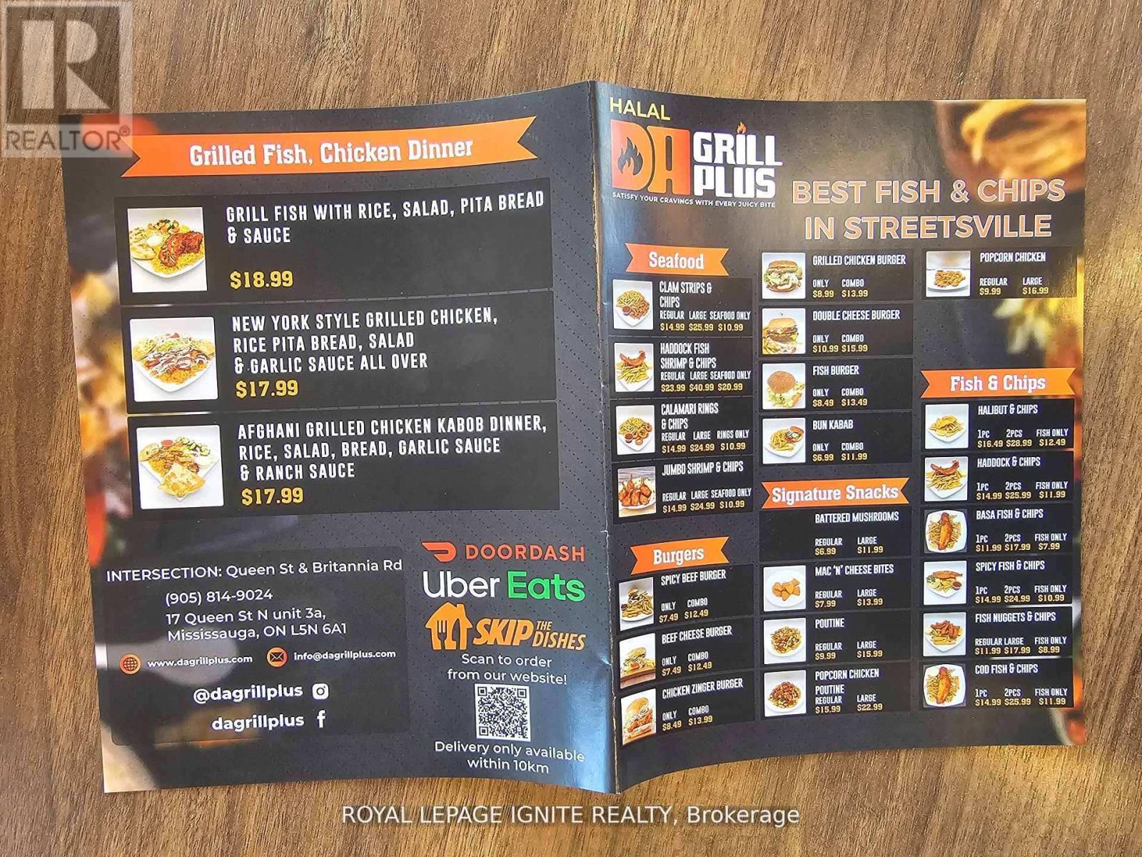 Priced to sell!- Highly rated turnkey Fish & Chips restaurant at the busiest intersection in Streetsville- Britannia & Queen! This turnkey business has everything you need to run a successful food or restaurant business including highly sought-after location in Streetsville right at Britannia & Queen Street. Corner unit with a ton of visibility- The foot traffic never stops! Featuring 622 sq ft unit that seats 20 people in a busy plaza, 8' hood vent, LOW monthly rent of just $2,300 INCLUDING TMI, HST & water. 2+ years remaining on the lease + 5yrrenewal option. Established neighbourhood contains professional offices, schools, prayer centres and residences and gets additional traffic from the highways that's just two minutes away. One of the most popular fish & chips restaurant in the neighbourhood with amazing menu, service and location. Takeout, eat-in, Uber Eats, Skip The Dishes- you have a ton of options! Best of all- No franchise fees or restrictions- this is *your* brand. Feeling more adventurous? Then start something of your own! Zoning allows for other types of businesses too. Cuisine Restrictions: No South Asian or Chinese or Japanese cuisines due to existing restaurants in the plaza. (id:4555)