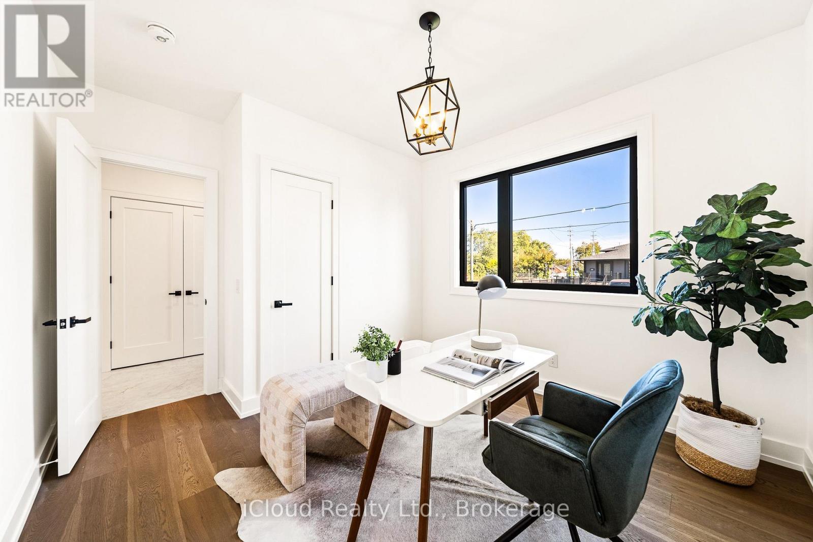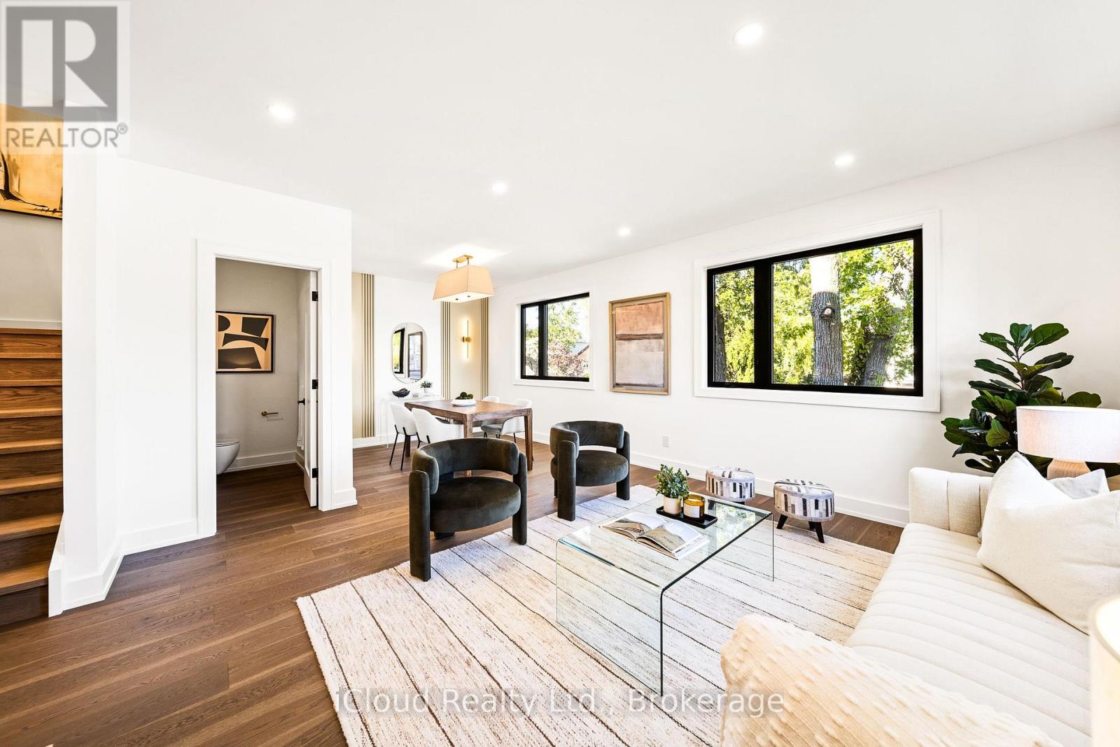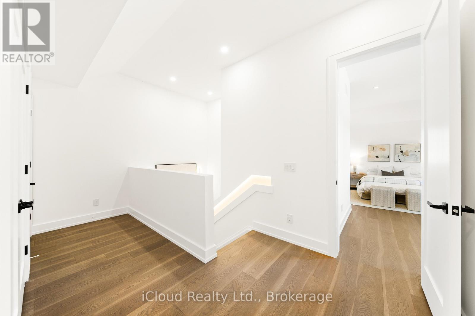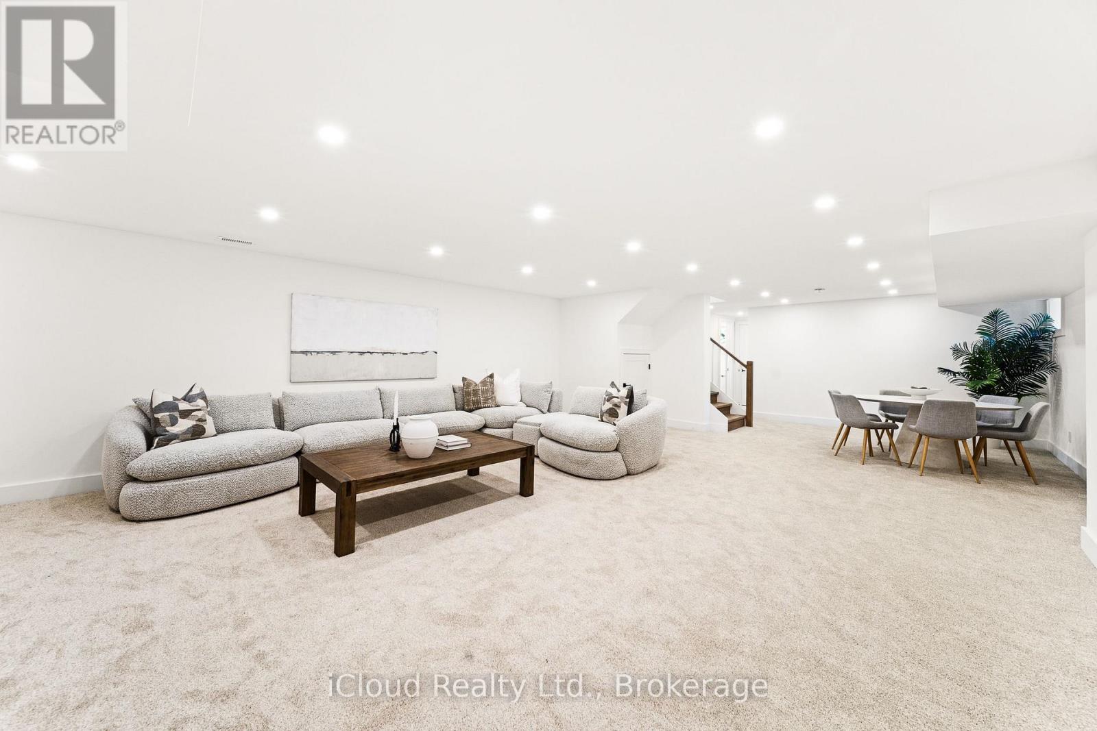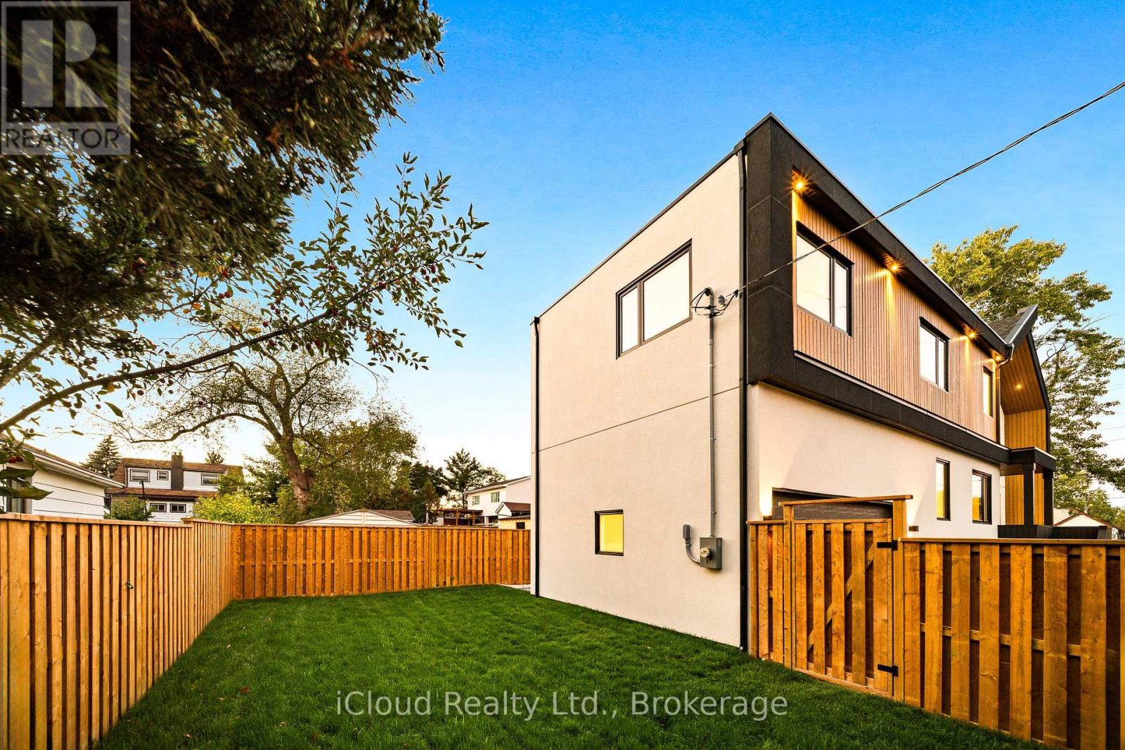 Stunning newly built custom home offering 4+1 bedrooms and 5 bathrooms with nearly 3,800 sq.ft. of luxury living in Mississauga's desirable Lakeview community.Situated on a wide 44x110 corner lot with striking curb appeal,this residence showcases a modern exterior with natural wood siding accents, exterior pot lighting,a full irrigation system with rain sensors, smart perimeter security cameras, and WiFi digital locks.A built-in two-car garage with high-lift doors, mezzanine storage loft, universal EV charger, and a private drive for two more vehicles offer parking for four.Inside, elegant finishes include white oak flooring, designer large-format tiles, pot lights with dimmers, and motion sensor closet lighting throughout.The main floor features an open living and dining area with custom accent wall and sconces, a private office, and a designer powder room with custom mirrors,integrated strip lighting, and wall-hung toilet.The chefs kitchen is a true centerpiece with a quartz waterfall island, full quartz backsplash,WiFi-enabled smart appliances, induction cooktop, wall oven, automatic heat-sensor hoodvent, pot filler, oversized sink with built-in racks, walk-in pantry with custom storage, and a coffee/bar station.A side mudroom with garage access completes the level.Upstairs, the primary retreat boasts two walk-in closets with integrated lighting and a spa-inspired ensuite with radiant heated floors, freestanding tub, wet-room shower, private water closet, wall-mounted faucets, and backlit mirrors.Three additional bedrooms include one with ensuite and walk-in closet, plus a shared bath.The finished lower level offers a large rec room, a bedroom and bathroom, plush carpet, generous storage, and an open-concept layout ideal for a recreation area or future secondary suite. Located minutes from Lake Ontario,Lakefront Promenade Park, Port Credit GO, the QEW, and the exciting Lakeview Village redevelopment, this home blends modern luxury, lifestyle, and long-term value. (id:4555)