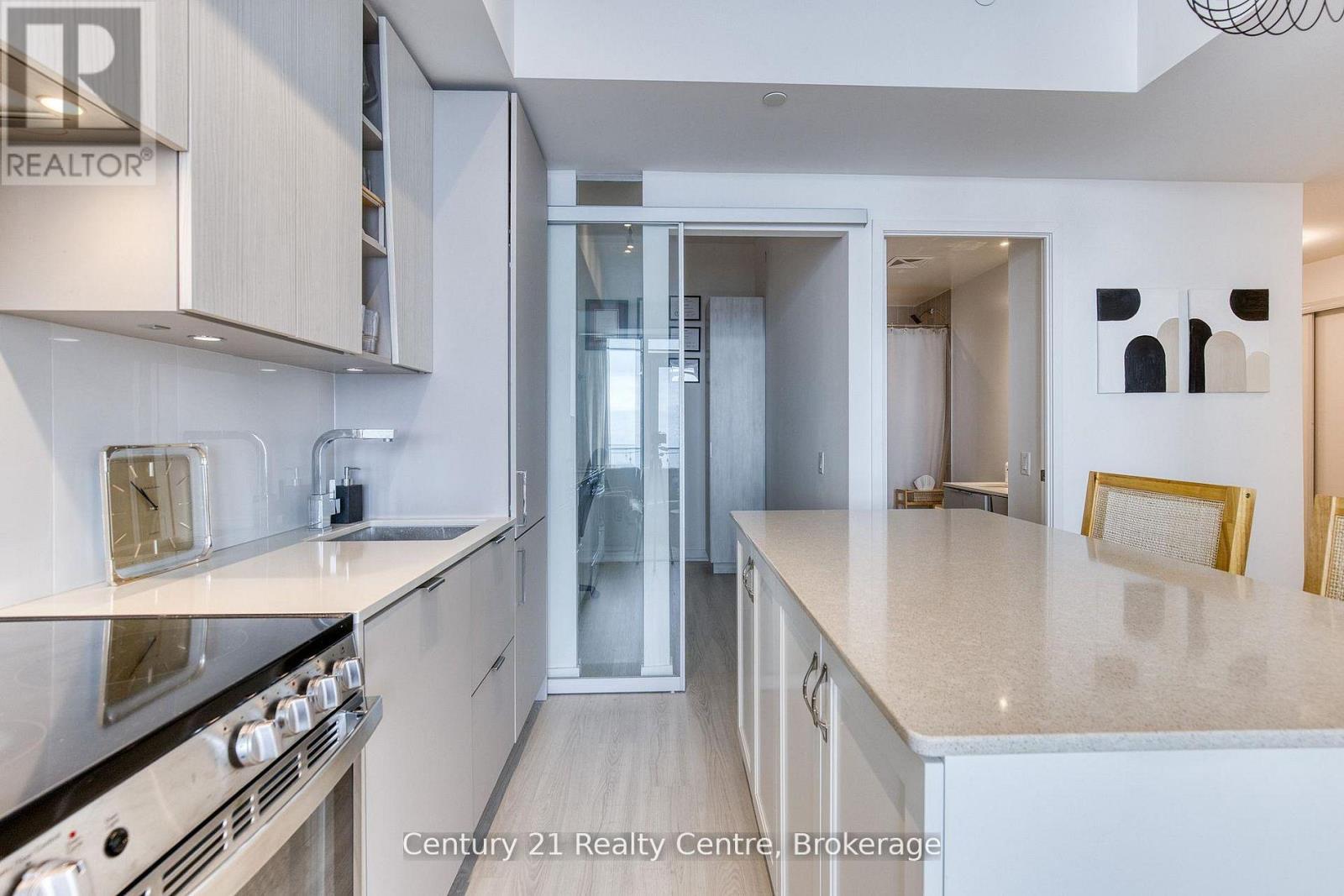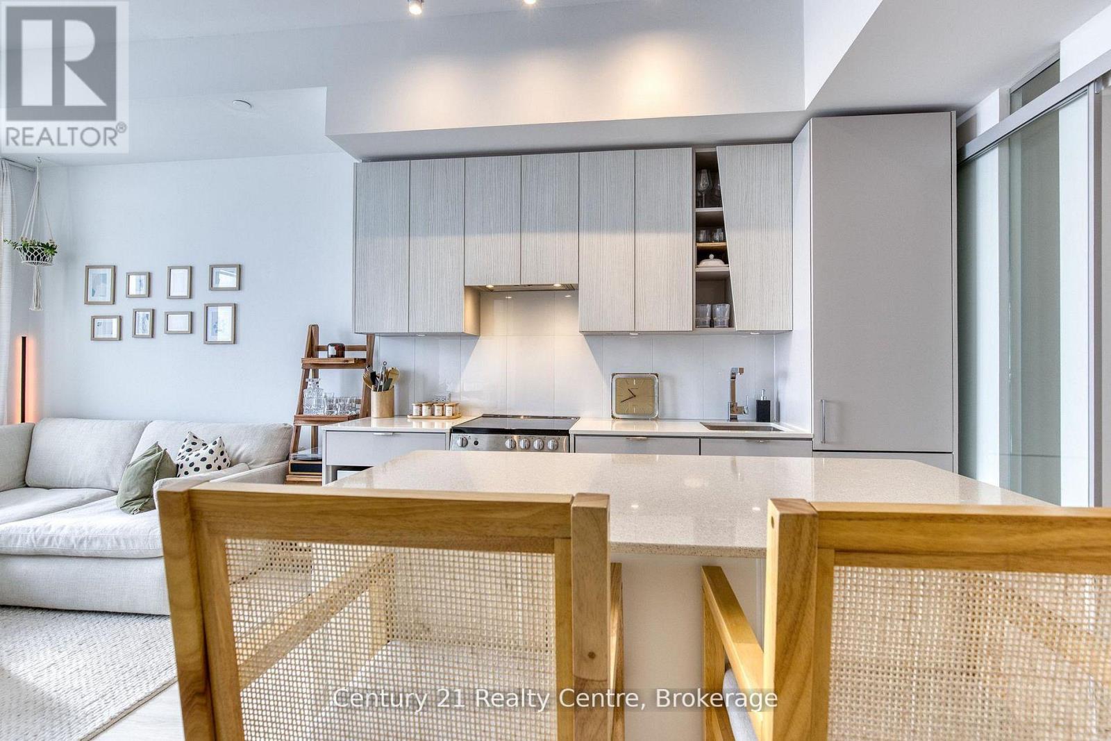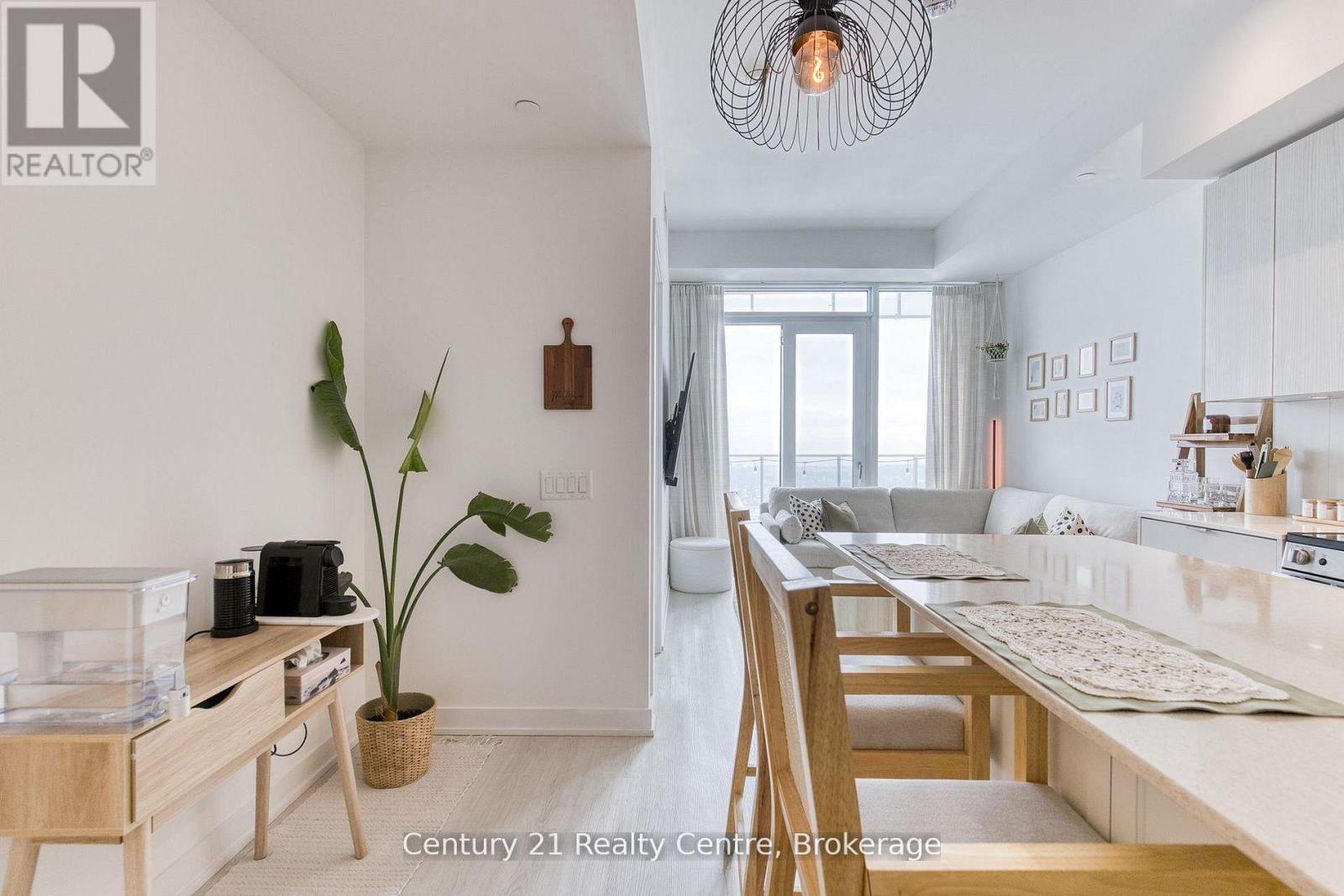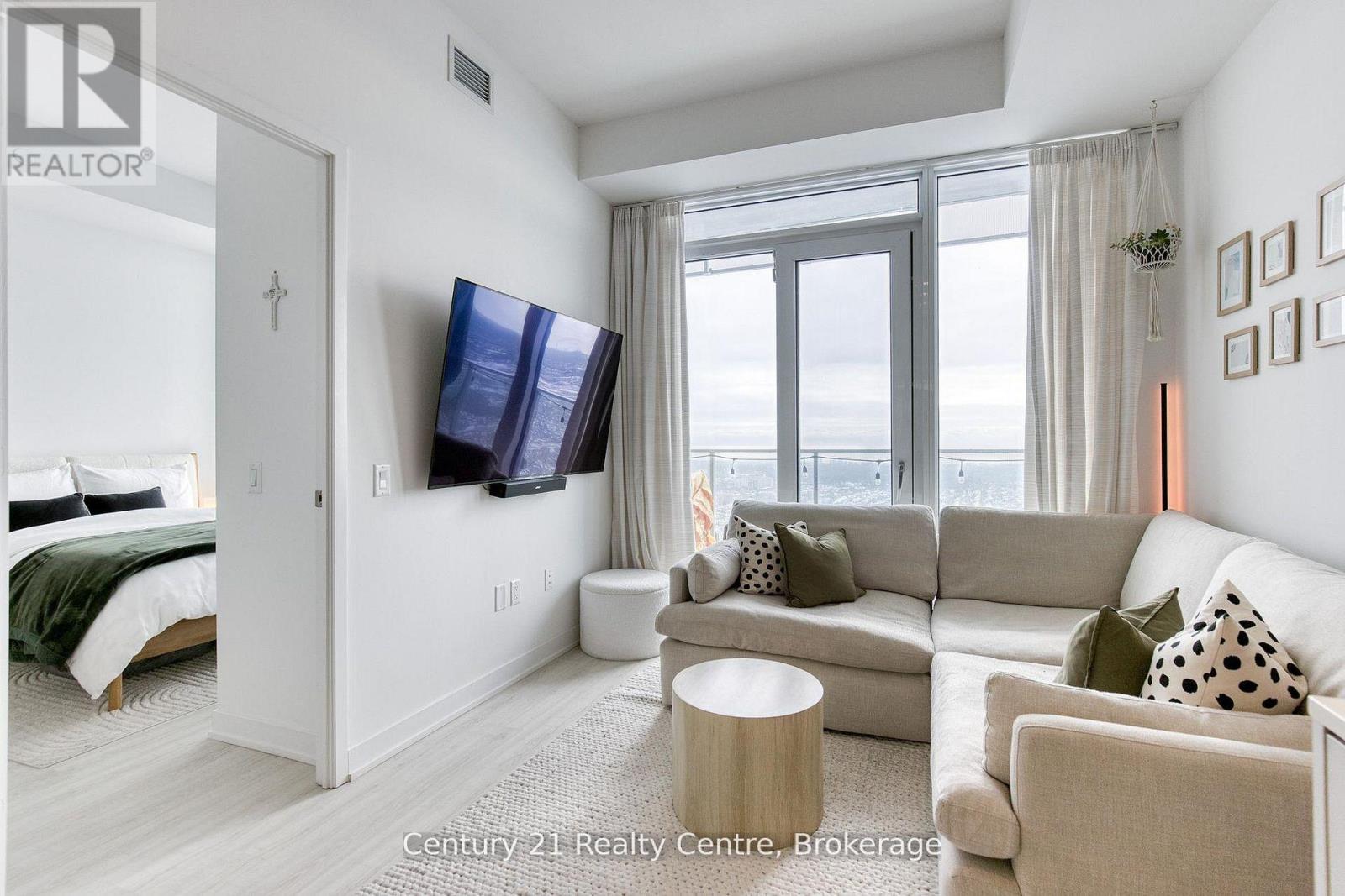 Perched high above the city on the 55th floor of the iconic M City M2, this sophisticated 2-bedroom plus media residence offers refined urban living with sweeping south-facing views. Thoughtfully designed with 9-foot ceilings and an elegant open layout, the suite spans 811 sq. ft. of total space, seamlessly blending 698 sq. ft. of interior living with an expansive 113 sq. ft. private balcony-perfect for enjoying sun-filled days and dramatic cityscapes. The designer kitchen showcases sleek stainless steel appliances, quartz surfaces, and contemporary cabinetry, striking a perfect balance between form and function while comfortably accommodating a dedicated dining area. The living space is framed by floor-to-ceiling windows, creating a bright, elevated atmosphere ideal for both everyday living and entertaining. The primary retreat features panoramic glazing, direct balcony access, and a spa-inspired 3-piece ensuite. A generously proportioned second bedroom is complemented by a stylish 4-piece bath. A separate media area adds flexibility, ideal for a private home office or curated work-from-home space. Residents of M City M2 enjoy an exceptional lifestyle with world-class amenities, including an outdoor saltwater pool, yoga and fitness studios, steam room, resident lounges, skating rink, splash pad, and thoughtfully designed family spaces. Situated in the heart of Mississauga's vibrant downtown core, just steps to Square One, GO Transit, Celebration Square, premier dining, cultural venues, parks, post-secondary institutions, and the upcoming LRT. Includes one parking space, one locker, high-speed internet, and a smart home monitoring system. (id:4555)