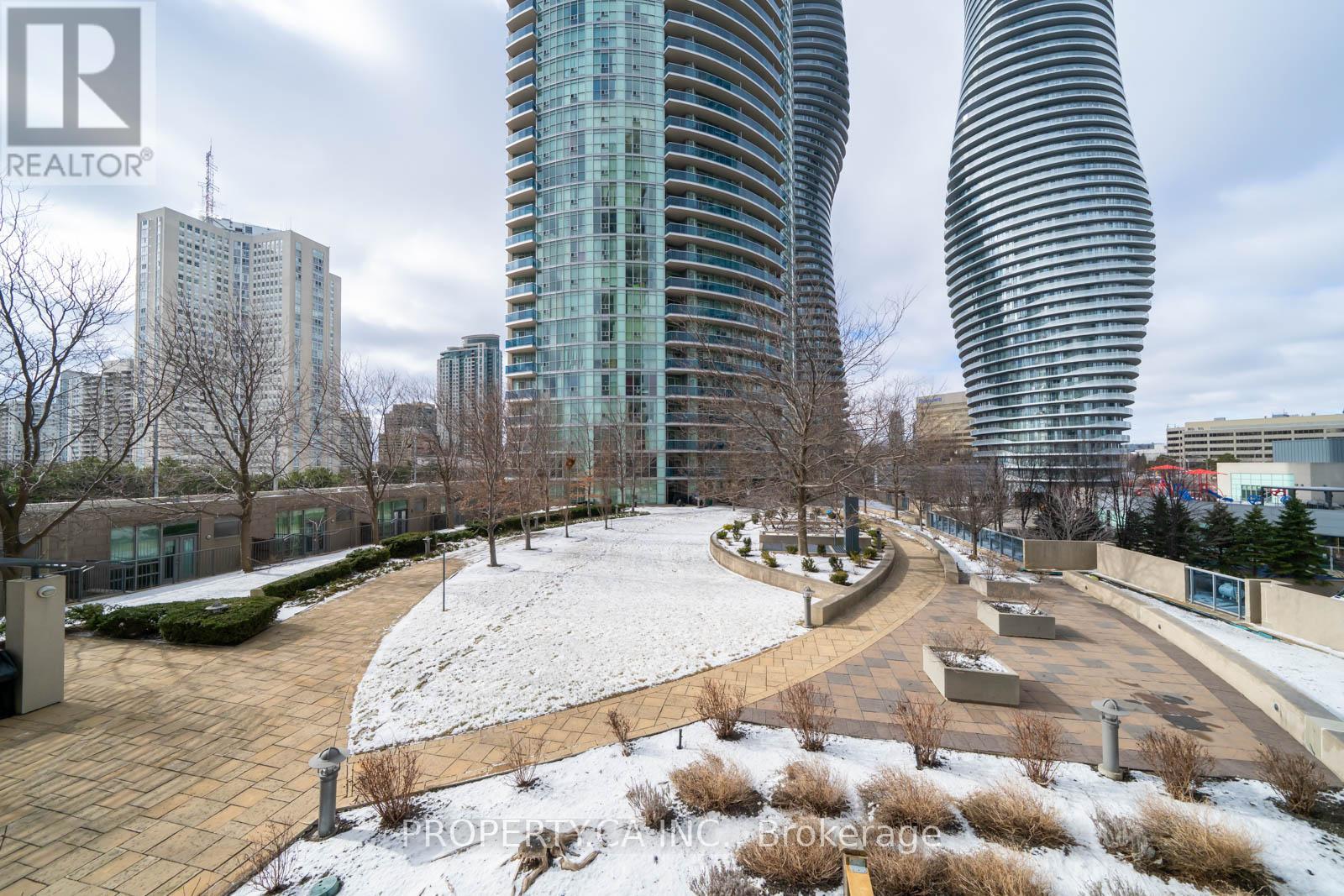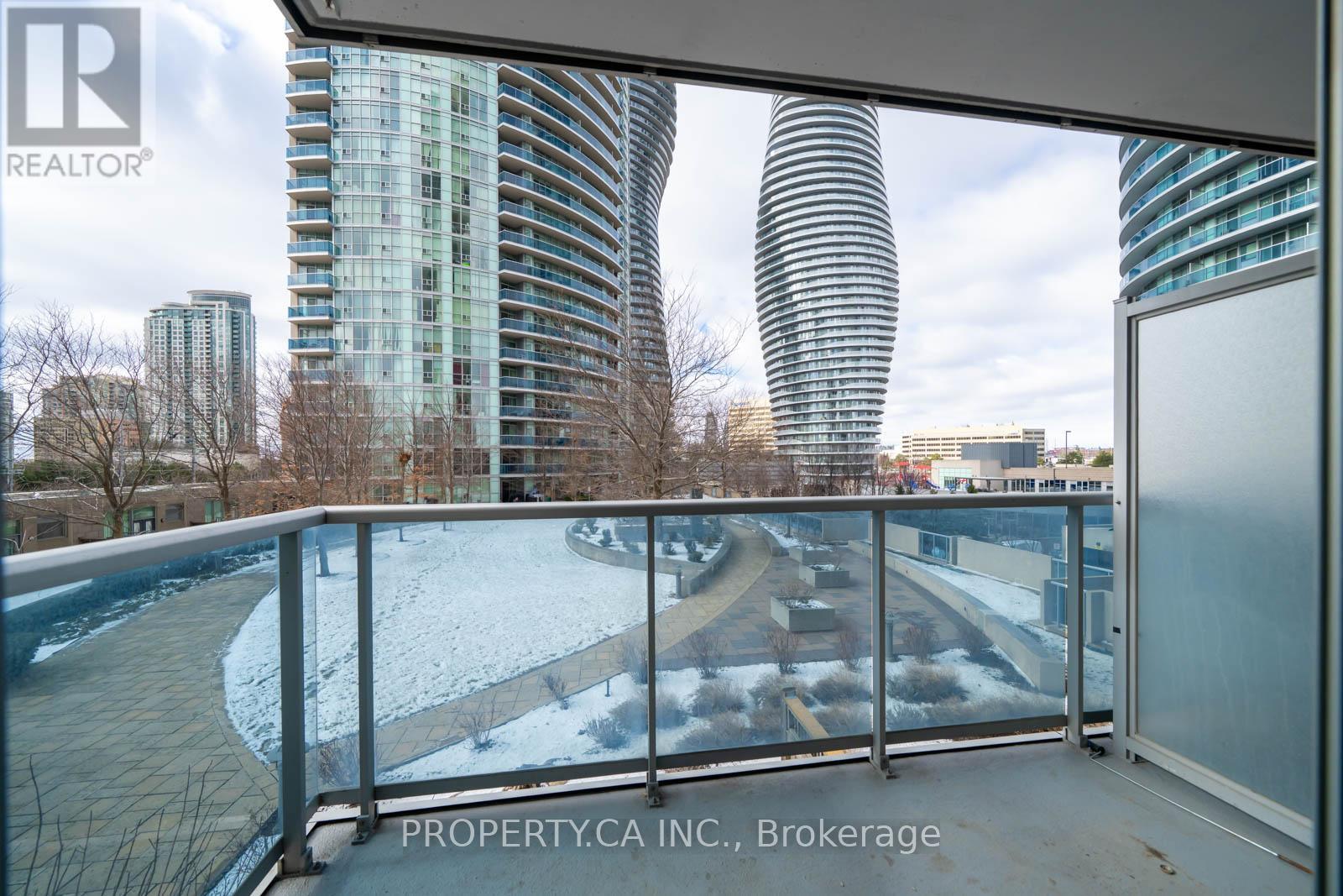 Mississauga Living At Its Best At The Absolute! Bright and Spacious Immaculate 1 Bed Plus Den With Parking! The Large Sized Den with French Doors Makes a Great Second Bedroom or Home Office. Laminate Hardwood Floors In Both Main Living Space And Bedroom. Walk Out From Living Room To Large Balcony With Bright South West Views of Garden Courtyard. Kitchen Features Stainless Steel Appliances, An Abundance of Counter Space and Breakfast Bar/Island. Bedroom Boasts A Large Closet and Large Window! Perfect Home For Busy Professionals! Premium Building Amenities Include Indoor and Outdoor Pool, Sauna, Gym, Basketball Court Area, Guest Suites, Visitor Parking, Concierge, Party and Party/Media Rooms. Steps to Shops and Restaurants of Square One and Easy Access to 401, 403 and QEW Highways (id:4555)