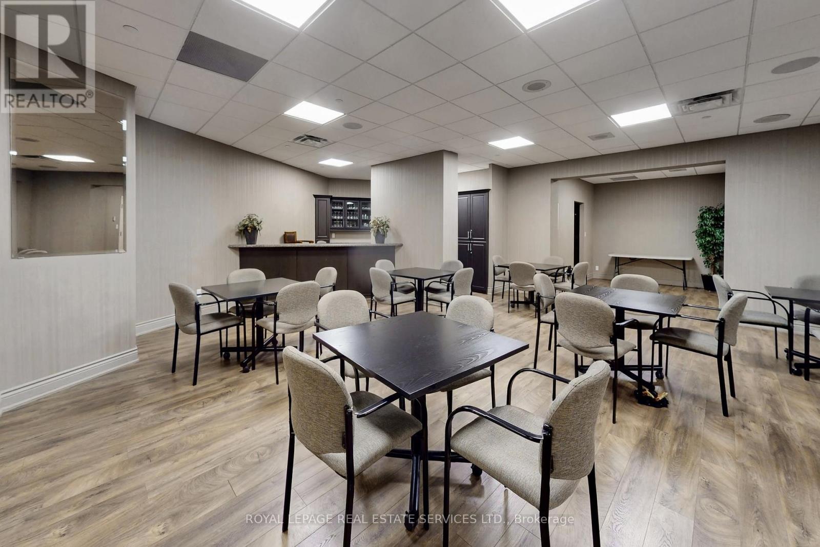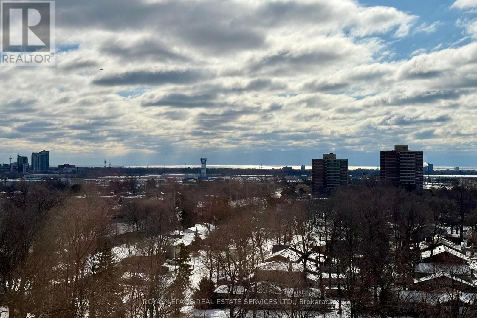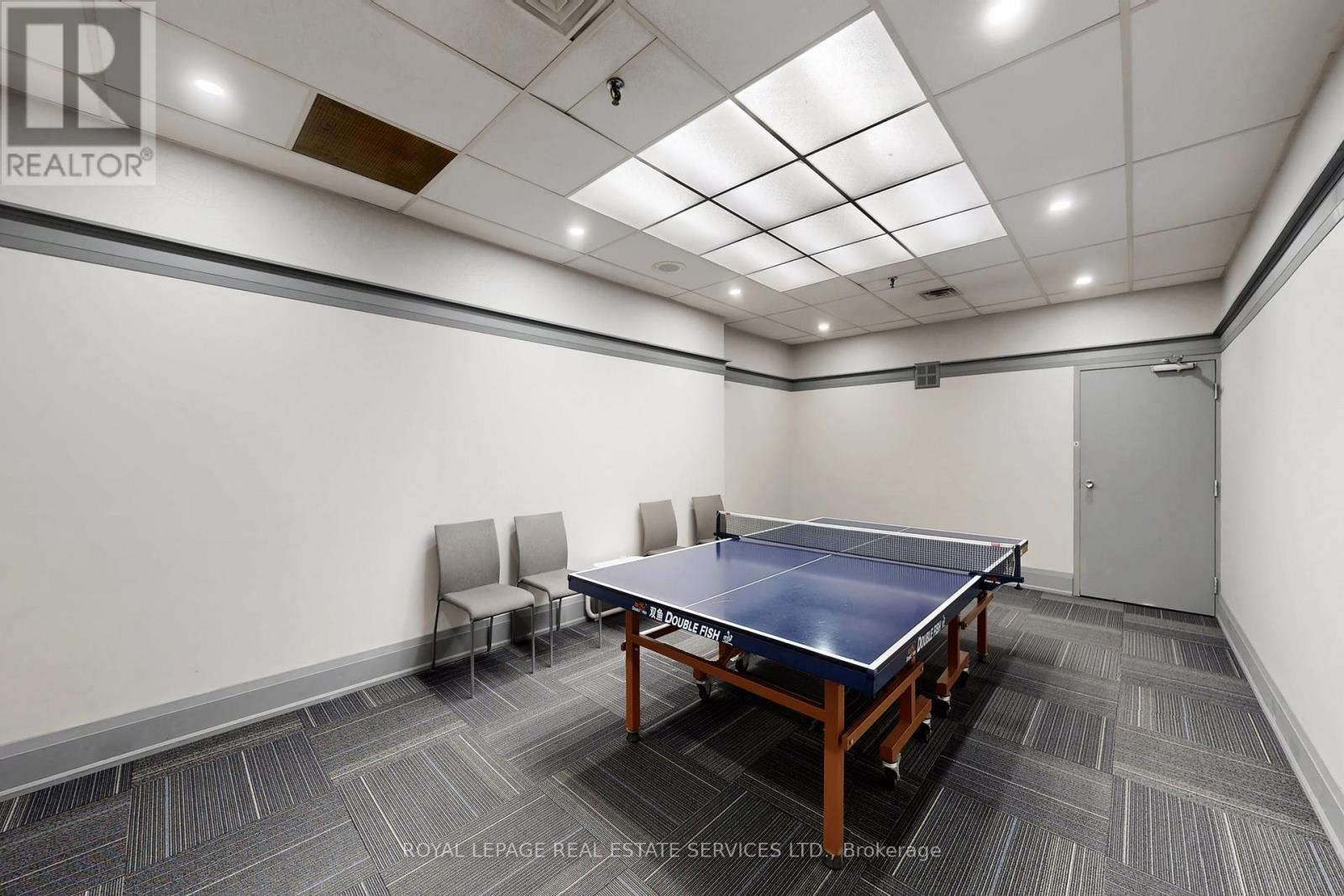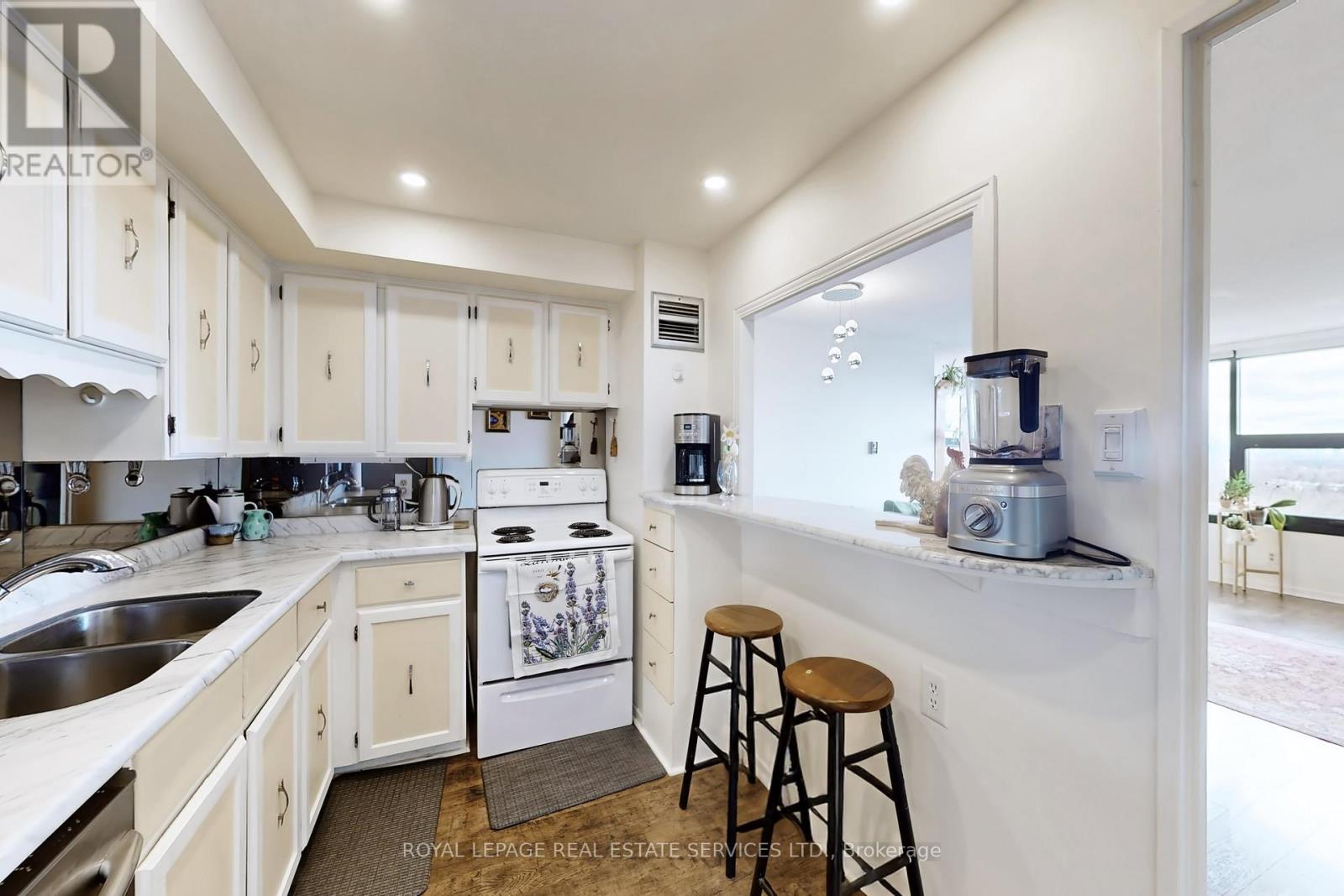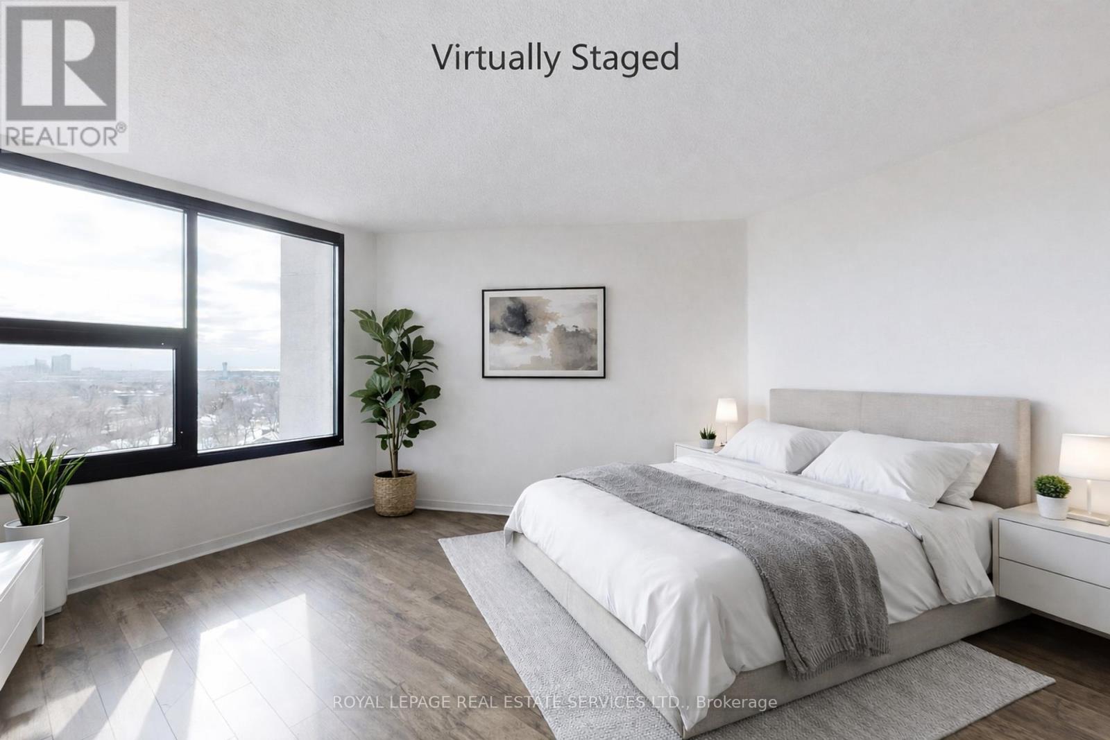 Welcome to your move-in ready, sun-drenched urban sanctuary featuring breathtaking panoramic views of the Toronto skyline. This turnkey, carpet-free home boasts premium laminate flooring throughout, providing a sleek and modern aesthetic that is as durable as it is stylish. The open-concept living area is designed for seamless entertaining and flows beautifully into the kitchen, which features a convenient breakfast bar for casual dining. While the updated washroom offers contemporary finishes, large windows in every other room flood the living spaces with natural light. Adding to the property's incredible value, this unit comes complete with one dedicated parking space and a storage locker. Experience ultimate peace of mind with an all-inclusive lifestyle, as the maintenance fees cover your heat, hydro, and water, along with unlimited Bell Fibe internet. Residents also enjoy an incredible suite of amenities including a 24-hour concierge, a rooftop deck, an indoor car wash with a car vacuum and tire inflator, a general convenience store, a pickleball court, shuffleboard, a billiard room, and even a woodworking shop. Whether you are watching the city lights at night or enjoying the airy flow of the interior during the day, this unit offers the perfect blend of sophisticated design and effortless convenience in the heart of the city. (id:4555)