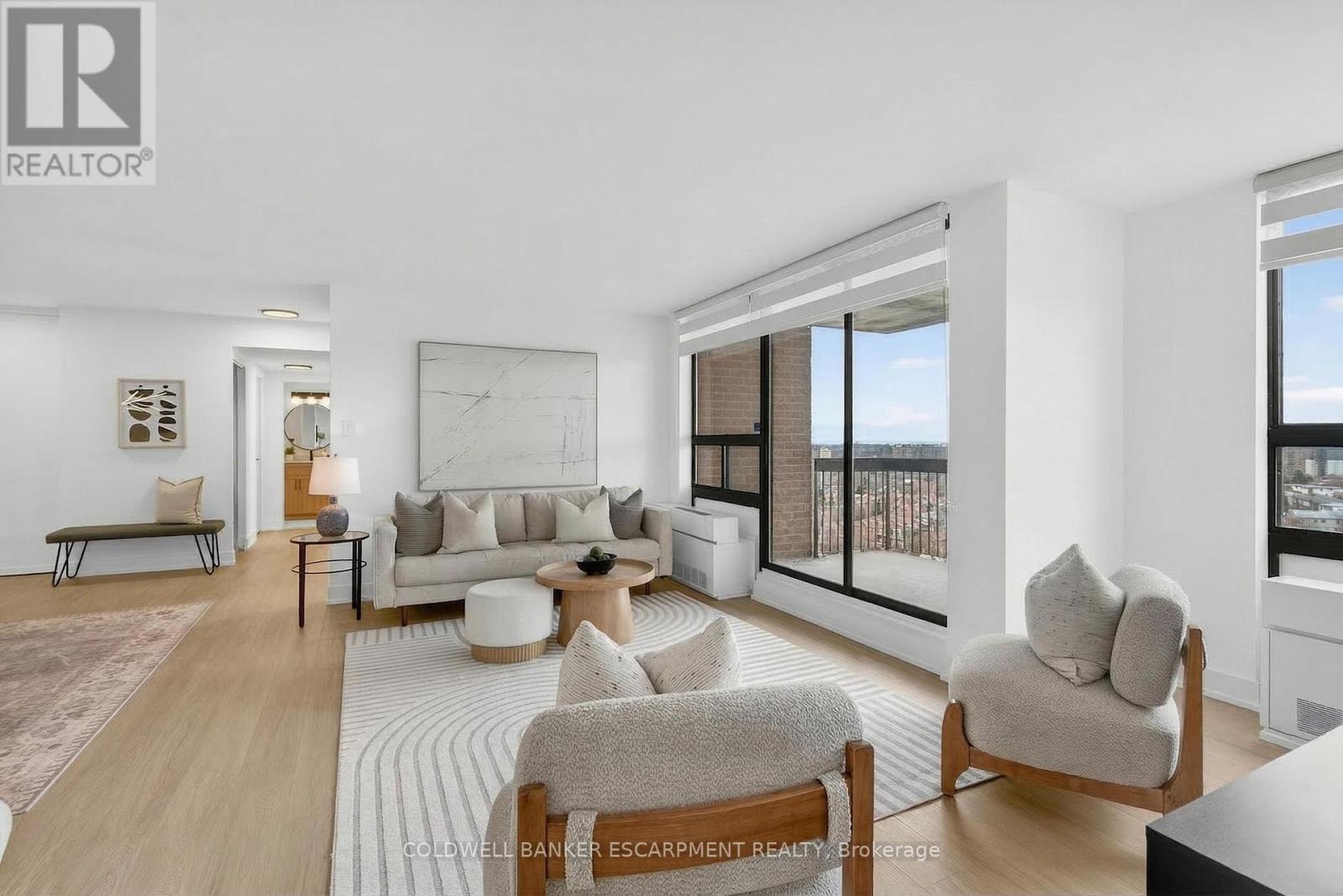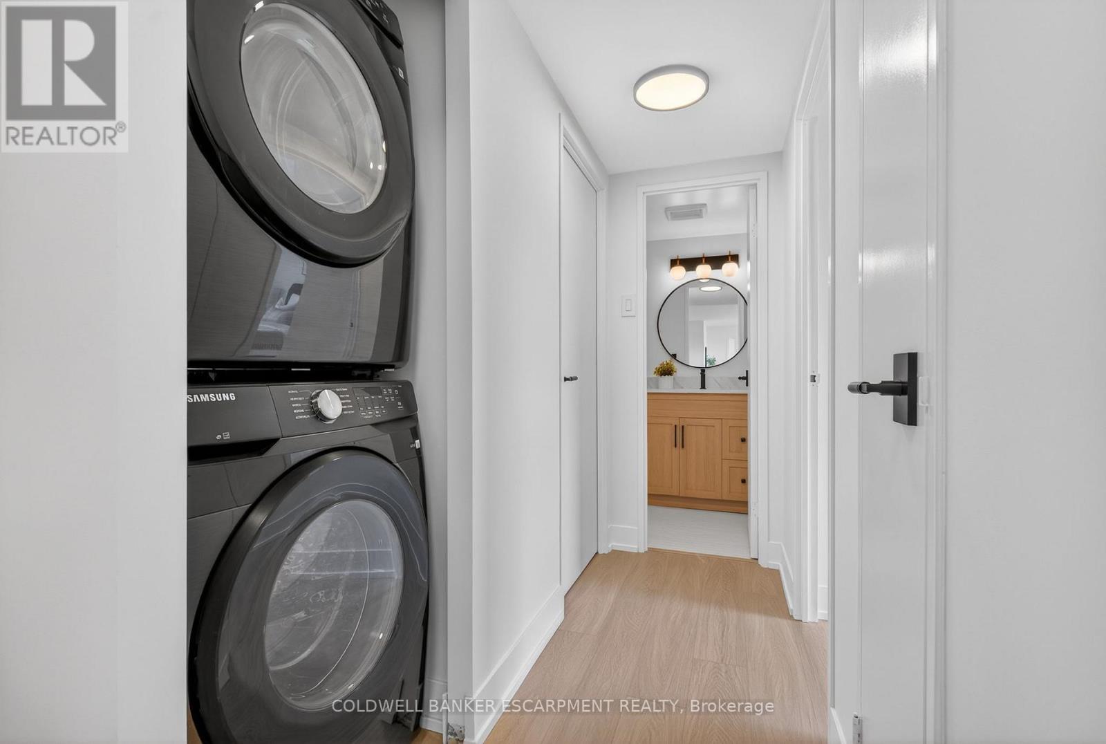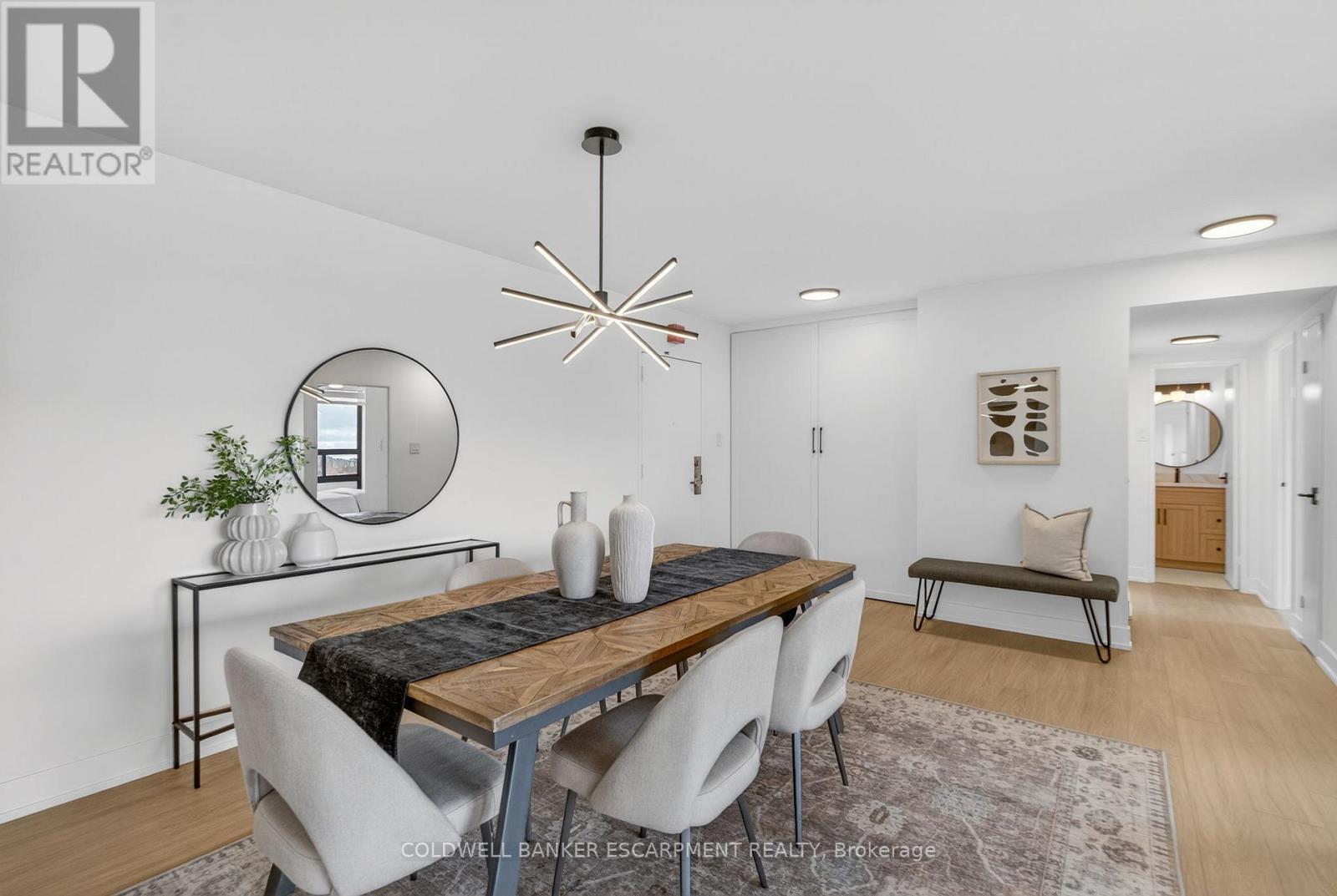 Unobstructed South Facing views all the way to Lake Ontario! Lowest condo fees around for a unit this size! Completely transformed, 3 bedrooms plus a large storage room and two full washrooms. The old foyer was opened up to create a massive open concept living and dining space. Luxury Vinyl plank flooring throughout. Incredible kitchen with brand new high end stainless steel appliances (there is a dishwasher, it's hidden by a cabinet door!), including above the range slim microwave. French door fridge with hidden ice and water. A few of the large cabinet drawers have hidden slim drawers for your kitchen utensils. Undercabinet dimmable lighting, undermount sink with accessories (cutting board, foldable drying rack, strainer) and quartz countertops. Custom closet doors throughout. Large Master Bedroom is conveniently laid out on the other side of the unit from the other bedrooms, with two closets and 4 piece ensuite. Both washrooms have stone countertops, Rain shower heads with handheld sprayer and shower pot lights. Huge in-unit storage/locker room with added cabinetry. Brand new stacked washer and dryer. 5 mins to Square One. There is a plaza across the street anchored by Metro and only a short walk up to Hurontario for the new (hopefully) soon to be completed LRT. City Centre Transit Terminal is only 12 minutes by bus, where you can connect to MiWay and Zum Buses. Cooksville GO is a 4 minute drive away! Easy Highway access to 401 via the 403 which is very close by. Short drive south and you can hop onto the QEW. Condo amenities include indoor pool, well equipped gym, 2 pool tables, ping pong table, Party Room and Social Rooms available to rent. Pay only hydro on top of the low Condo fee. (id:4555)