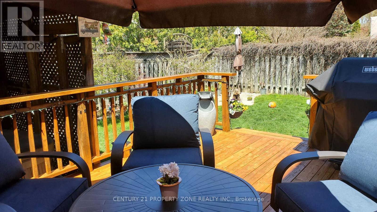 Welcome to this beautifully maintained detached home's upper level offering comfort, style, and privacy in a peaceful court setting. It features three spacious bedrooms and 2.5 bathrooms. Enjoy hardwood floors throughout, creating a warm and modern ambiance. Complemented by a bright living room , providing ample space for relaxation and entertaining. The eat-in kitchen is thoughtfully designed with a large centre island, providing ample prep space and a perfect gathering spot for family meals and entertaining. The primary bedroom retreat includes a private ensuite bathroom and closet, while the two additional bedrooms are generously sized, each complete with their own closets for convenient storage. Step outside to a truly inviting outdoor setting - featuring a large entertainment deck and permanent gazebo, all overlooking a spectacular landscaped garden oasis. This serene backyard space is perfect for relaxing evenings or hosting guests. Additional highlights include a double car garage, quiet family-friendly location, and excellent overall layout suited for comfortable everyday living. (id:4555)