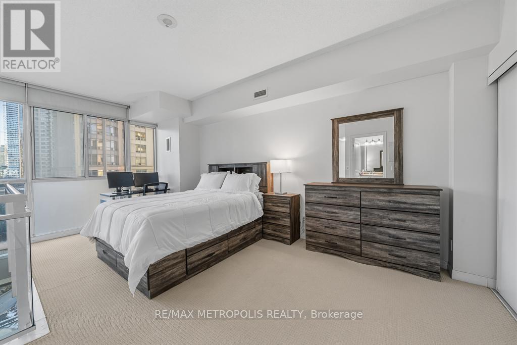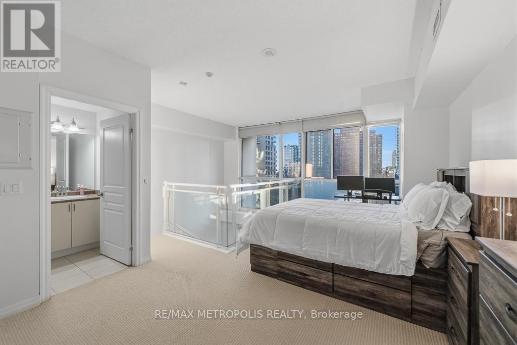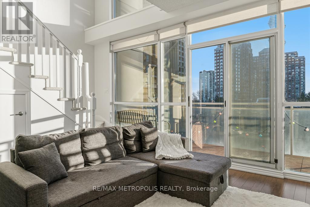 This executive two-storey condo feels like a penthouse suite in the heart of Mississauga! Boasting over 750 square feet of loft-style living, the space is defined by soaring 18-foot ceilings and floor-to-ceiling windows that flood the interior with natural light. Designed for those who love to host, the main floor features an open-concept layout that transitions seamlessly from a generous living and dining area to a modern kitchen with ample cabinetry for the home chef. The inclusion of a main-floor guest washroom ensures that your upper-level living remains entirely private. Upstairs, the primary suite is a tranquil loft retreat, complete with a full four-piece ensuite and convenient laundry-all tucked away from the main living space. Enjoy clear views of Celebration Square from the large open balcony or take advantage of the building's premium amenities. The location is unbeatable for urban professionals, sitting just steps away from Square One Shopping Centre and major transit hubs like MiWay and the GO. With quick access to Highways 403, 401, and the QEW, this condo perfectly blends luxury with everyday convenience. (id:4555)