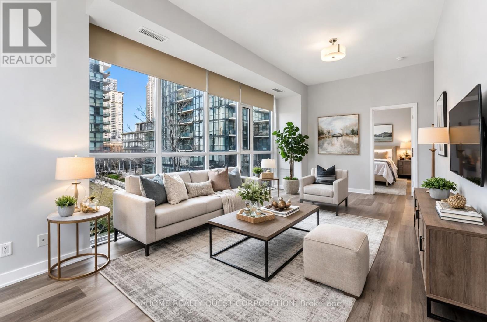 Stunning Corner Suite In The Heart Of Parkside Village! Spacious 2 Bedroom + Den, 2 Full Bath layout with bright open-concept living and beautiful courtyard views through floor-to-ceiling windows. Freshly painted with brand new vinyl flooring (March 2026) throughout. Generous primary bedroom features a walk-in closet and private ensuite. Modern eat-in kitchen with walk-out to a large private balcony-perfect for relaxing or entertaining. Comfortable second bedroom plus a versatile den ideal for a home office. Includes 1 underground parking space and 1 locker. Enjoy resort-style amenities including 24-hour concierge, indoor pool, fully equipped gym, party room, guest suites, and more. Unbeatable location just steps to Square One, YMCA, Library, Living Arts Centre, transit, top schools, and Civic Square. (id:4555)
