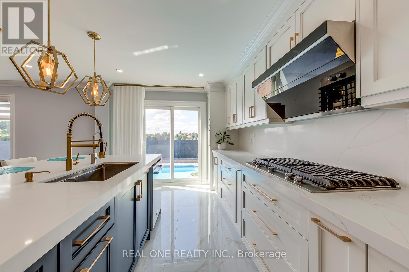 A rare find fully updated detached property in sought after East Credit. Extensively updated from top to bottom, inside and outside, front and back. Close to 2700 sqt above ground. Open concept. Bright and Spacious. On the ground level, inviting living area combined with dinning area, family room with electric fireplace, dream kitchen with huge island and Kitchenaid appliances, walking out to the back yard with a inground pool. The backyard is backing onto school green land. On the second level, spacious four bedrooms and 3washrooms. Basement apartment with two bedrooms, two washrooms, large living/entertaining area, kitchen, laundry and separate entrance. Extra wide driveway can park 3 cars. Prime Convenient Location. Minutes From Heartland Town Centre With Easy Access To Hwys. Walking Distance To Parks ,Golf Course, Schools & All Kind Of Shops In Heartland &Much More! (id:4555)