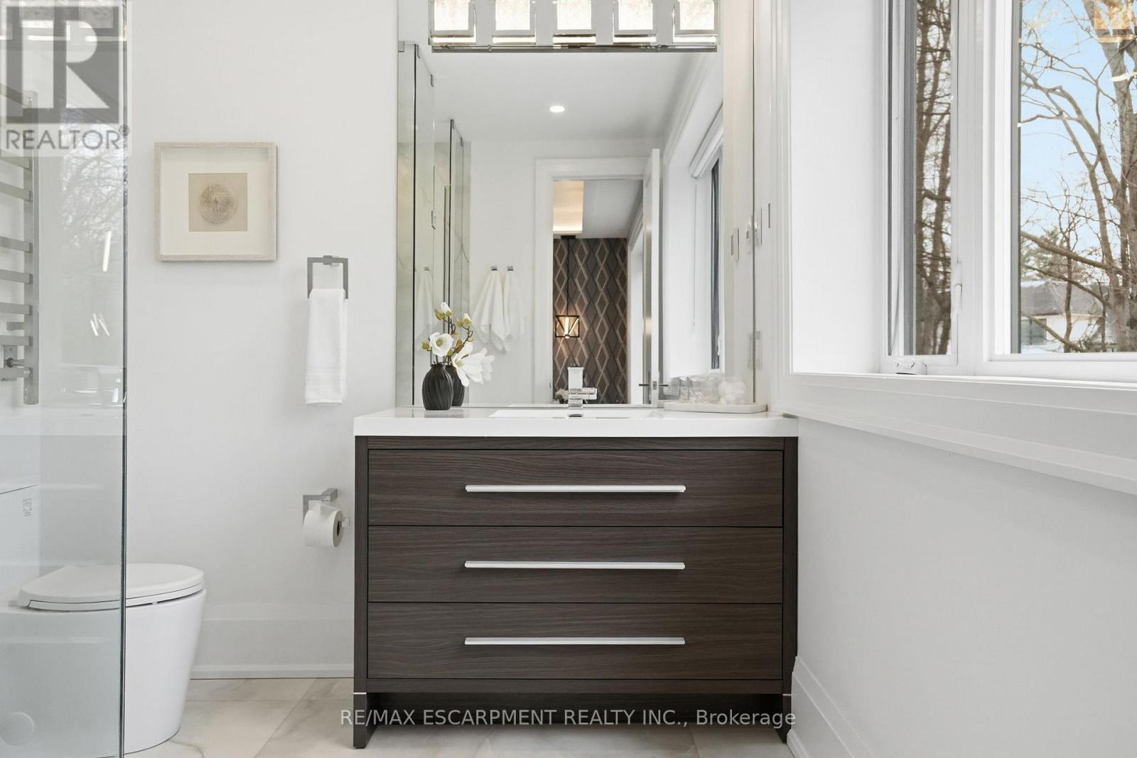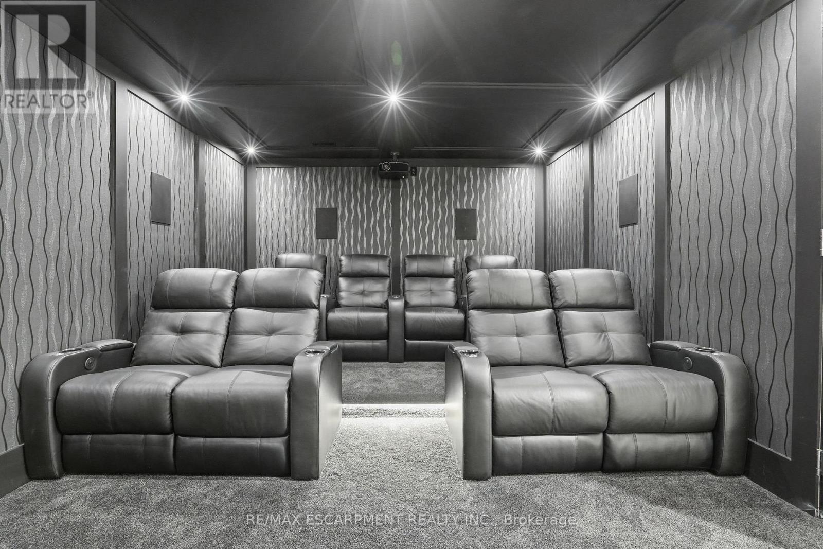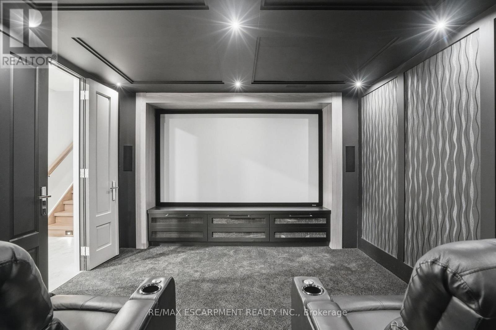A striking expression of modern design and refined living, this custom-built residence is ideally located in the prestigious Whiteoaks of Jalna enclave of Lorne Park. Showcasing exceptional craftsmanship and curated finishes throughout, the home blends bold architectural presence with thoughtfully designed, highly functional living spaces. A dramatic double-height foyer with approximately 20 ft ceilings creates a grand sense of arrival, leading into open-concept principal rooms defined by wide plank hardwood flooring, custom millwork, and a sleek linear fireplace. The chef-inspired kitchen serves as the heart of the home, featuring full slab porcelain surfaces, integrated Thermador appliances, a pot filler, and an oversized island designed for both everyday living and entertaining. The upper level offers spacious, well-appointed bedrooms, including a luxurious primary retreat with a custom walk-in closet and spa-inspired ensuite complete with a freestanding tub, rainfall shower with body jets, and a private steam sauna. The fully finished lower level is designed for elevated entertaining, featuring a custom wet bar, wine display, media lounge, and a private home theatre with tiered seating for eight. Outdoors, professionally landscaped grounds offer a private, tree-lined setting with a tiered deck, glass railings, hot tub area, and seamless indoor-outdoor flow, ideal for both relaxation and hosting. A rare opportunity to own a thoughtfully designed modern home in one of Mississauga's most sought-after neighbourhoods, just minutes to top schools, parks, and the lake. Luxury Certified. (id:4555)