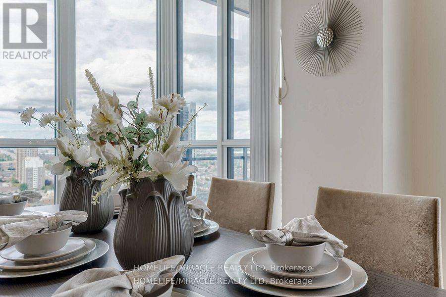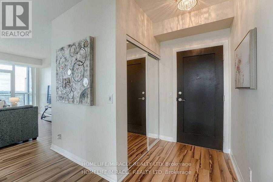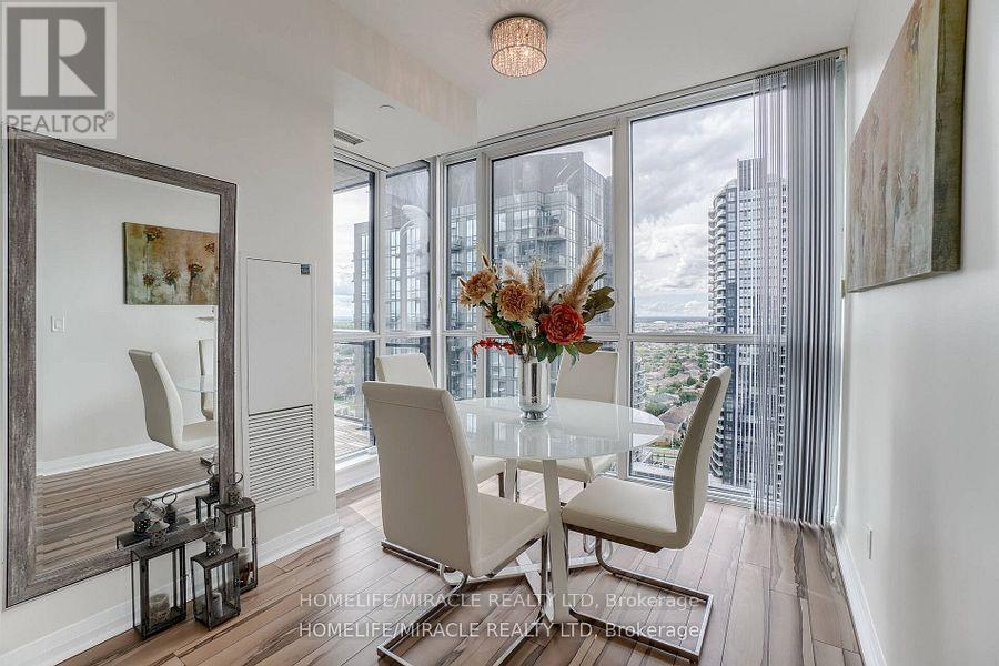 Welcome to this stunning 2,100 sq. ft. luxury corner penthouse, offering premium finishes and floor-to-ceiling windows that flood the space with natural light. With only four units on the floor, enjoy enhanced privacy and exclusivity. This spacious layout features 3 bedrooms plus a den and two full bathrooms. The open-concept living and dining area is surrounded by floor-to-ceiling windows, creating a bright and airy atmosphere. The generous primary bedroom includes a large walk-in closet, a 5-piece ensuite, and direct access to a private balcony. Enjoy top-tier building amenities including 24-hour security, a fully equipped gym, yoga studio, sauna, indoor swimming pool, and party room. Additional highlights include two large balconies, two parking spaces, and a spacious locker. Located in a prime area directly across from the new Hurontario LRT, this property offers excellent convenience and connectivity. The unit is currently leased for $5,000 per month, with a tenant willing to renew. (id:4555)